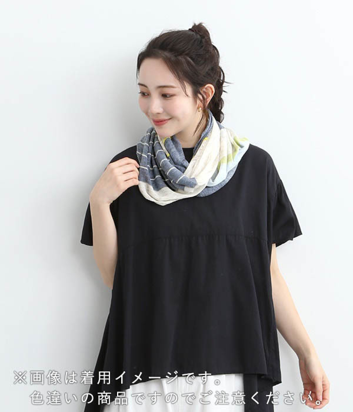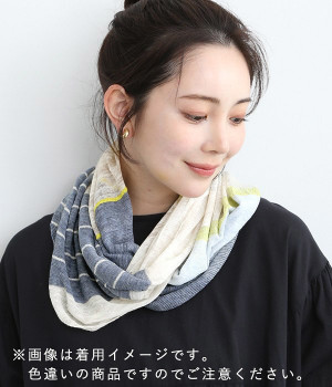 リネン混のさらりと涼しげな肌触りが、汗ばむ日の装いにぴったりなスヌードです。レーヨンの一種であるモダール生地は吸放湿性&保温性に優れ、特有の手ざわりと光沢はまるでシルクのよう。輪っか状で結ぶ手間がなく、アレンジが得意ではない方にもぴったりの仕様です。柄や色をきかせながらもすっきりとまとめているので、大人のカジュアルスタイルになじむ仕上がりです。