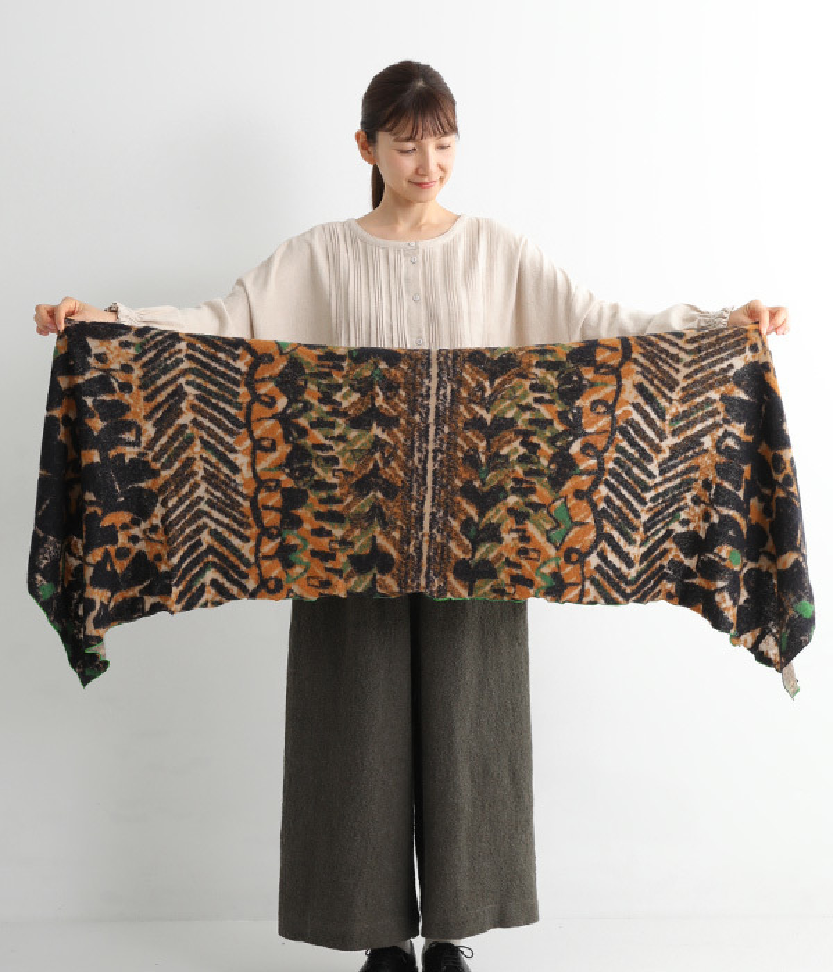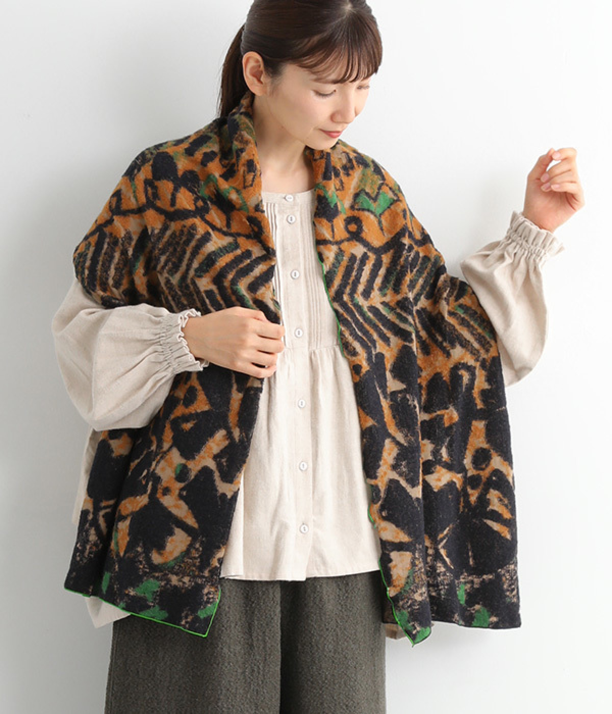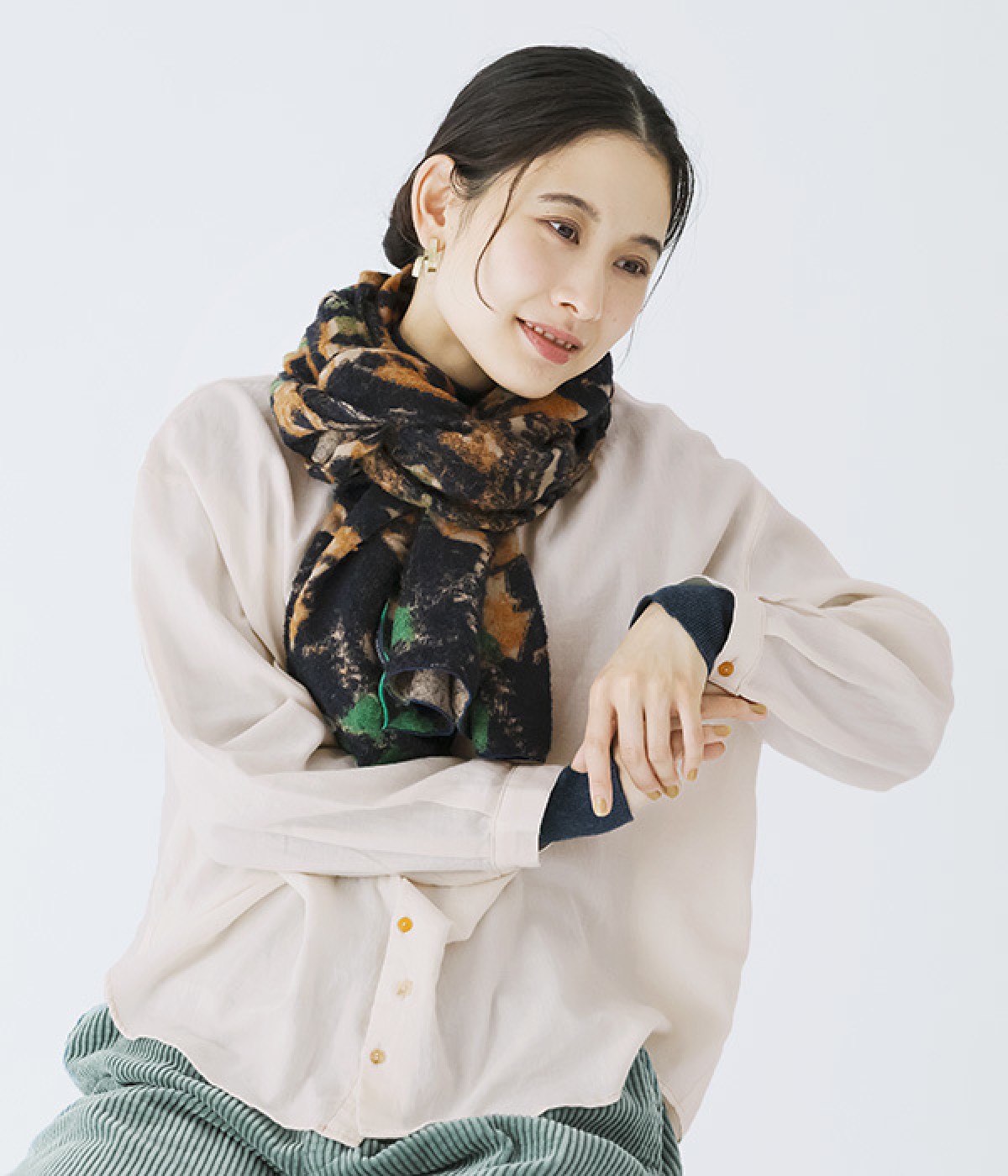首元にほどよいボリュームを加えつつ、重たさを感じにくい仕上がり