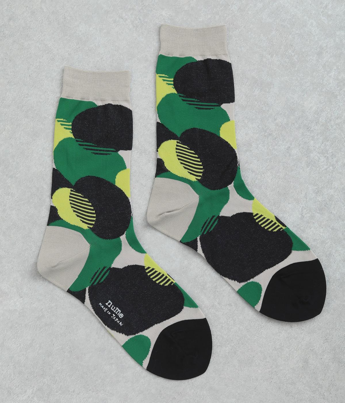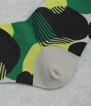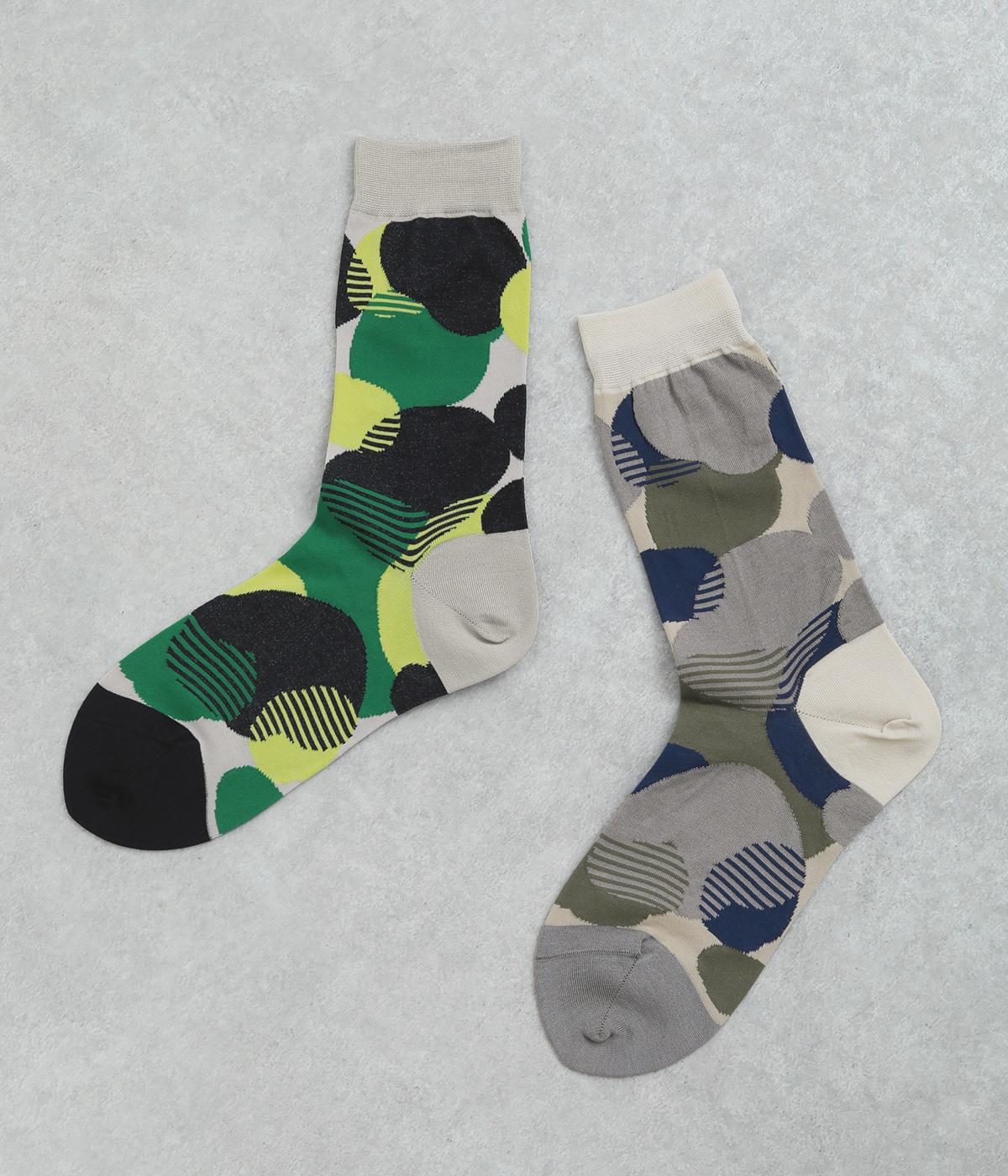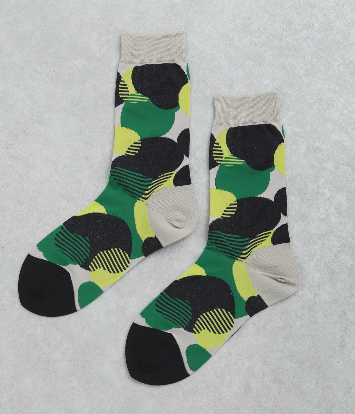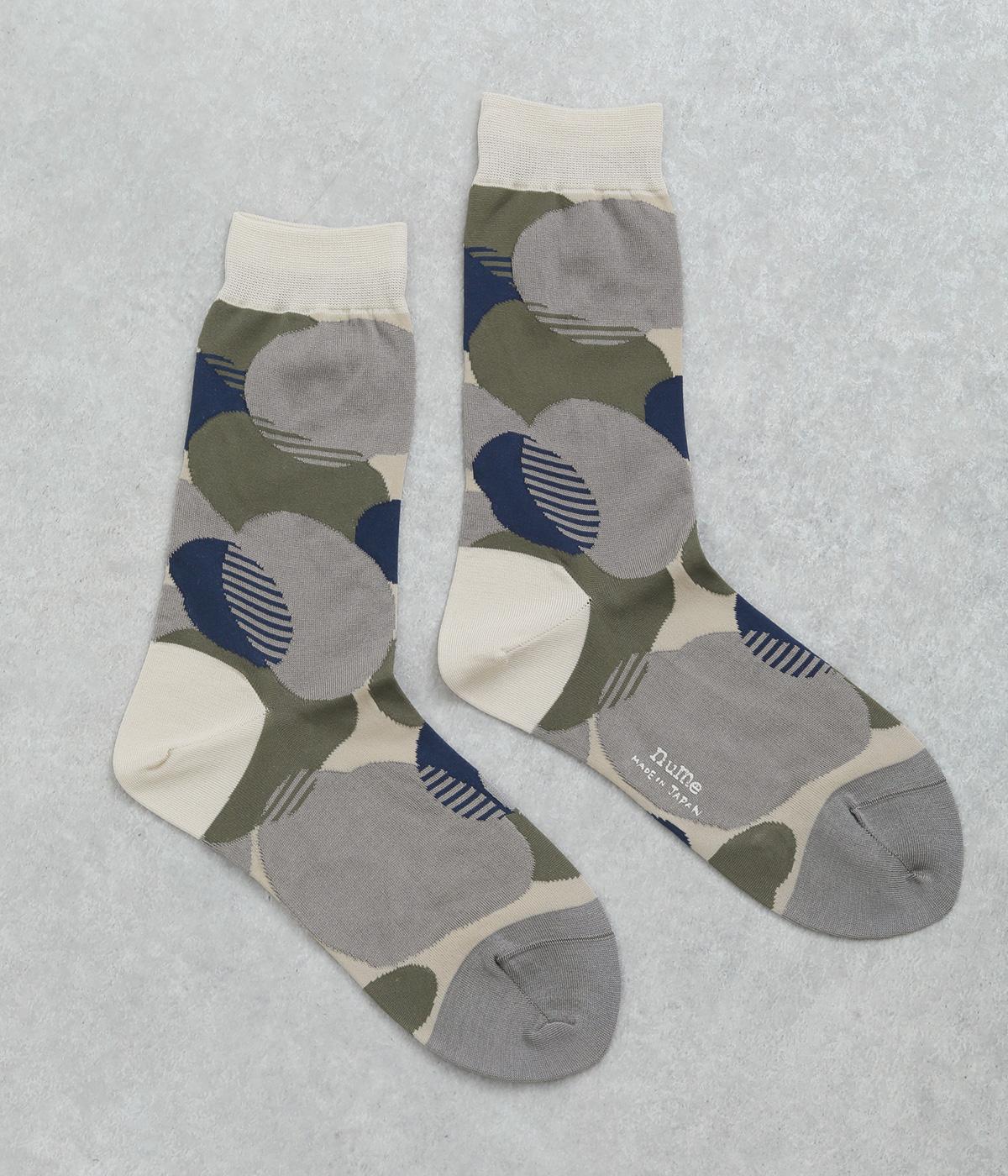 ふくふくとしたお豆のようなドット柄がスタイリングに彩りを添えるソックスです。シンプルなスカートやワンピースに合わせるのはもちろん、ロールアップしたデニムなどからちらりとのぞかせるのもおすすめです。
