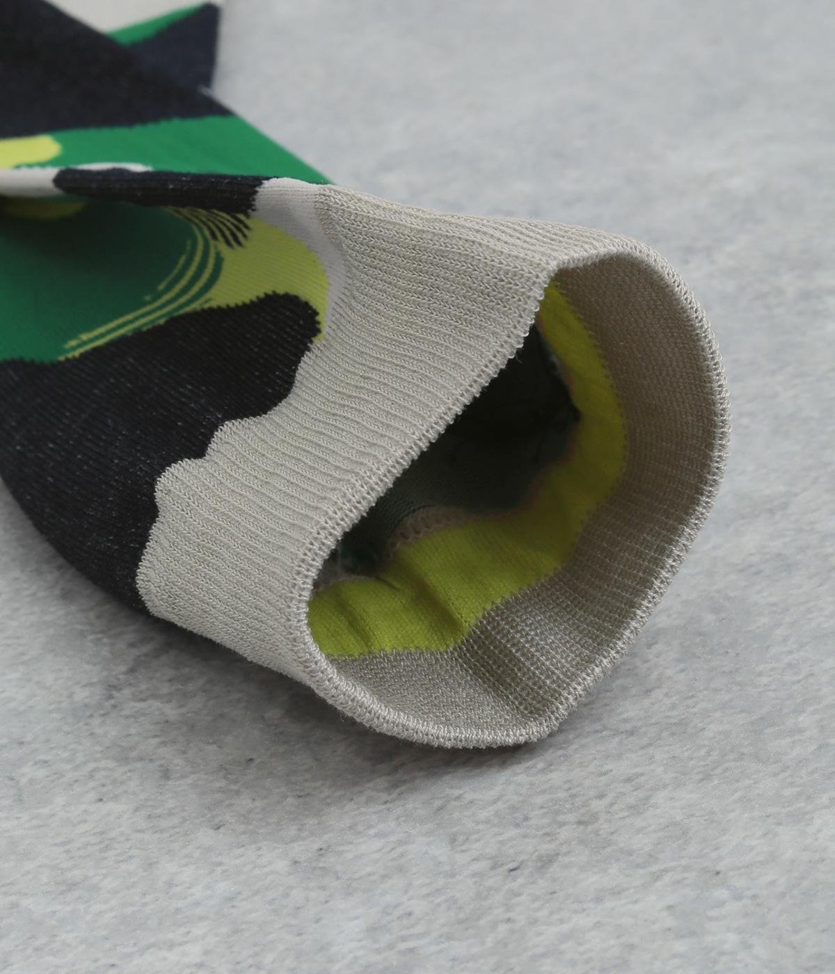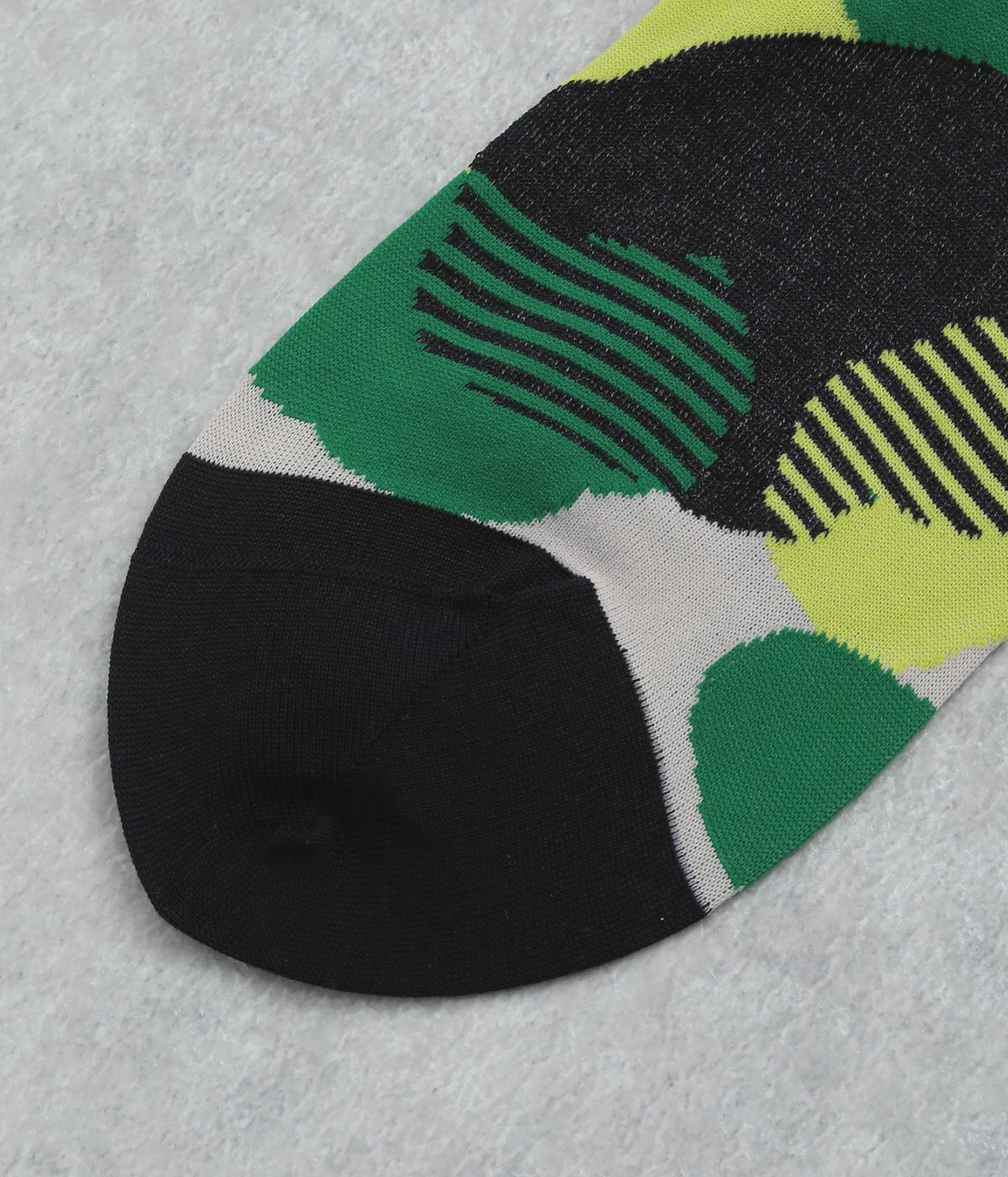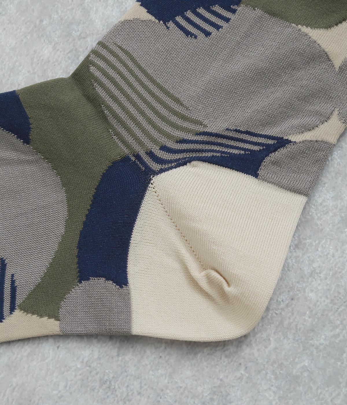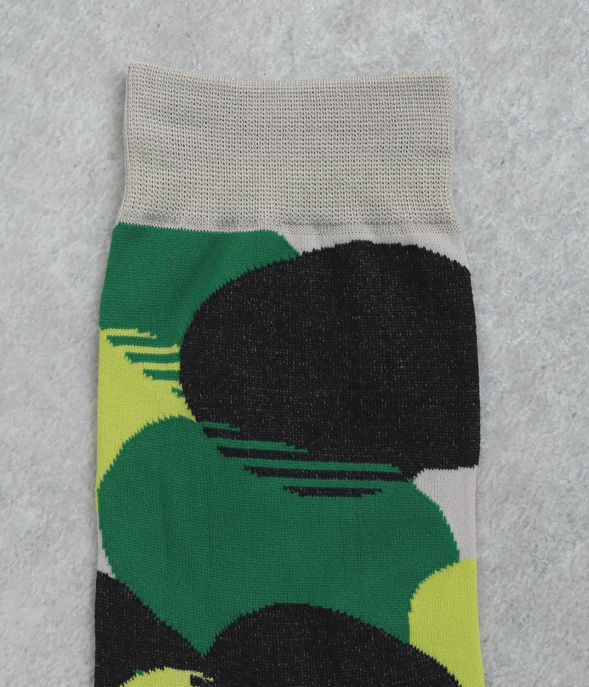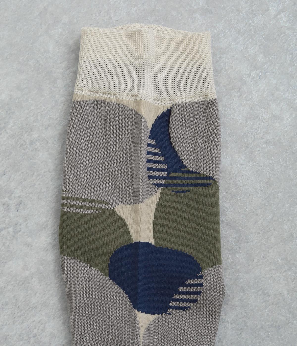 ふくふくとしたお豆のようなドット柄がスタイリングに彩りを添えるソックスです。シンプルなスカートやワンピースに合わせるのはもちろん、ロールアップしたデニムなどからちらりとのぞかせるのもおすすめです。