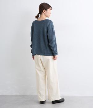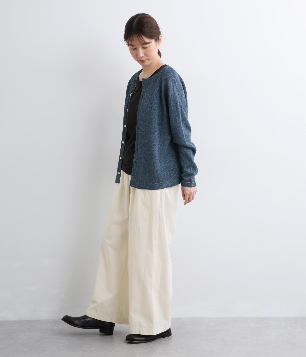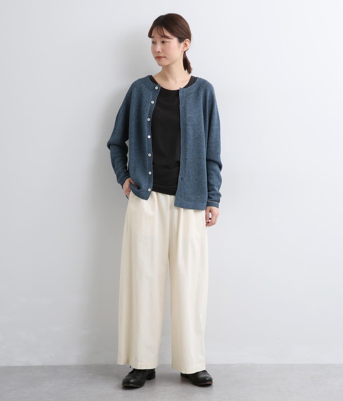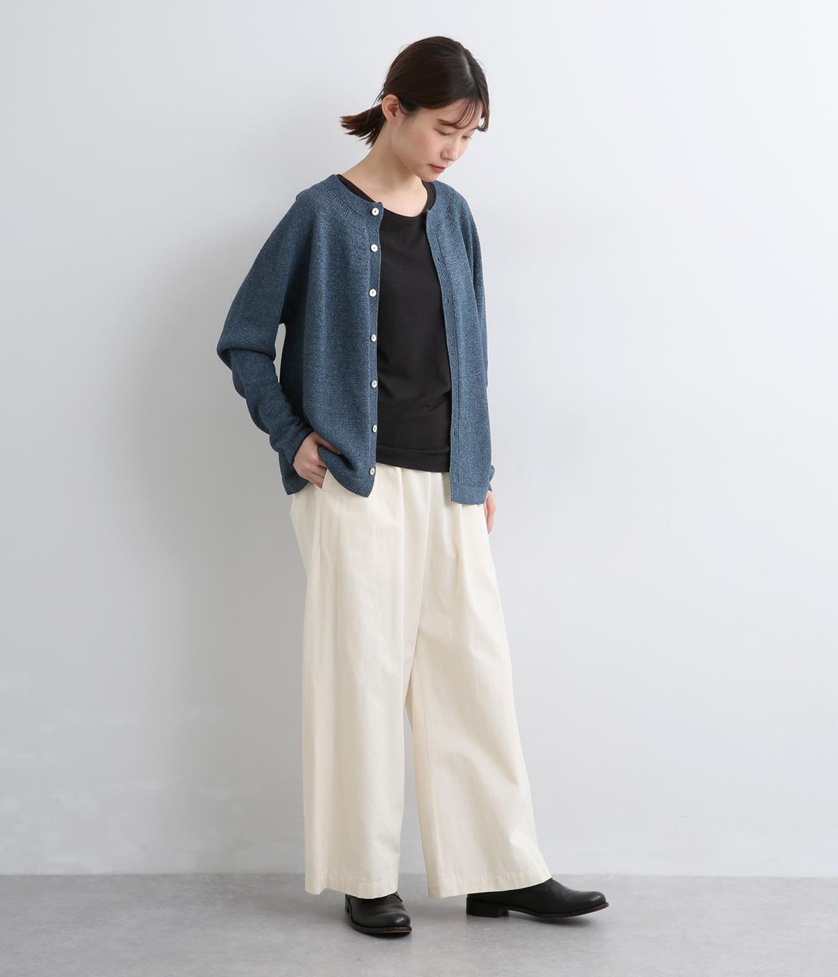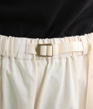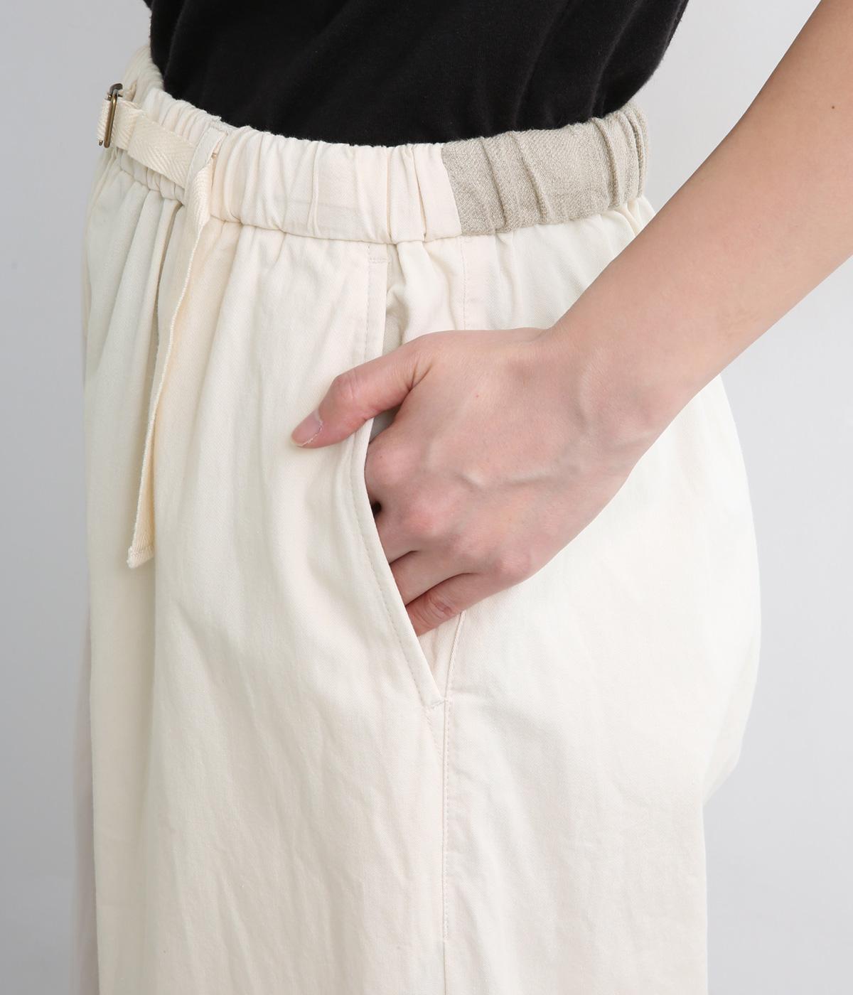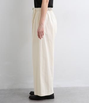 ほどよい密度で織られたコットン生地は、きちんとしたハリを持ちながら、はくほどにやさしくなじむのが魅力です。表面はなめらかで肌あたりがよく、ロングシーズン着用できるのも◎。扱いやすい素材で、デイリー使いにぴったりです。