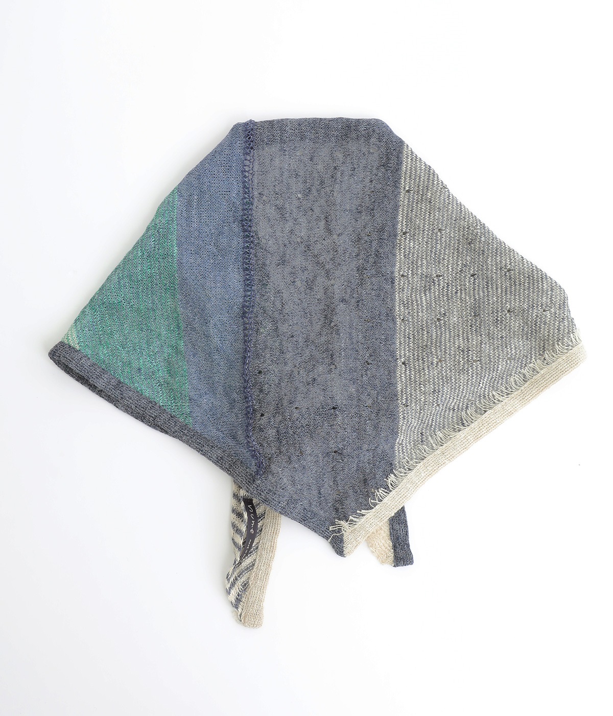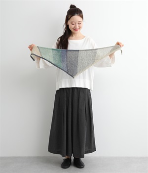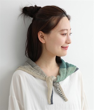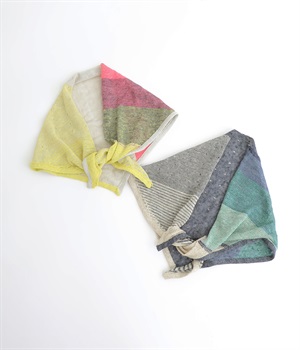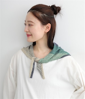 【素材】リネンをベースにコットンなども織り交ぜた混紡素材を使用しました。さらりとした肌触りにざっくりと編み上げた清涼感のある仕上がりになっています。【デザイン】小ぶりなサイズ感が可愛らしい配色のきいたストールです。ちょっと首元にかけたり頭に巻いたりと、スタイリングのアレンジにも活躍。汗ばむ季節も活用しやすい素材でさわやかな色あいも魅力です。