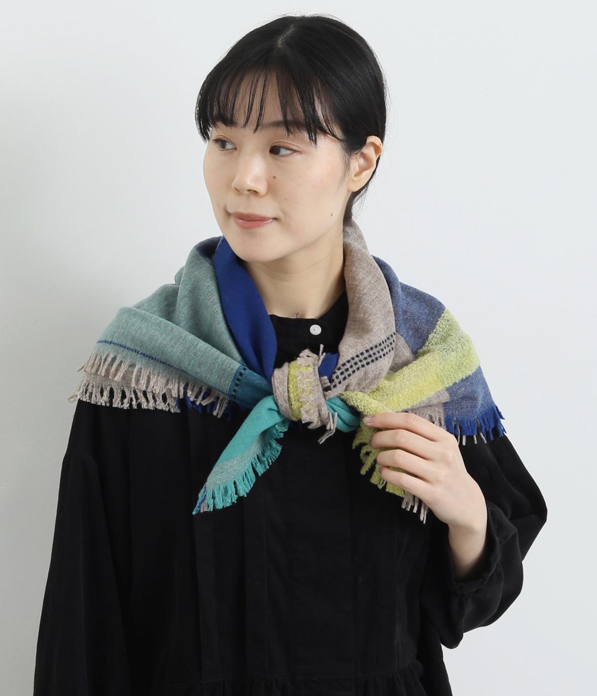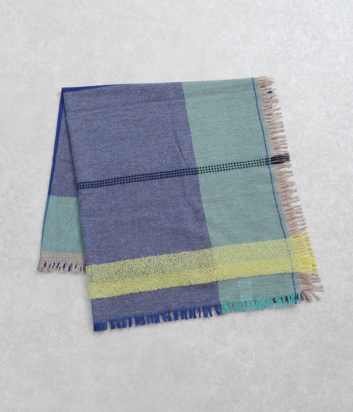 首に巻いたり肩にかけたりとさまざまなアレンジがたのしめる正方形型のストールです。ポイントカラーを入れたブロックチェックにフリンジつきでデザイン性も◎。ボリュームが出すぎないので、スタイリングにさり気なく取り入れられます。