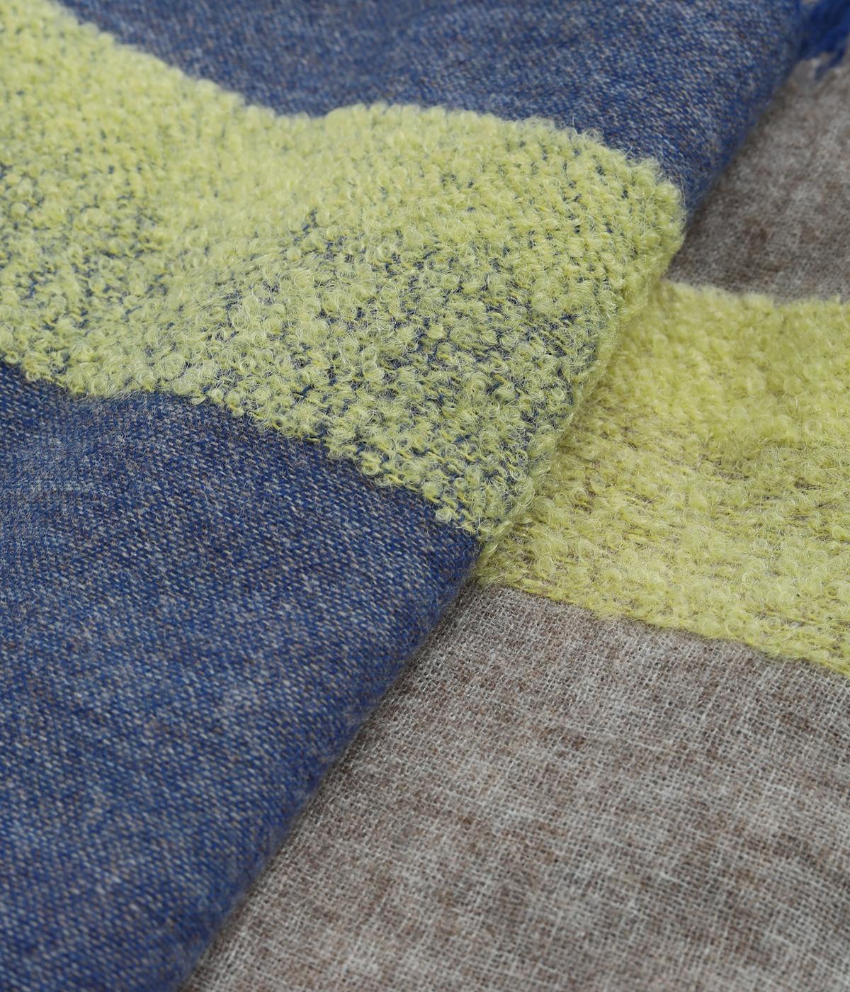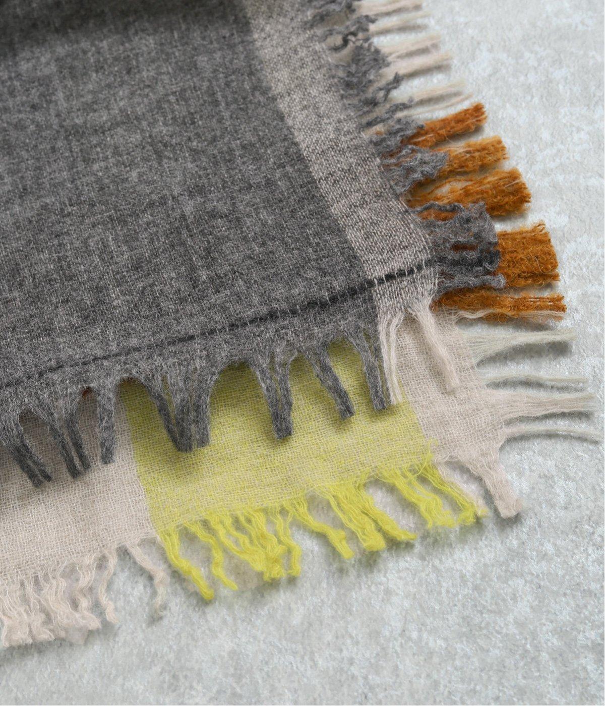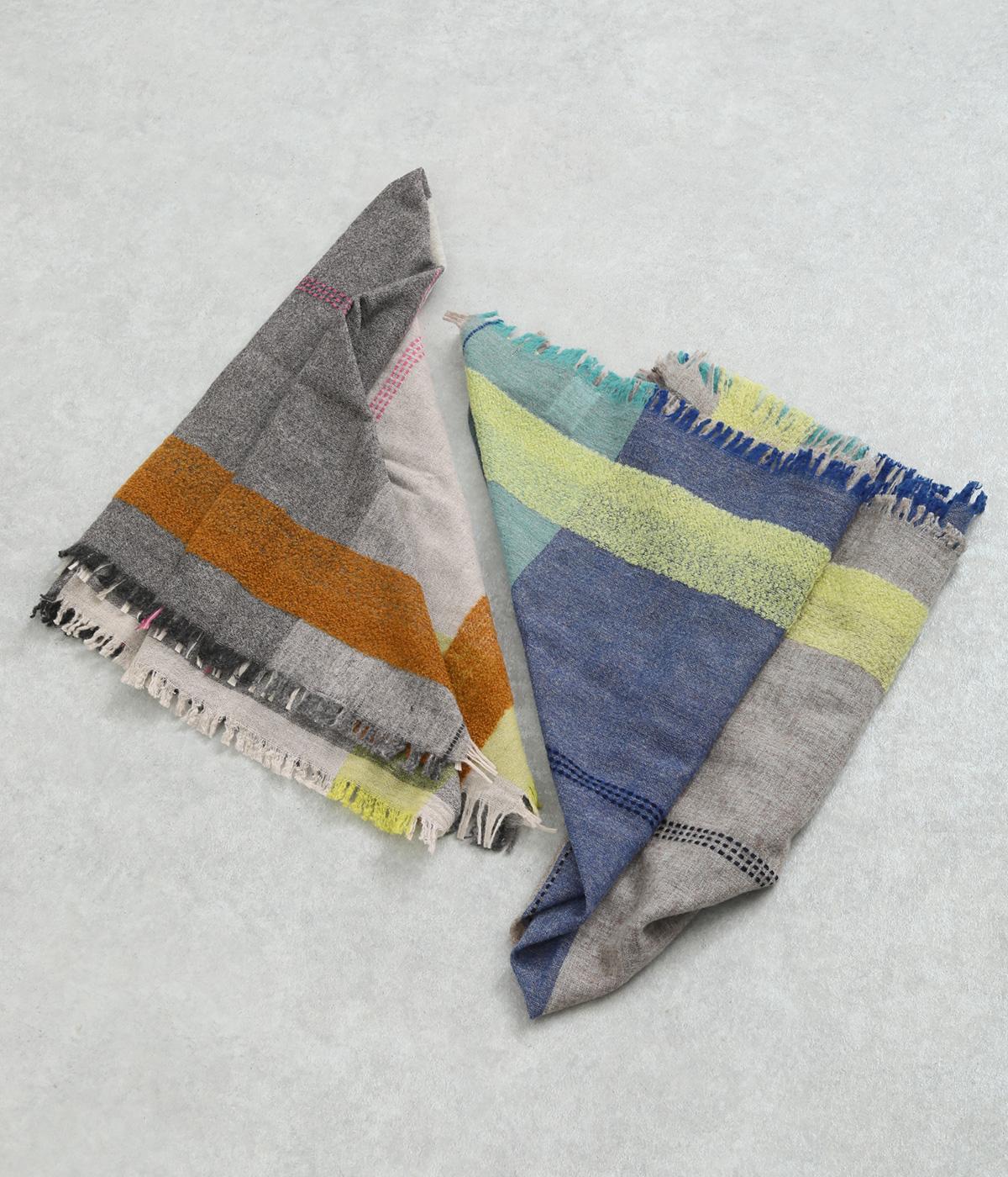 ウールやアルパカであたたかみを出し、ナイロンをすこしまぜてエアリーに仕上げました。心地よい肌あたりに扱いやすい薄め生地で持ち歩き用としても重宝します。