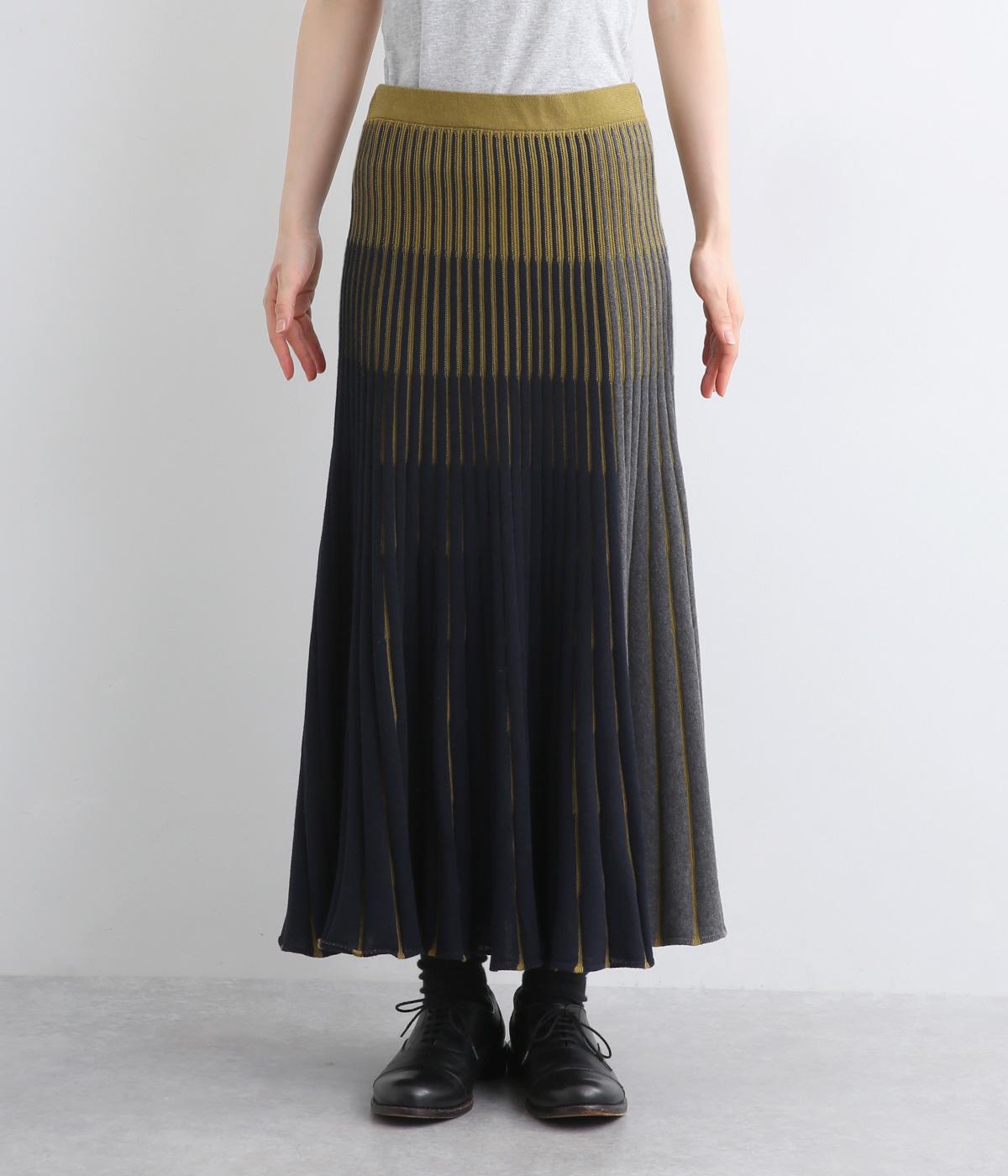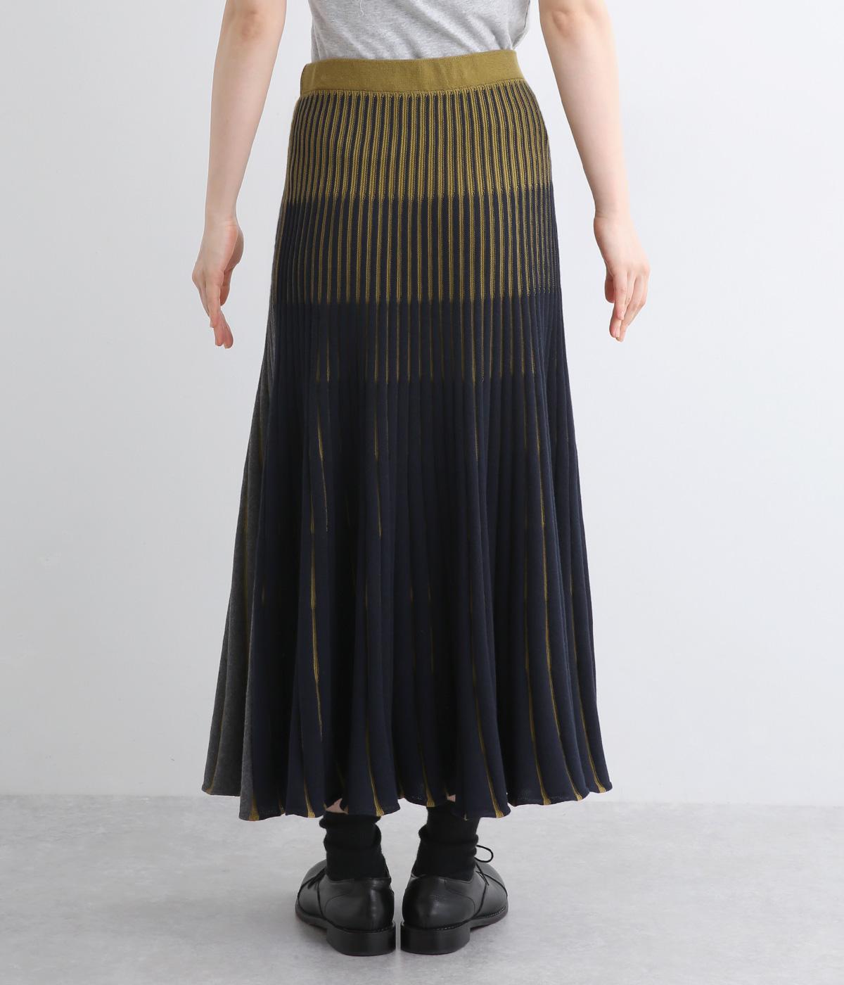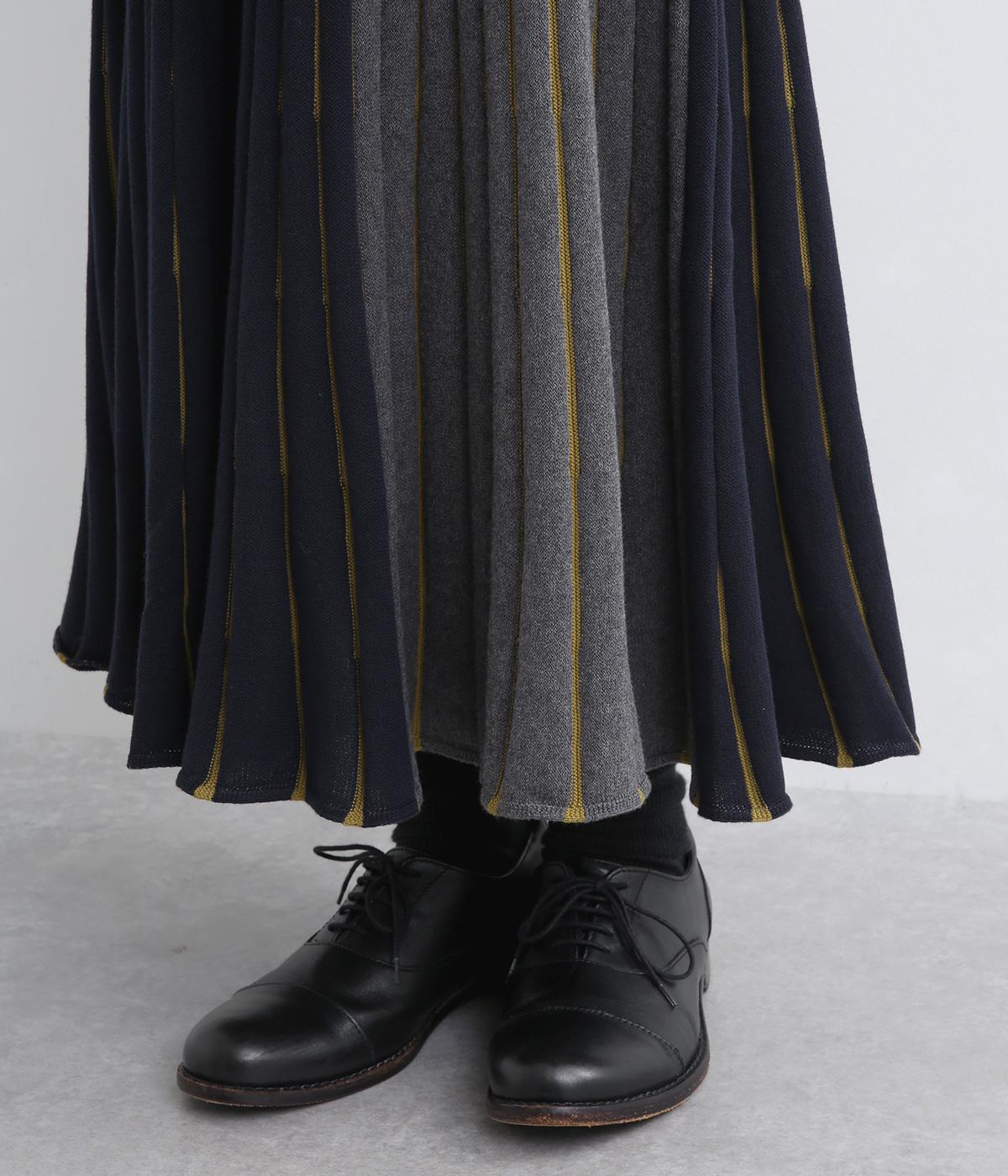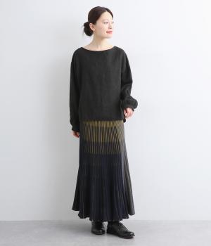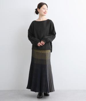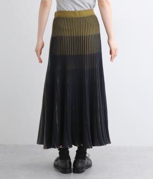 細いラインが入ったプリーツデザインのスカートです。縫い目によるごわつきがないホールガーメント仕様なので、前後変えて着まわすこともできます。ウエストはお腹まわりをやさしく包みこむ総ゴムです。