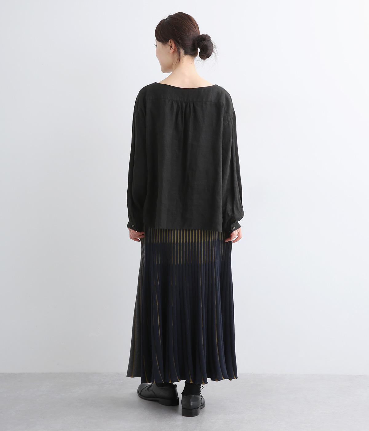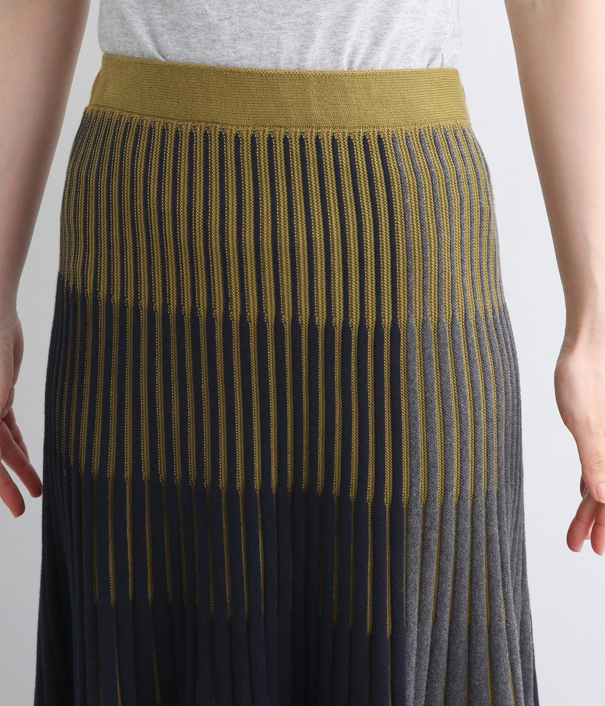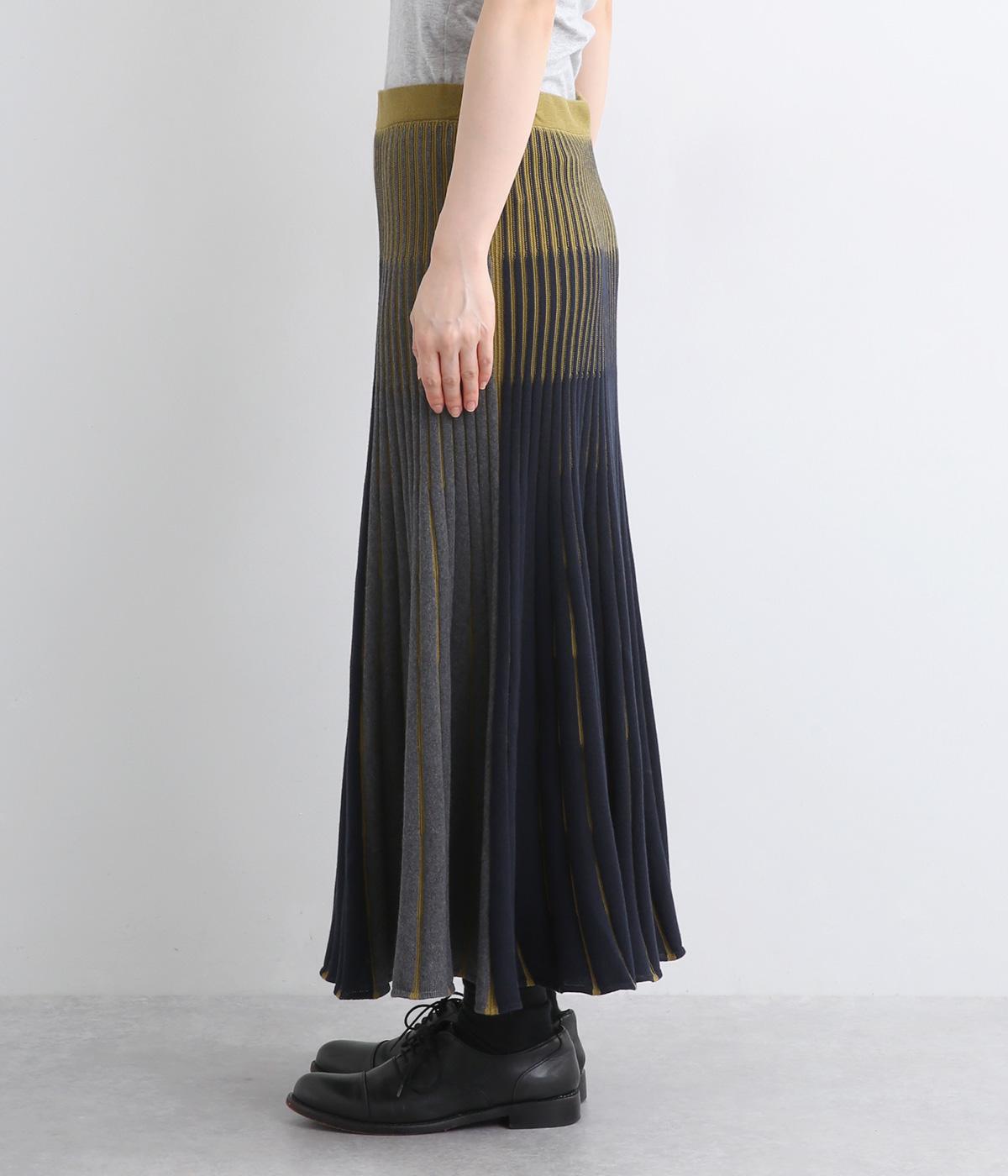 細いラインが入ったプリーツデザインのスカートです。縫い目によるごわつきがないホールガーメント仕様なので、前後変えて着まわすこともできます。ウエストはお腹まわりをやさしく包みこむ総ゴムです。