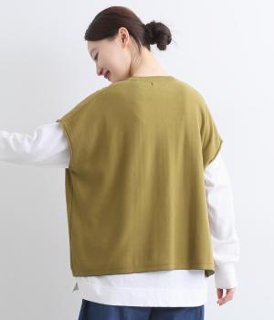 ほどよくストレッチがきいていて、着心地のよいコットンニットで仕立てました。ふんわりとしていて肌にやさしく、通気性のよさも魅力です。