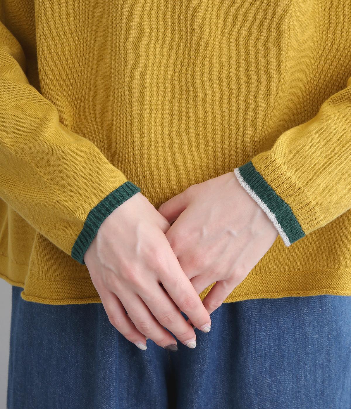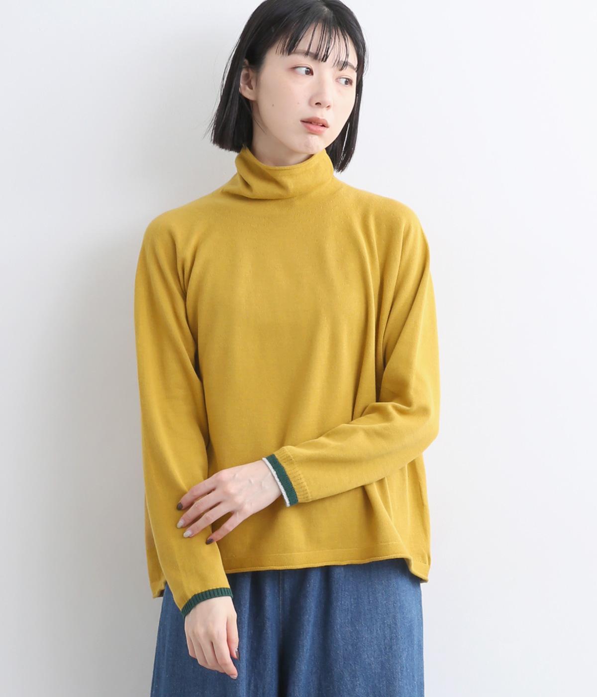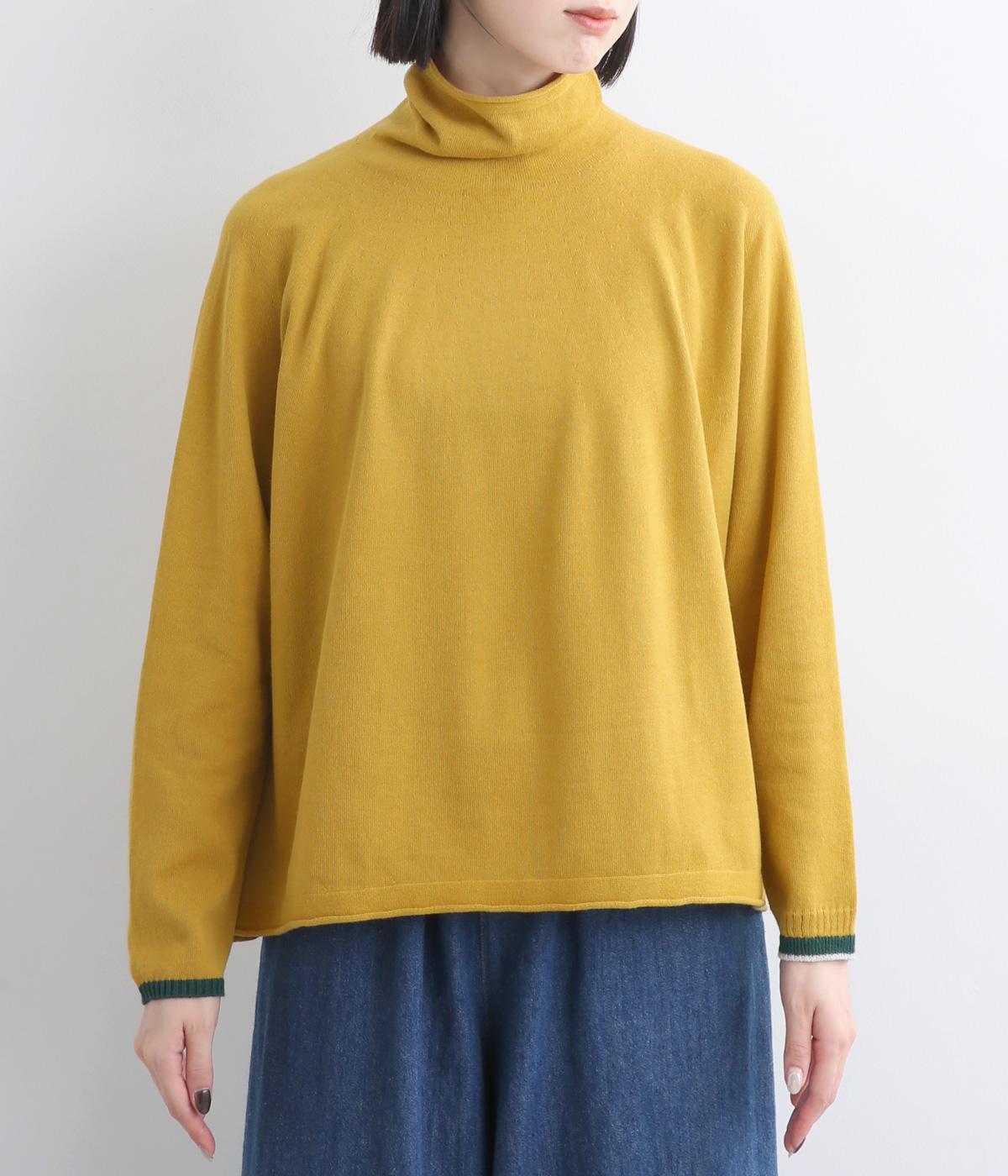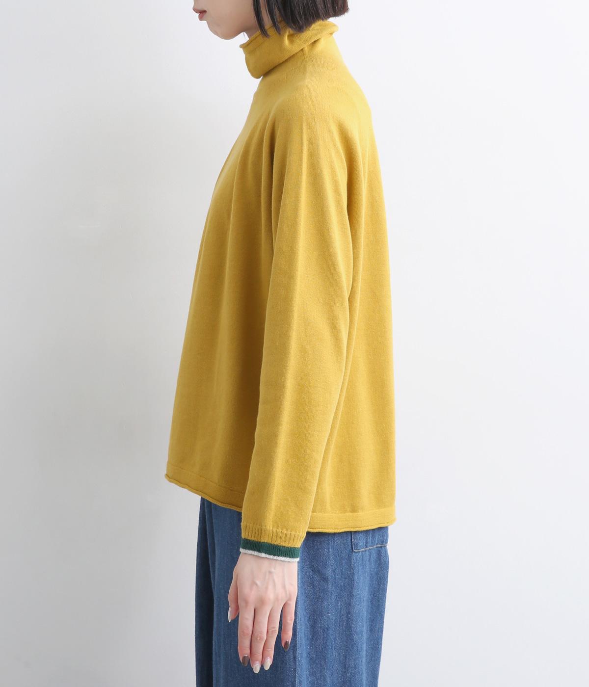 身幅広めのゆったりシルエットに仕立てたプルオーバーです。襟が少し下がる、ふんわりとしたオフタートルが特徴に。両袖口にはアシンメトリーな配色ラインをプラスしてアクセントを加えました。