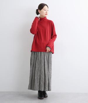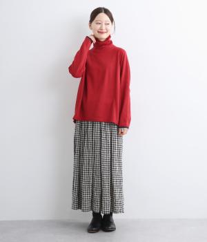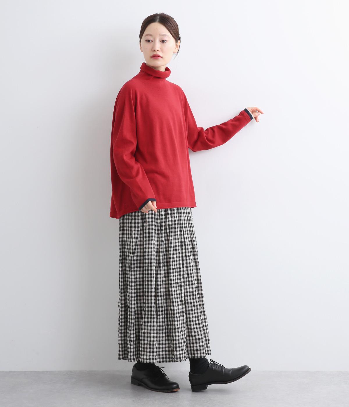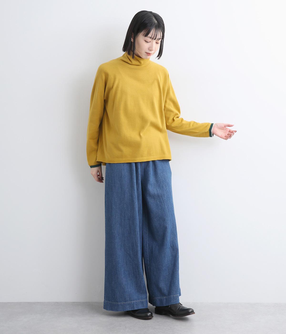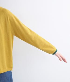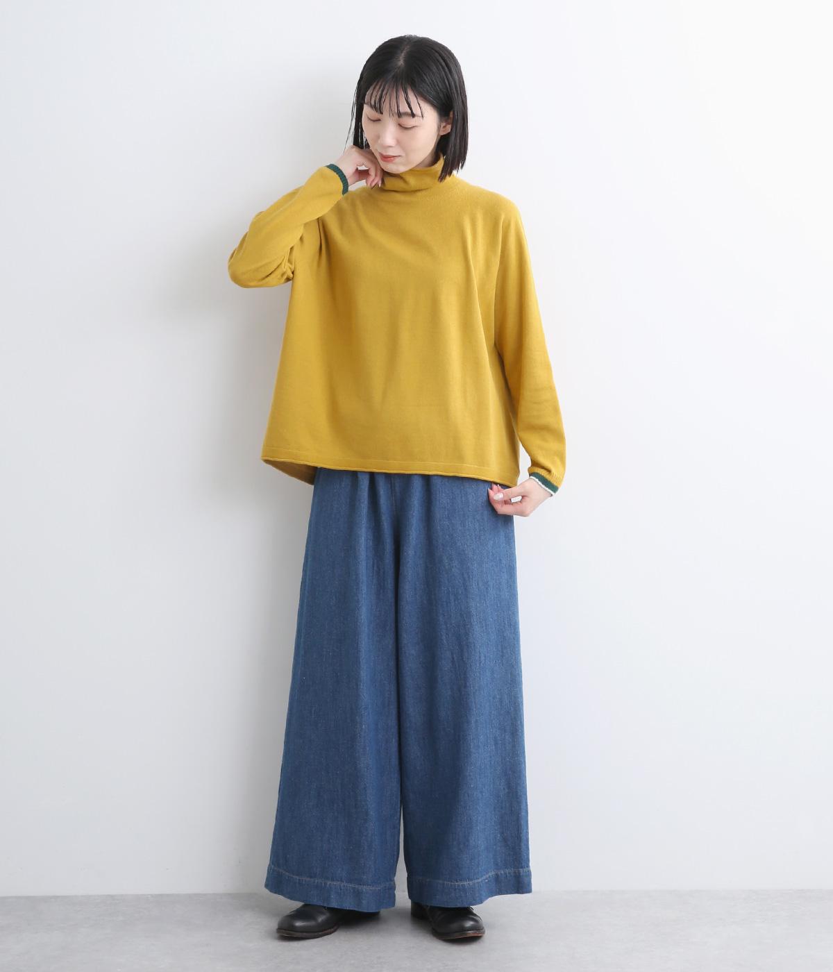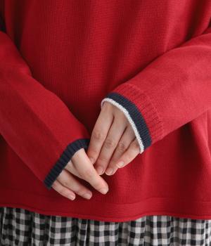 身幅広めのゆったりシルエットに仕立てたプルオーバーです。襟が少し下がる、ふんわりとしたオフタートルが特徴に。両袖口にはアシンメトリーな配色ラインをプラスしてアクセントを加えました。