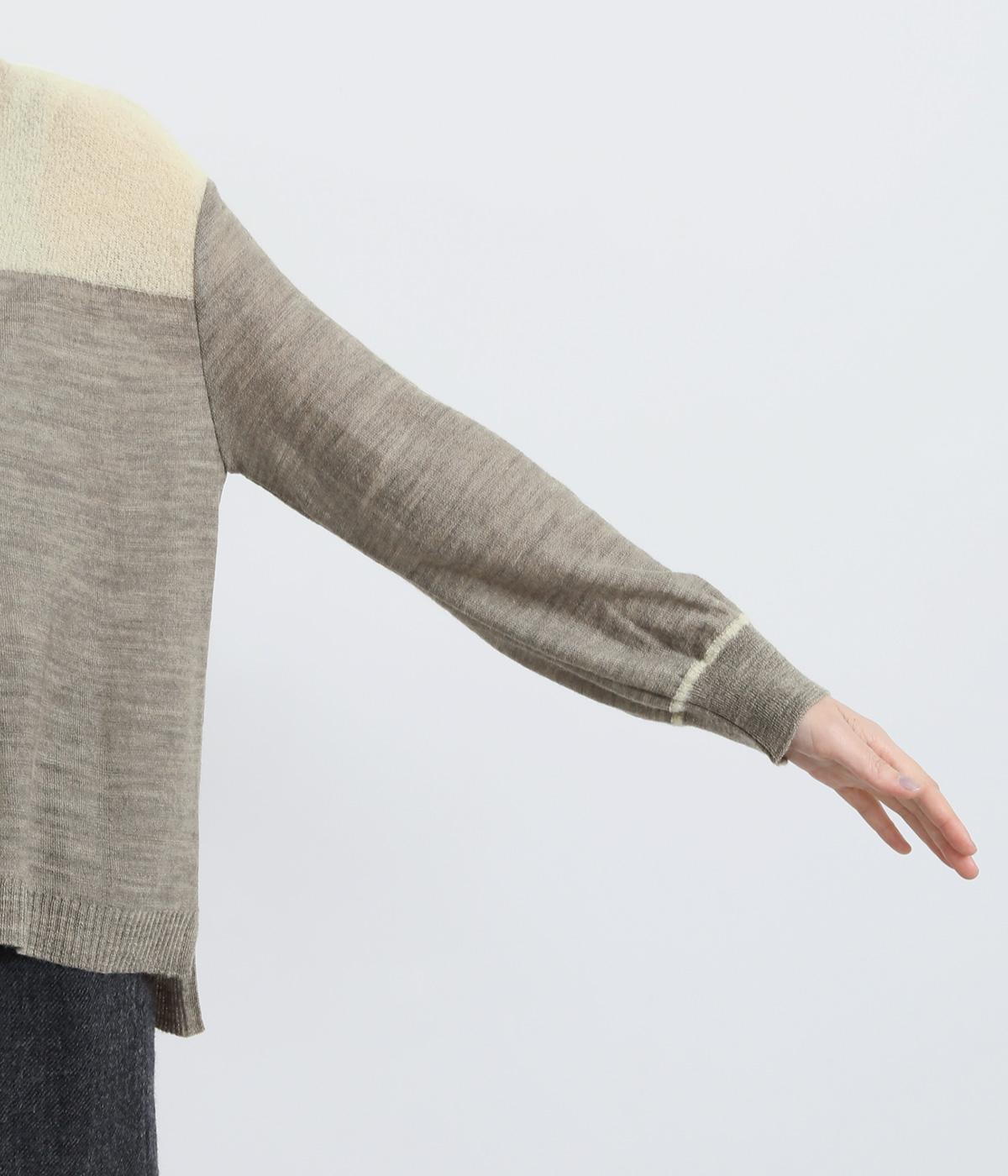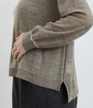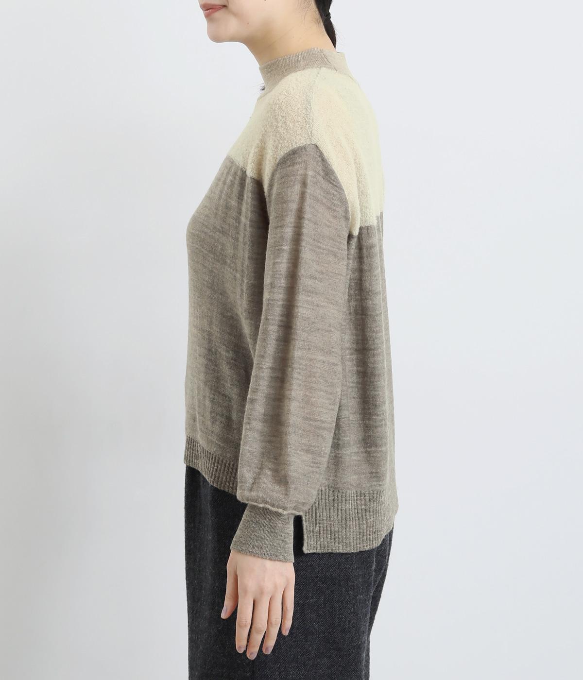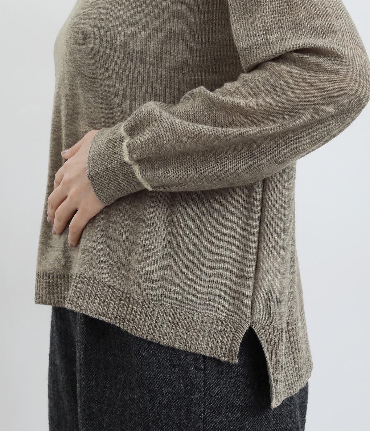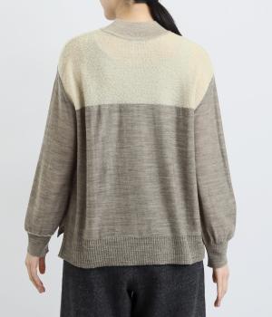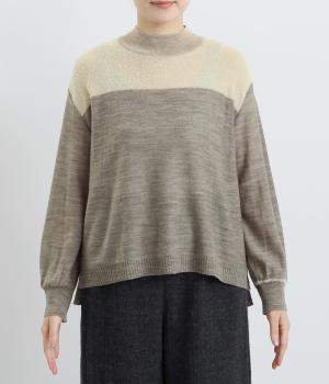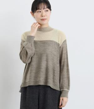 異素材と配色でシンプルながらもアクセントをきかせた一枚。身頃はフィット感をおさえて着心地よく、モックネックや袖口のリブですっきりとまとめました。着丈はすこし前後差をつけてスリットを入れているので、ラフなトップスアウトもさまになります。