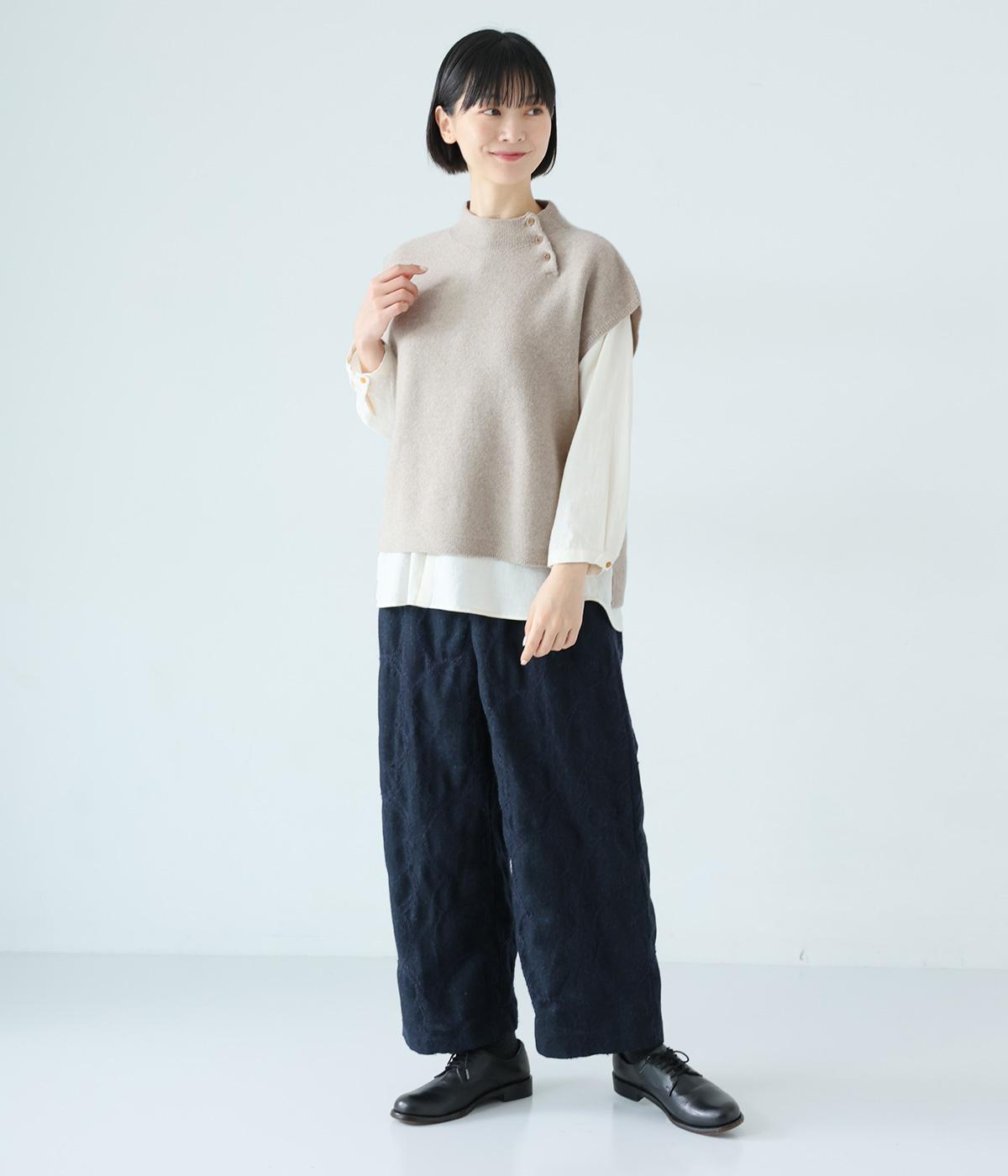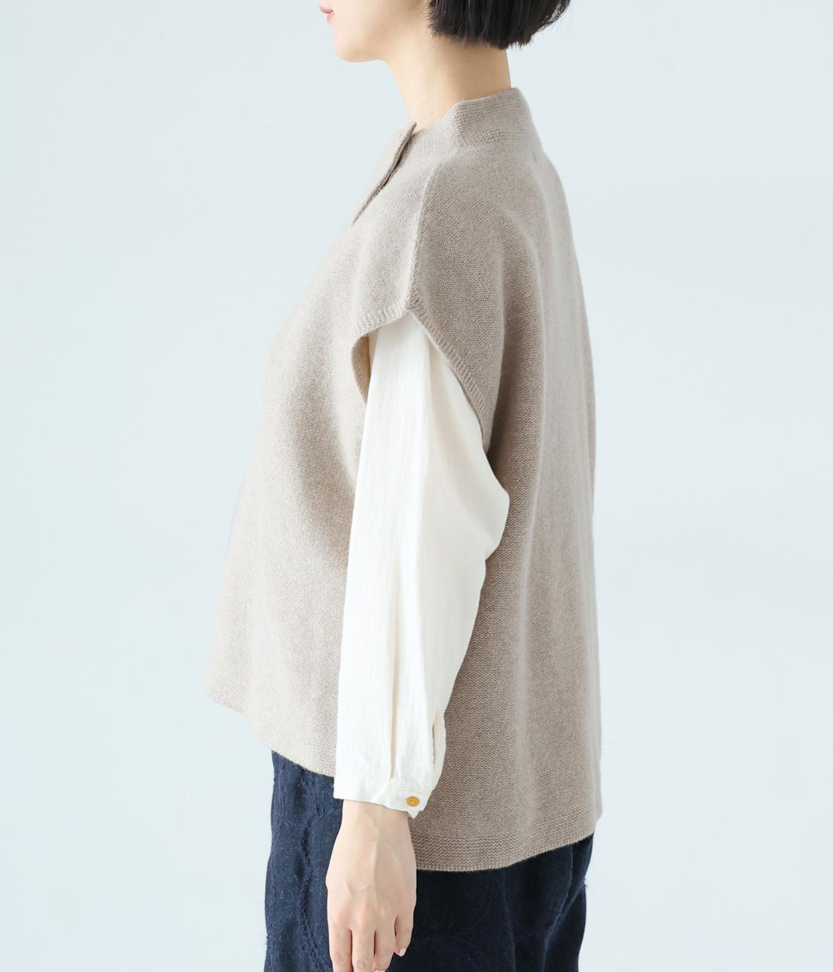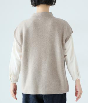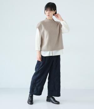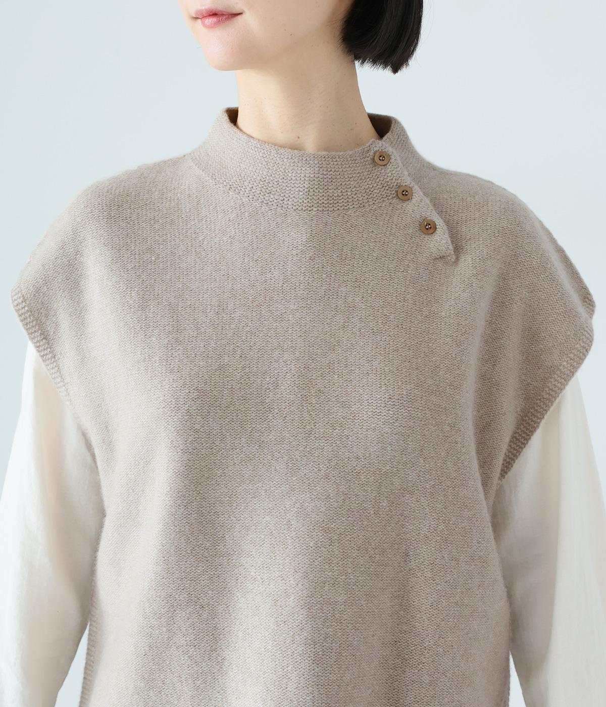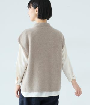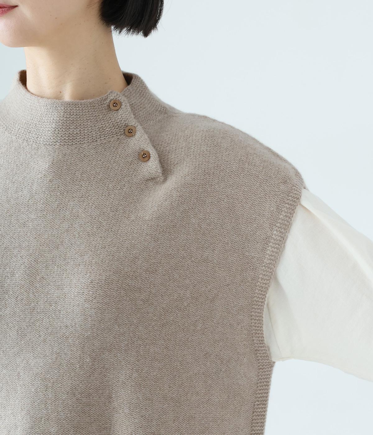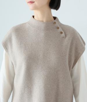 立体感のある滑らかなフォルムを表現したホールガーメントのニットベスト。肩先を覆うゆとりのある身幅が体のラインをカバーしてくれます。低めに立ち上げた上品なネックと、左サイドの3つのボタンがアクセントに。全体のバランスをすっきりと見せる、コンパクトな着丈設定もポイントです。