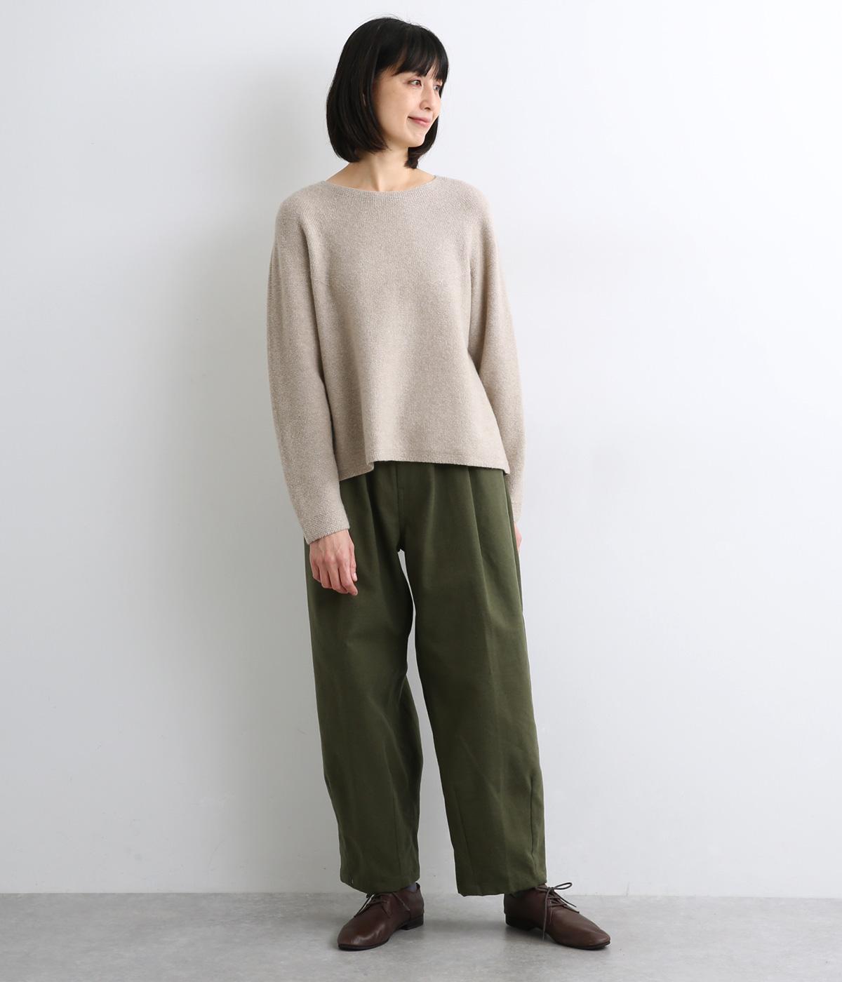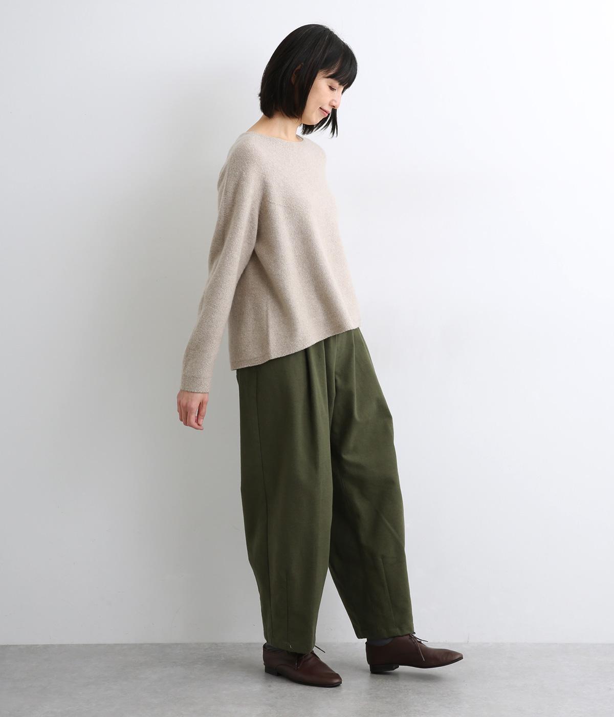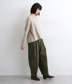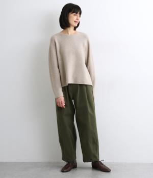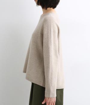 シンプルなプルオーバーで、幅広い着こなしが楽しめます。前後差のある裾のラインがさりげないこなれ感を添え、首元はすっきり仕上げて顔まわりを軽やかに見せてくれます。デイリーに活躍するアイテムです。