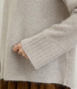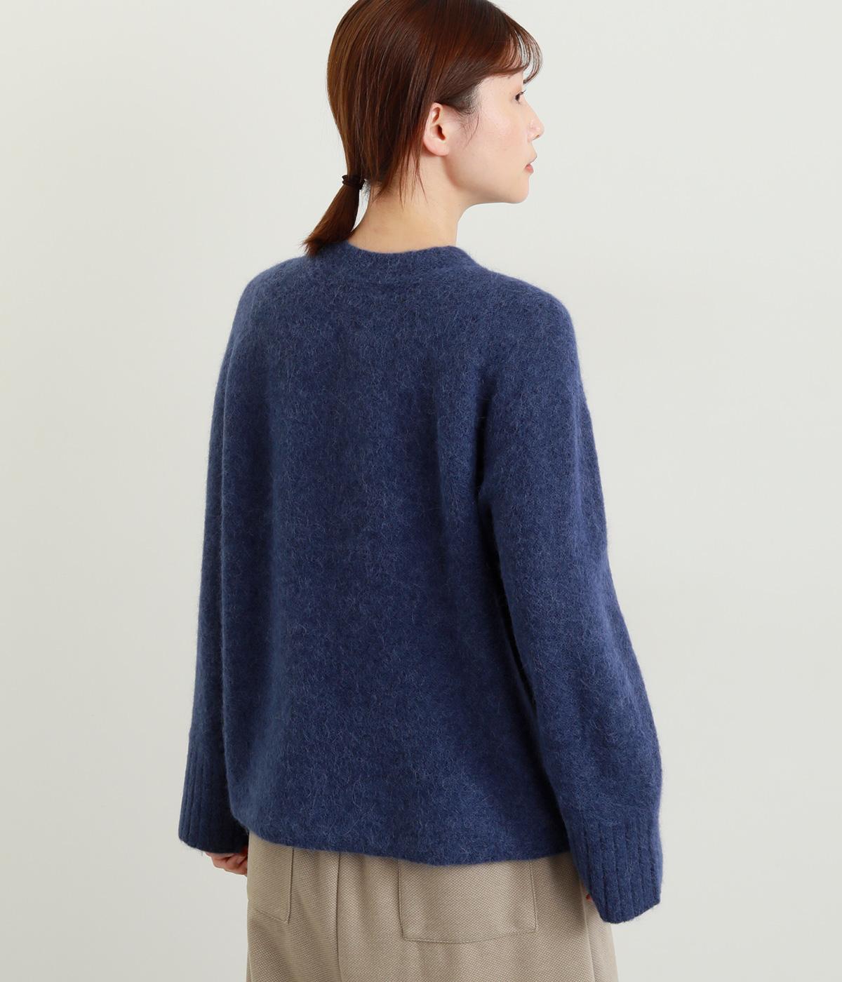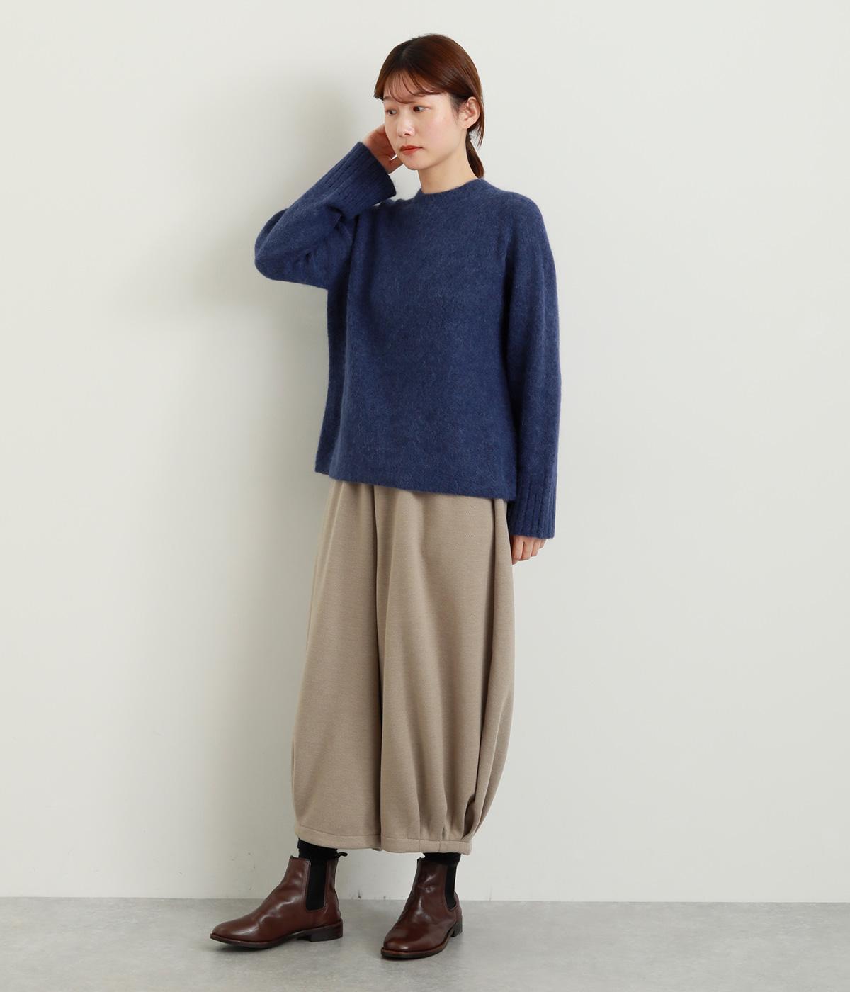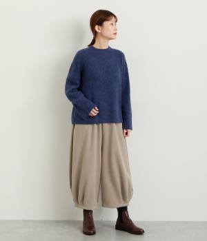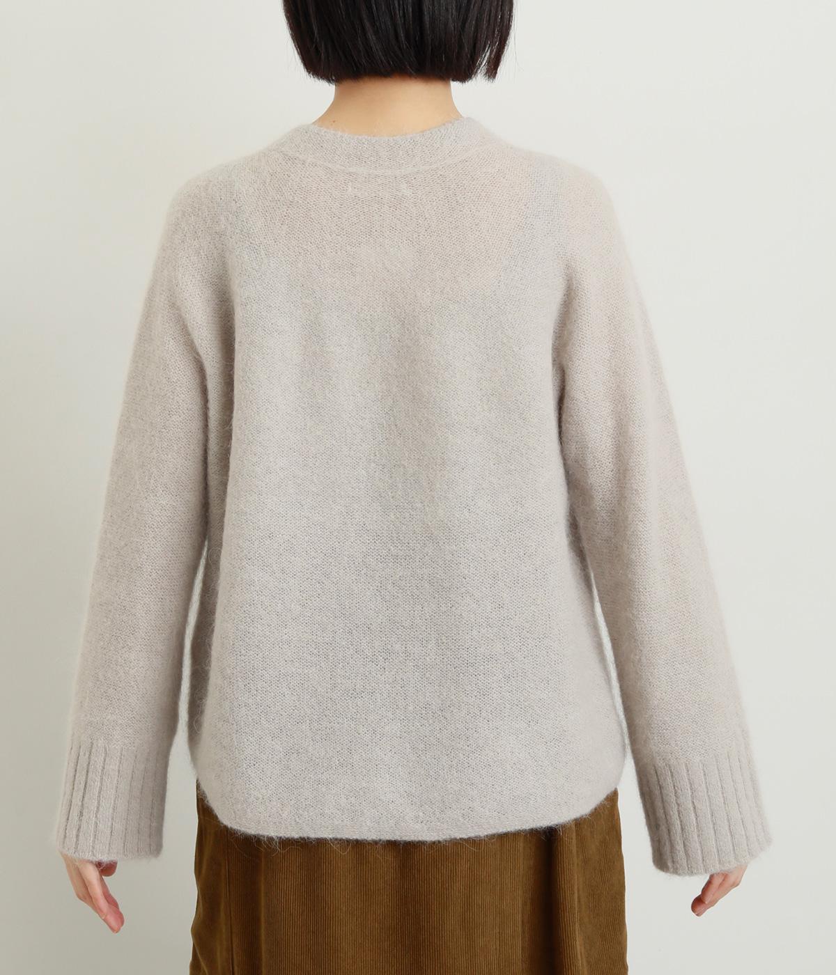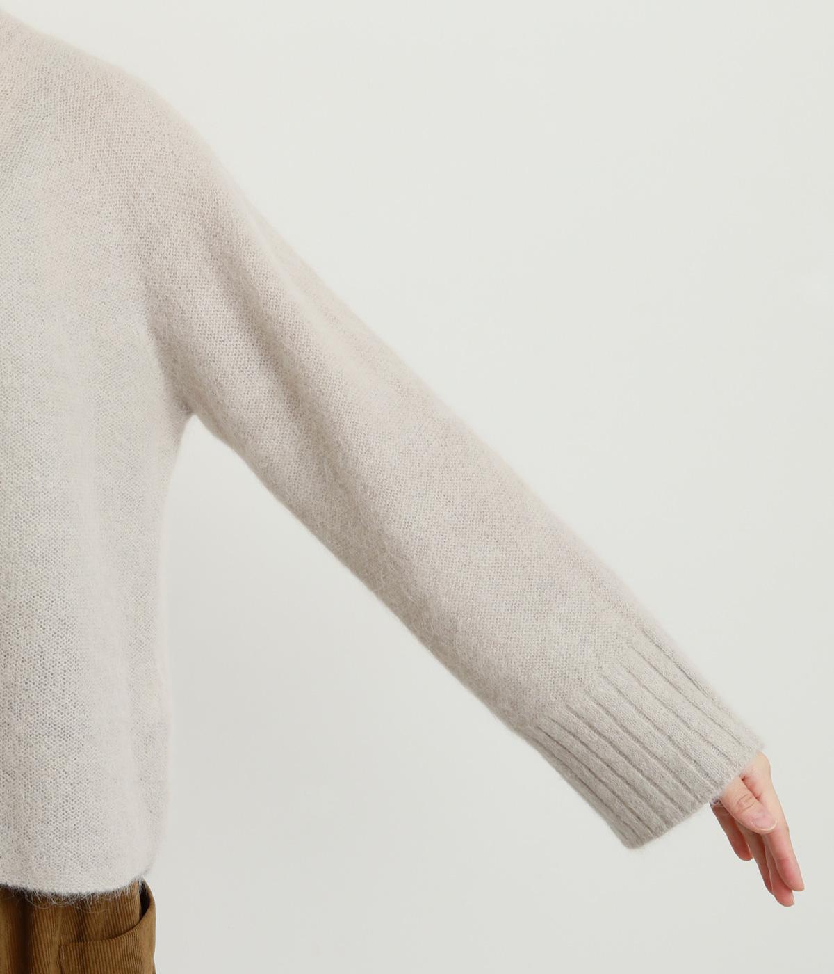 空気をたっぷりふくんだアルパカ混の糸を使用し、軽くてあたたかい風合いに仕上げています。ホールガーメントならではの立体的でしなやかな伸びがあり、着た瞬間から、ふわっと体になじむ心地よさを味わえます。