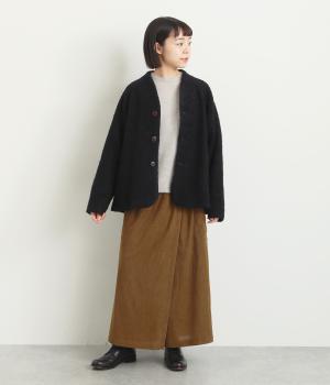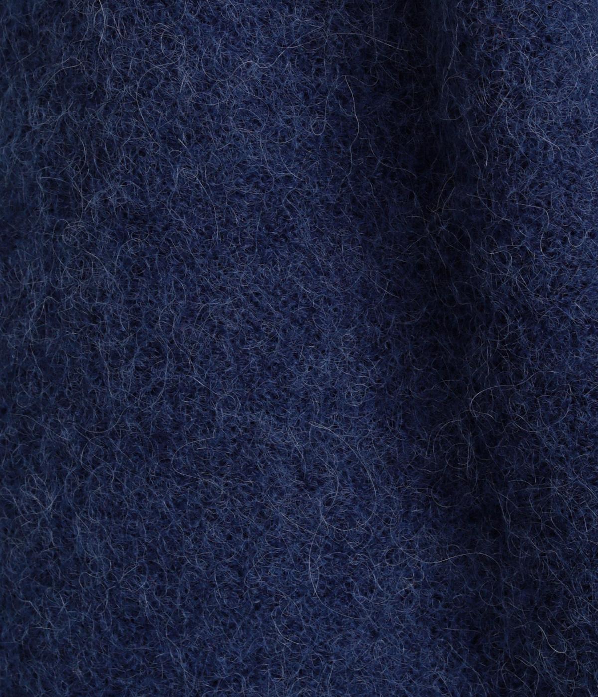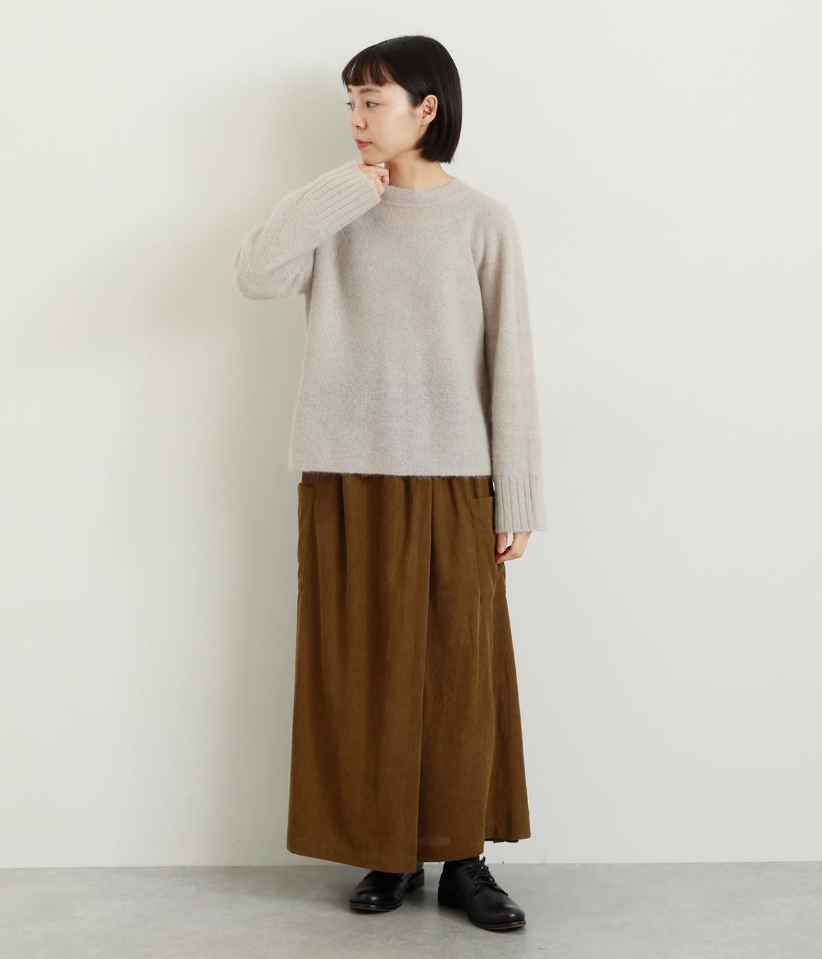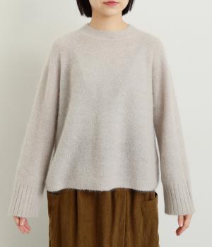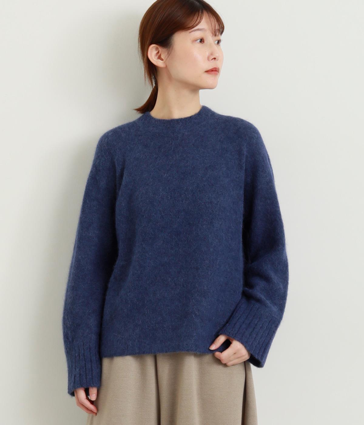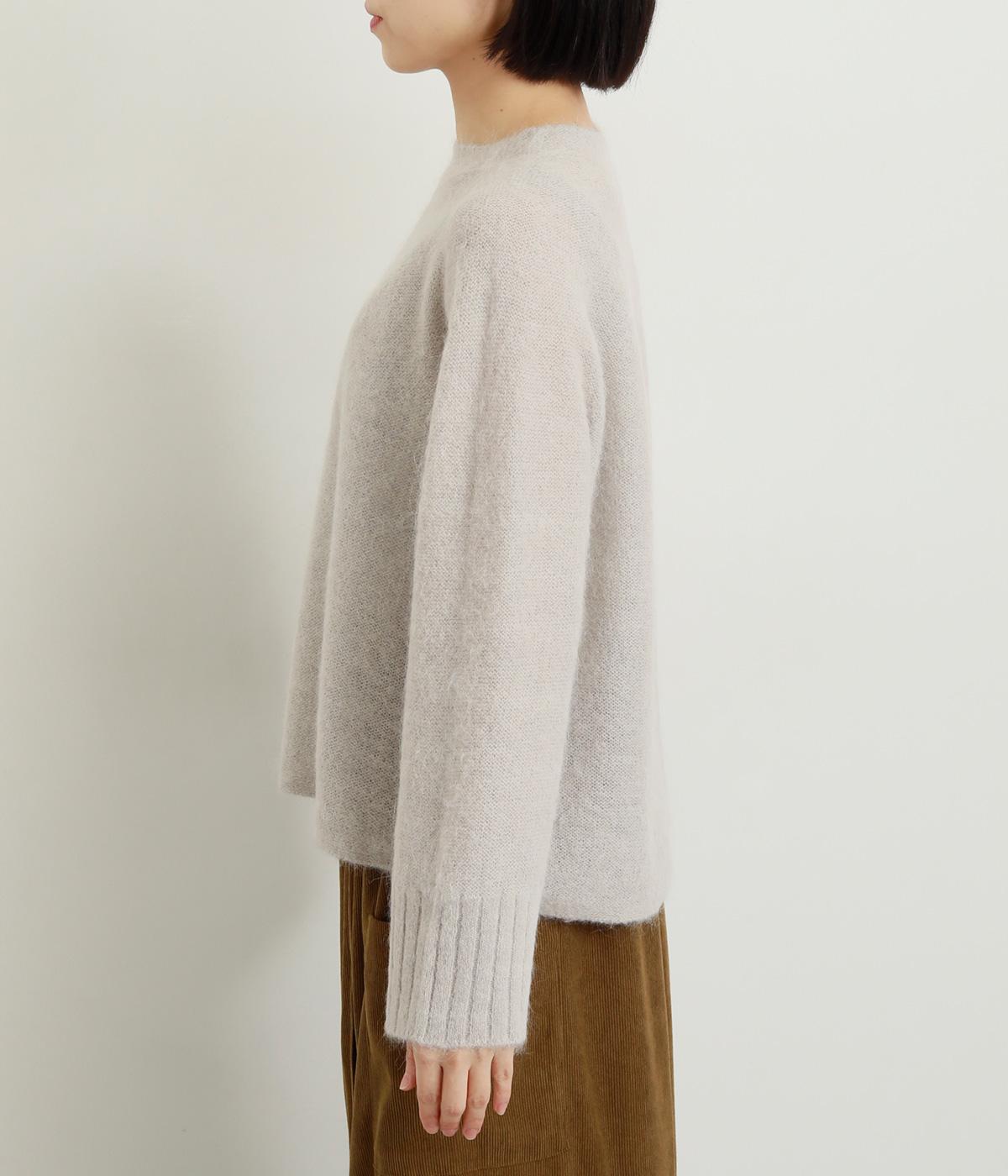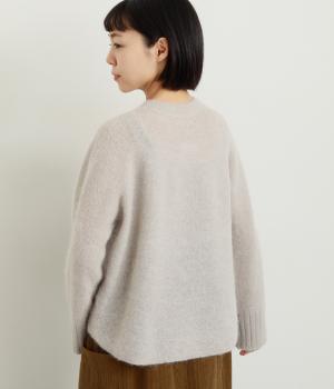 空気をたっぷりふくんだアルパカ混の糸を使用し、軽くてあたたかい風合いに仕上げています。ホールガーメントならではの立体的でしなやかな伸びがあり、着た瞬間から、ふわっと体になじむ心地よさを味わえます。