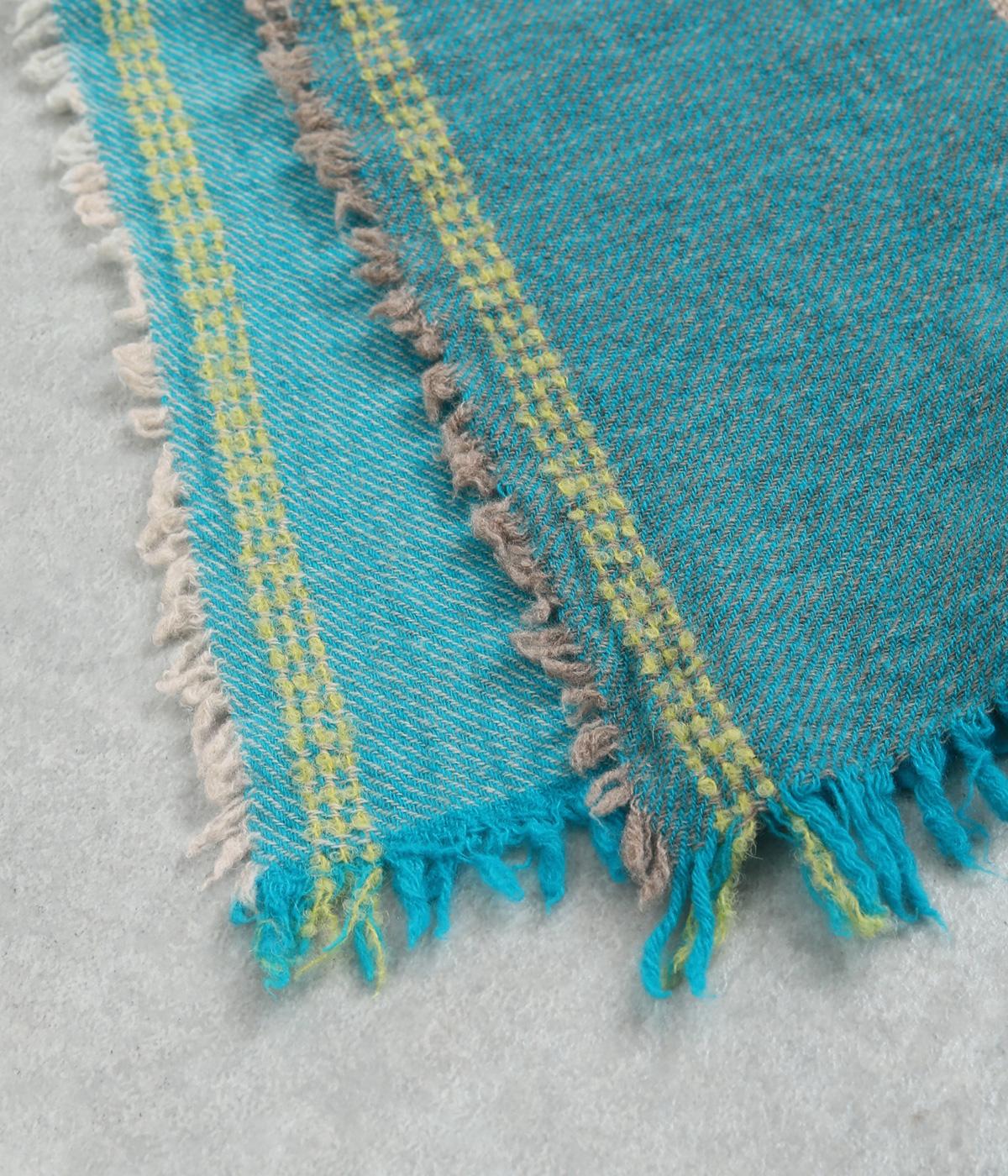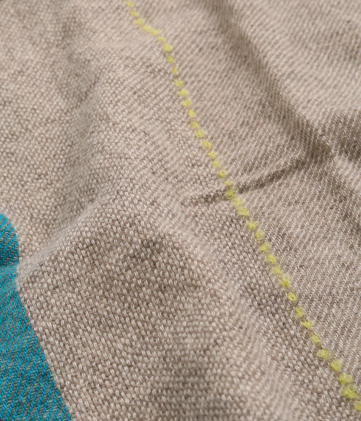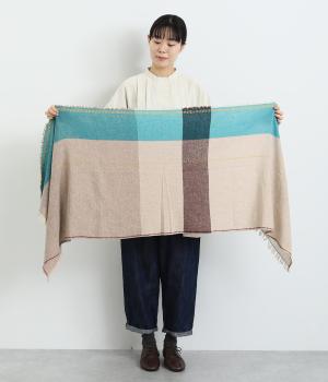 ウールやアルパカであたたかみを出し、ナイロンをすこしまぜてエアリーに仕上げました。心地よい肌あたりに扱いやすい薄め生地で持ち歩き用としても重宝します。