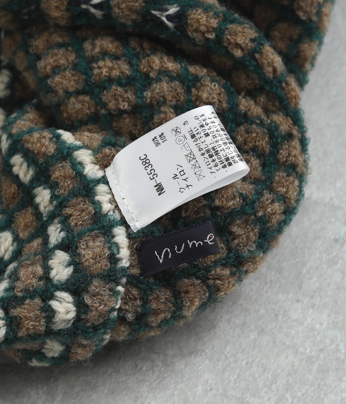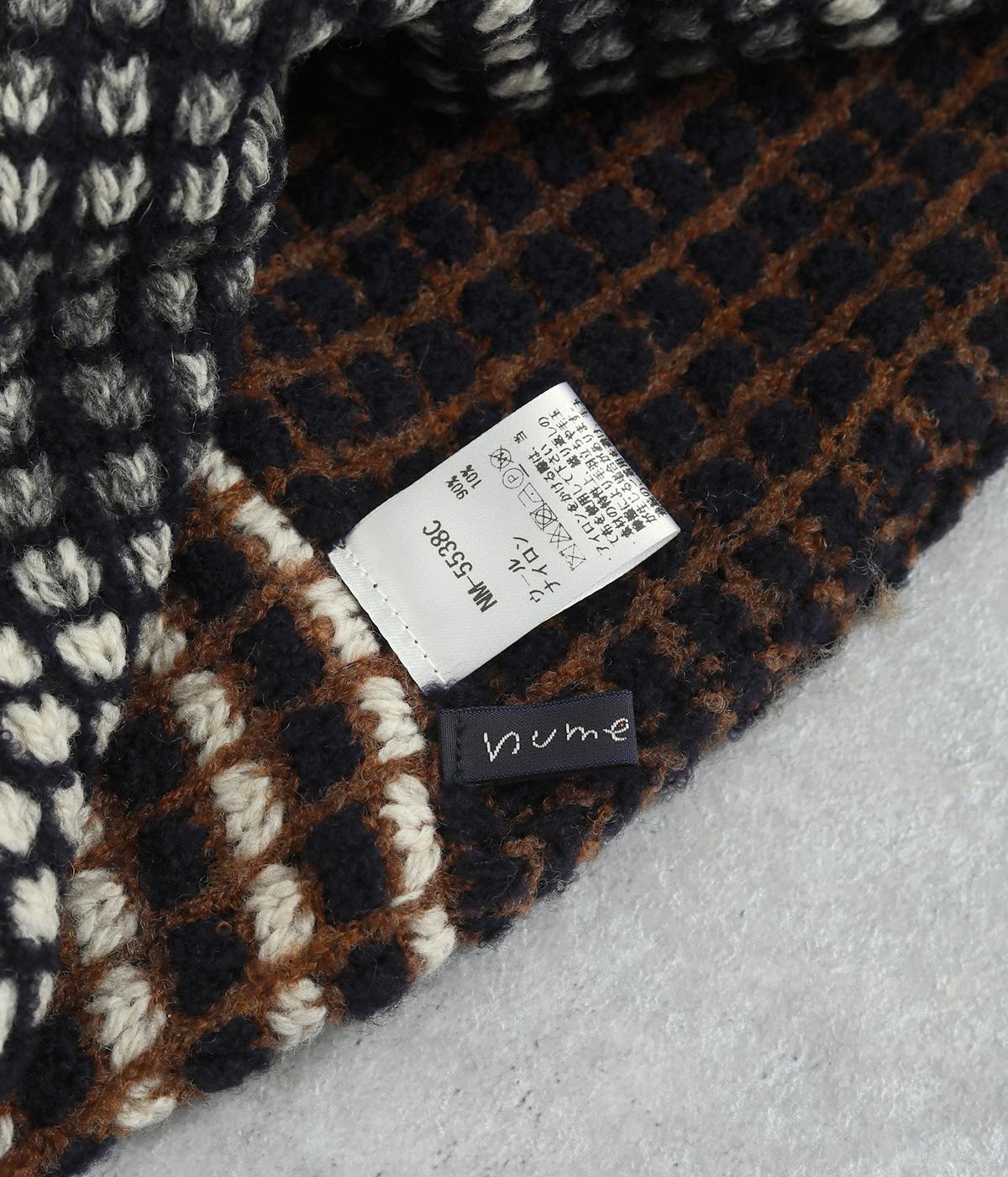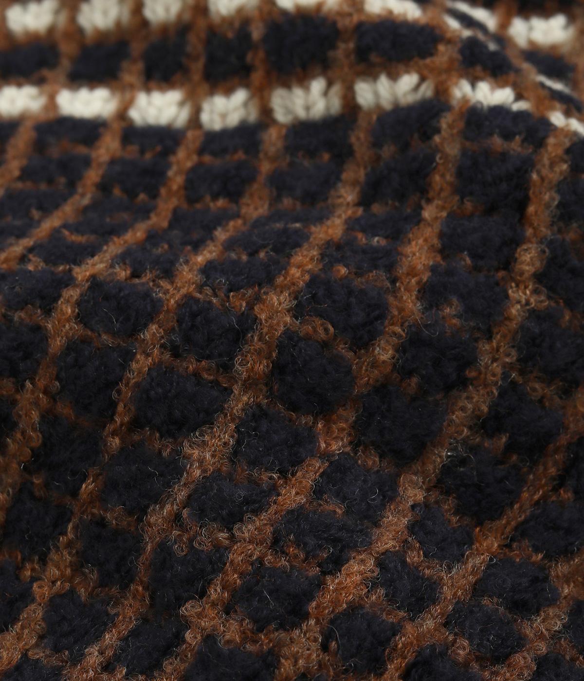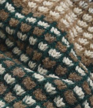 ウールとナイロンをミックスさせて、あたたかみをしっかり出しながらも適度に軽く仕上げました。ぽこぽことした表面感と配色にこだわったチェック柄が印象的。