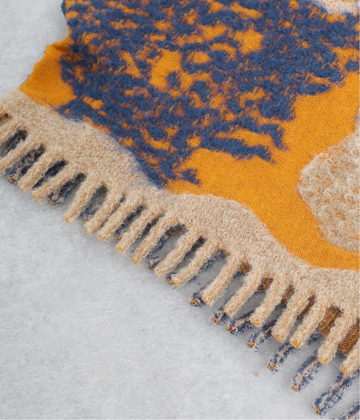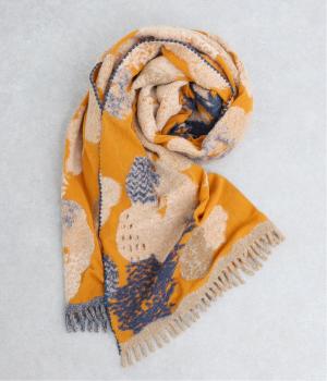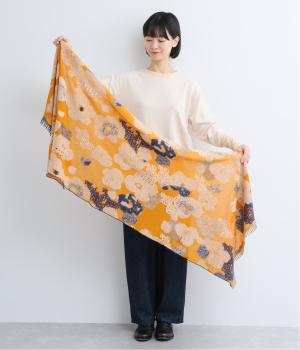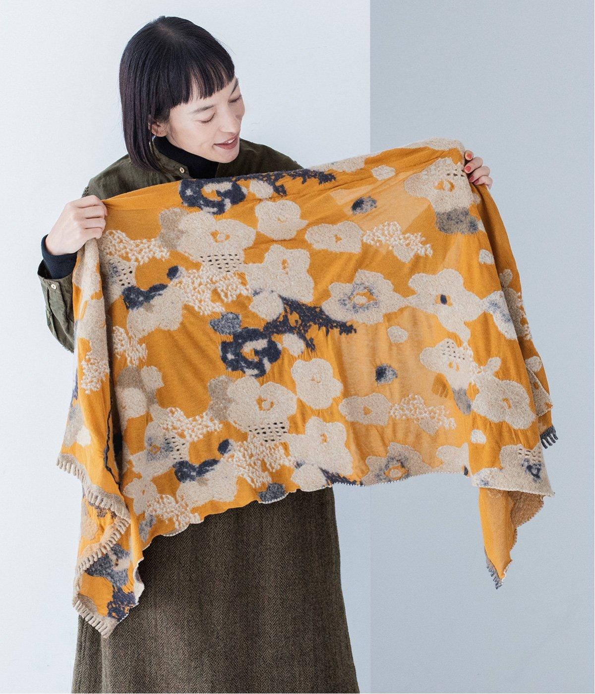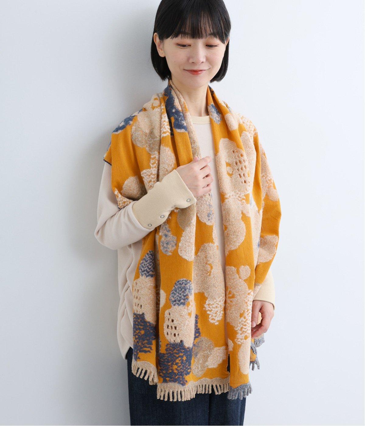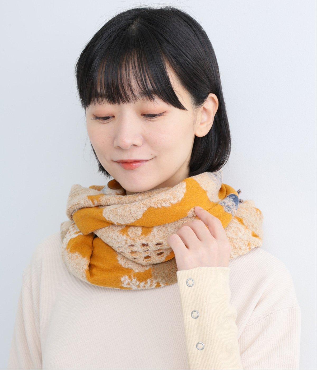 大判サイズながらも首元にすっきりと巻くことができる長方形ストール。肩にかけたときに前でボタンで留めできる仕様なので防寒対策しながらコーディネートを楽しめます。