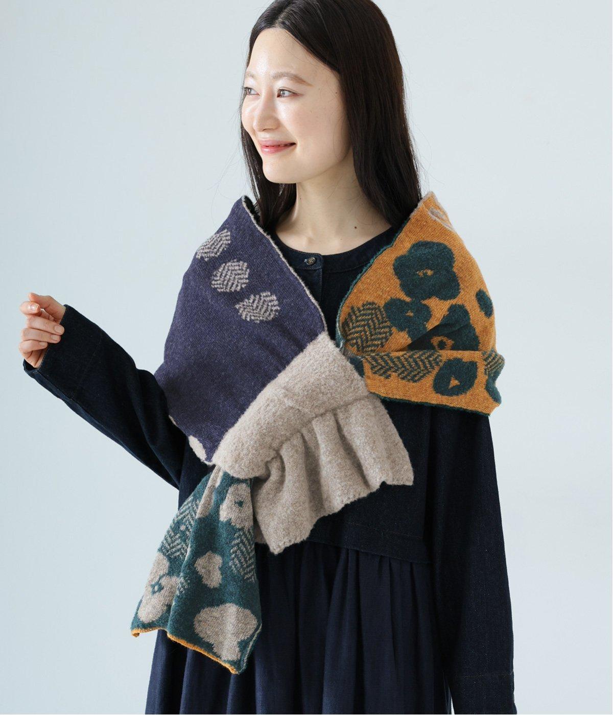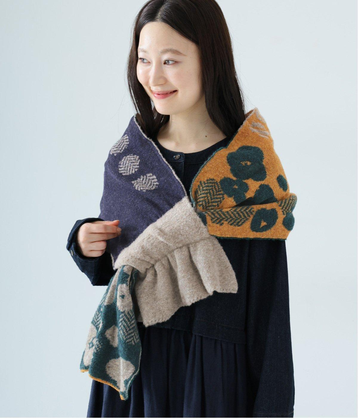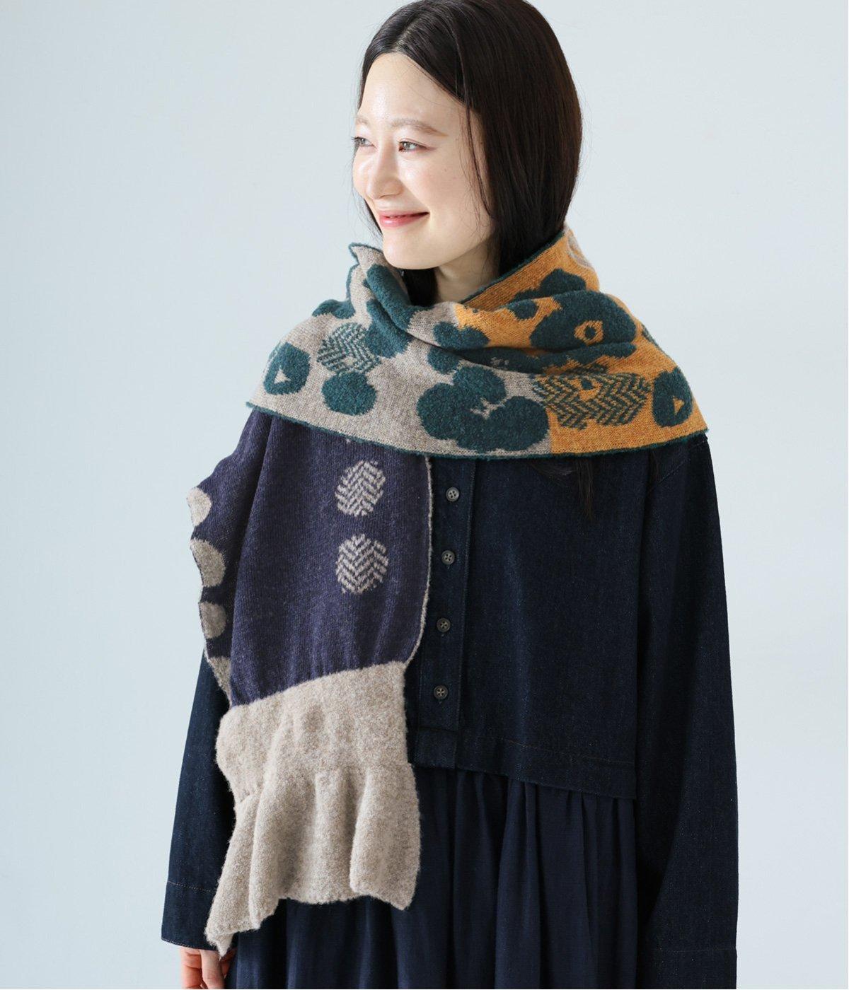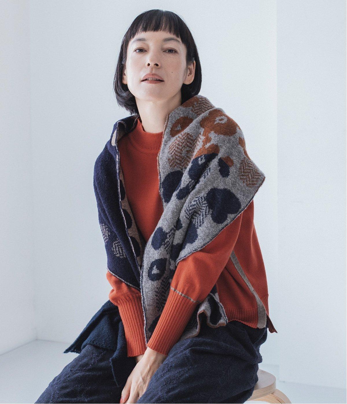 巻き方で柄の表情が変わり、アレンジも豊富です。多彩な色合いながら落ち着いたトーンで、どんな着こなしにも自然になじみ、巻くだけで華やかなアクセントをプラス。