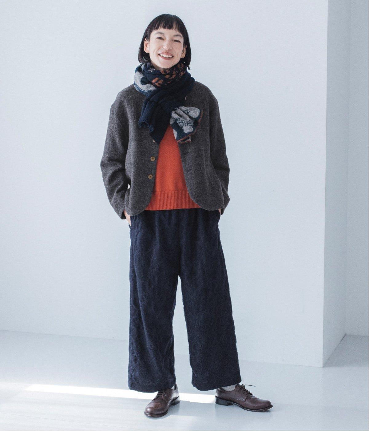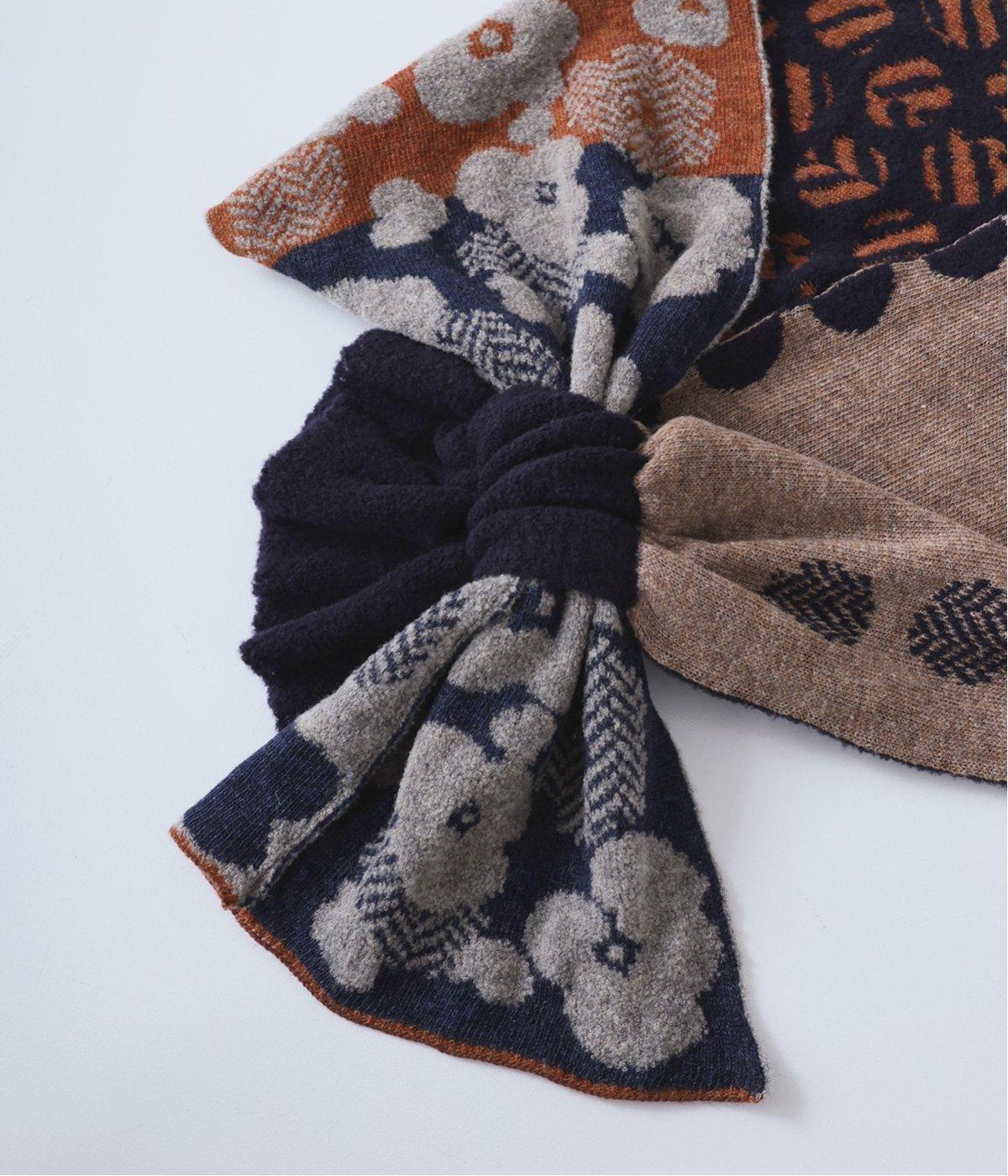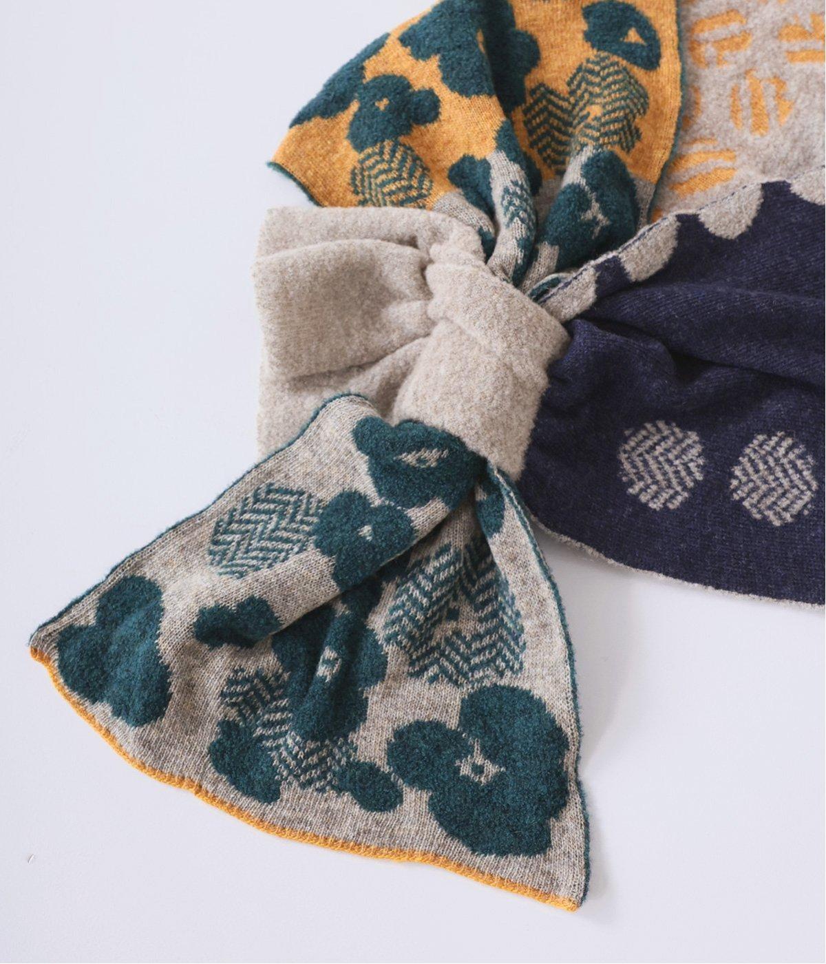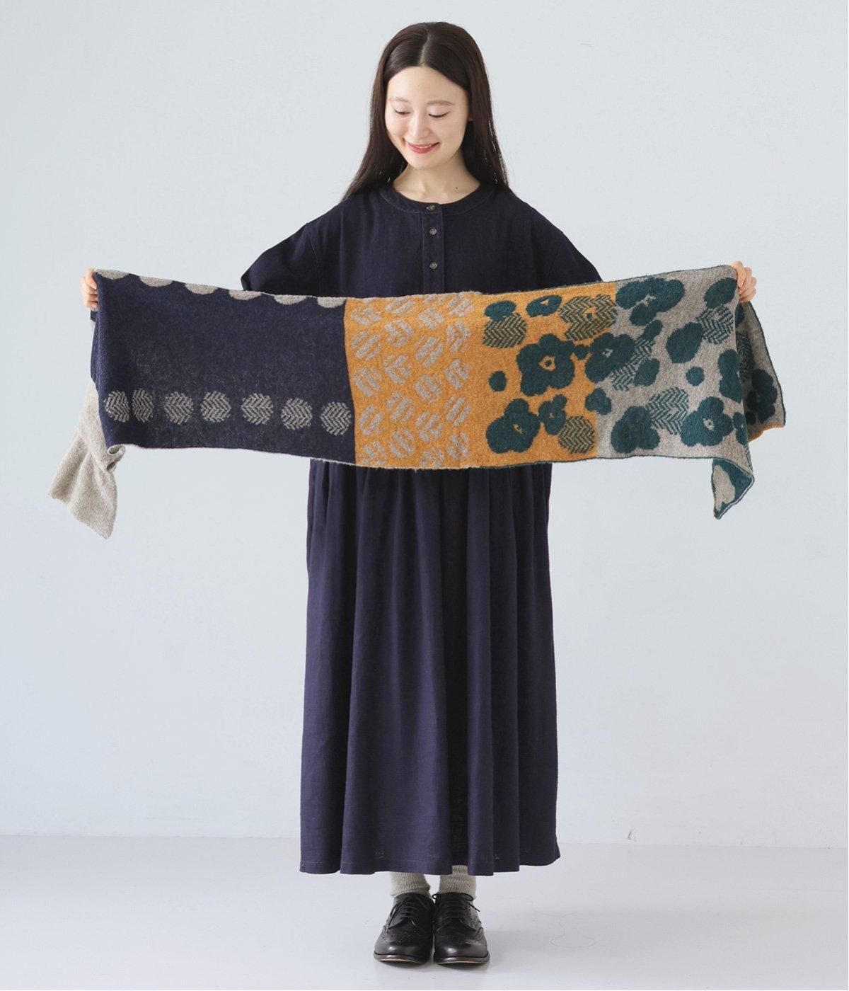 巻き方で柄の表情が変わり、アレンジも豊富です。多彩な色合いながら落ち着いたトーンで、どんな着こなしにも自然になじみ、巻くだけで華やかなアクセントをプラス。