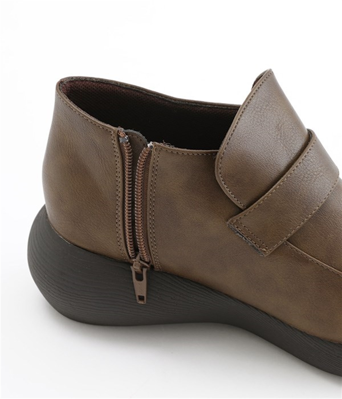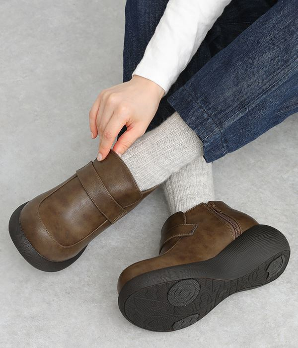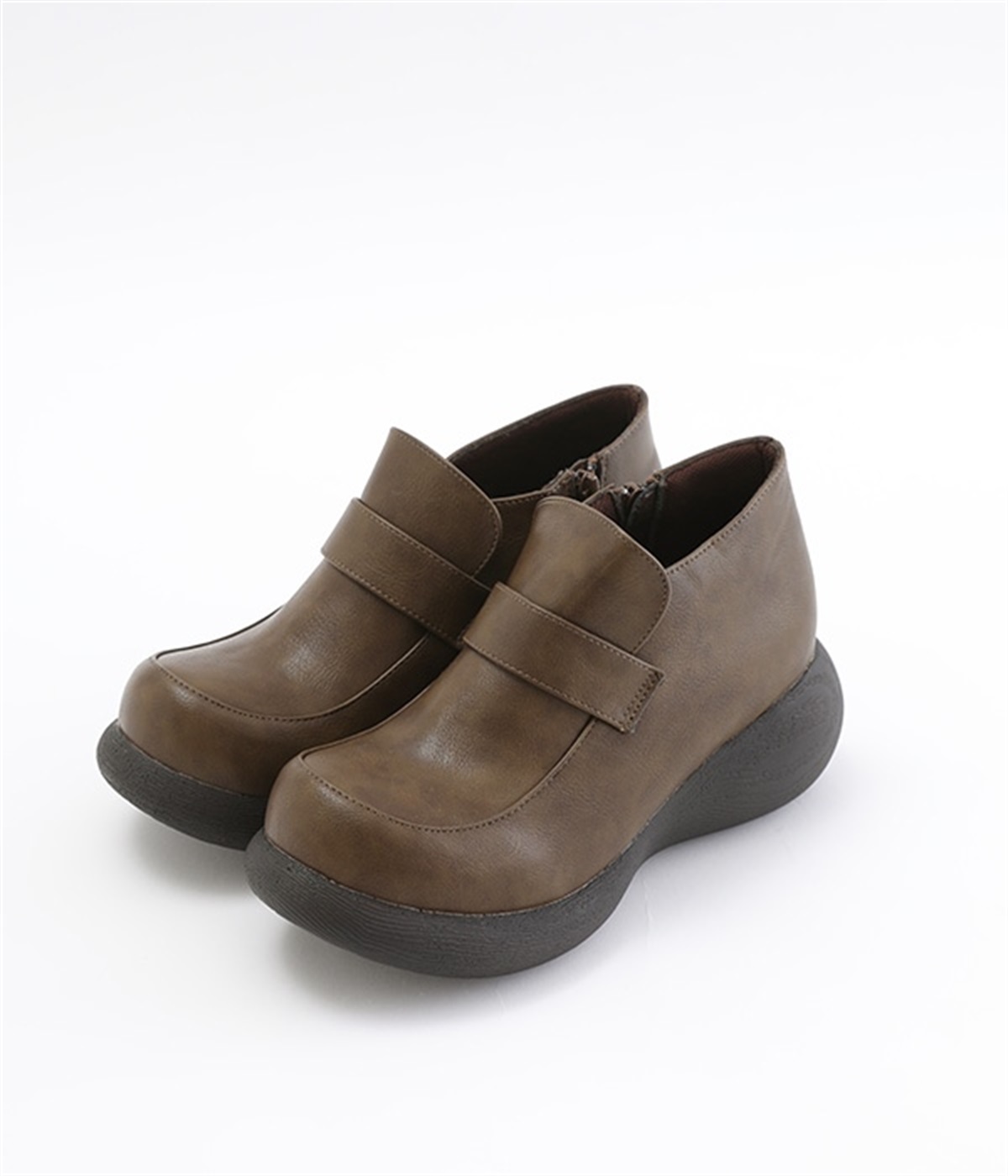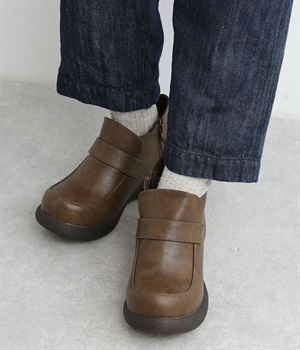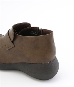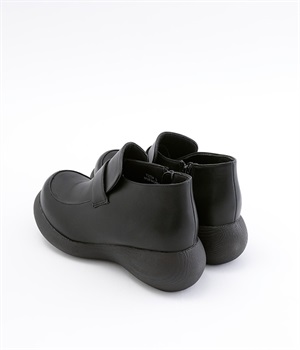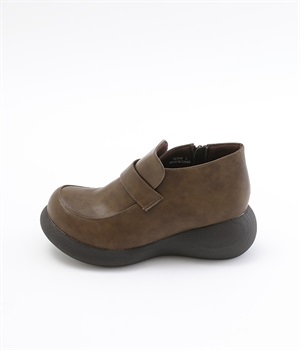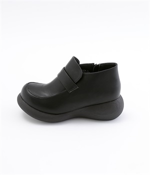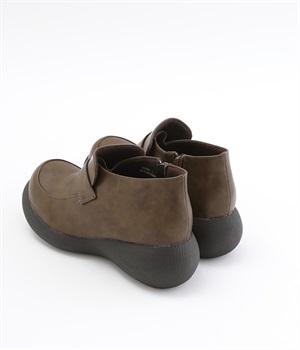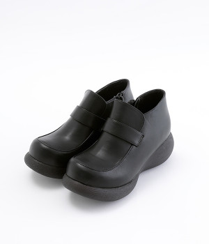ぽってりとした丸みのあるシルエットが足元を印象づけるローファー。日本人の足になじむように、木型は日本で製作したこだわりの一足です。見た目よりも軽いウレタン製のソールで足運びは軽やか。アウトソールにはすべり止めラバーが備わり歩行も安心です。やや高さのあるブーティタイプですが、サイドファスナーが脱ぎはきをアシストしてくれます。