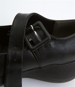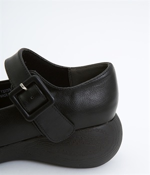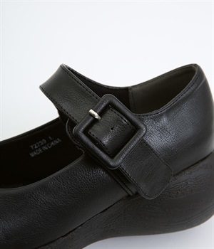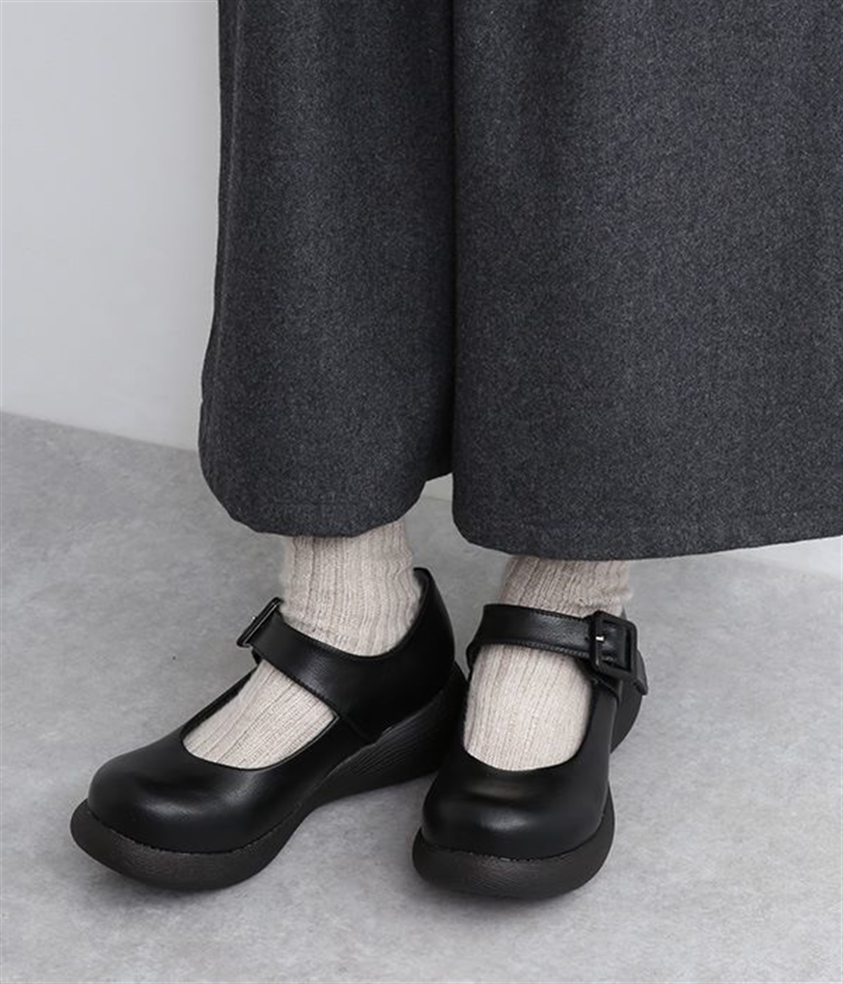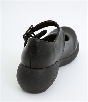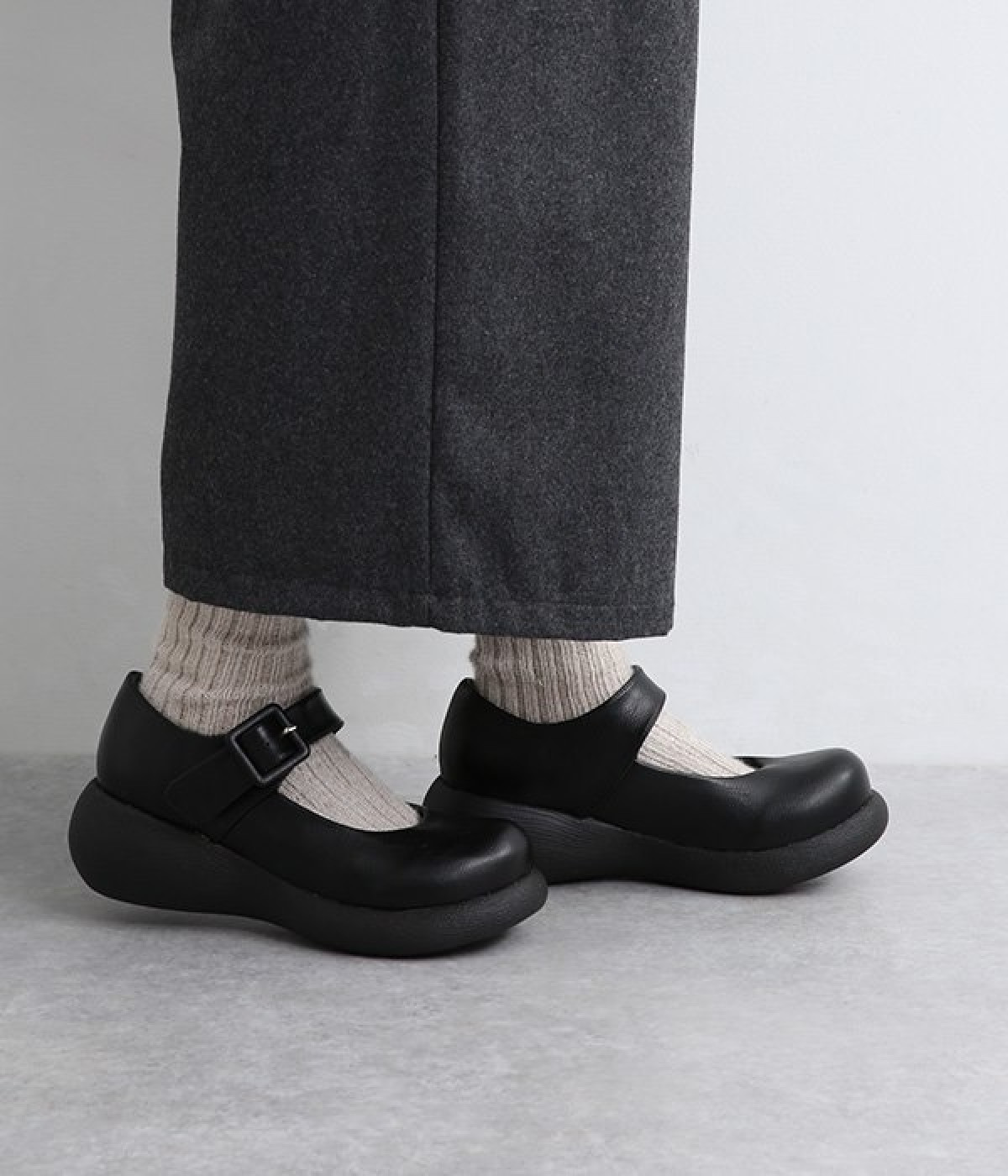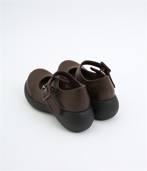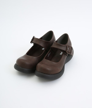 木目調でコロンとかわいい厚底が特徴的なストラップシューズです。角のないかかとと上がったつま先により、すいすいと前に歩けるオリジナルのソールを採用しています。日本人の足に合わせた木型&弾力のあるウレタンのインソールも快適なはき心地を後押し。足首付近できちんとフィットするベルト付きで、疲れにくく安定感があるのもポイントです。