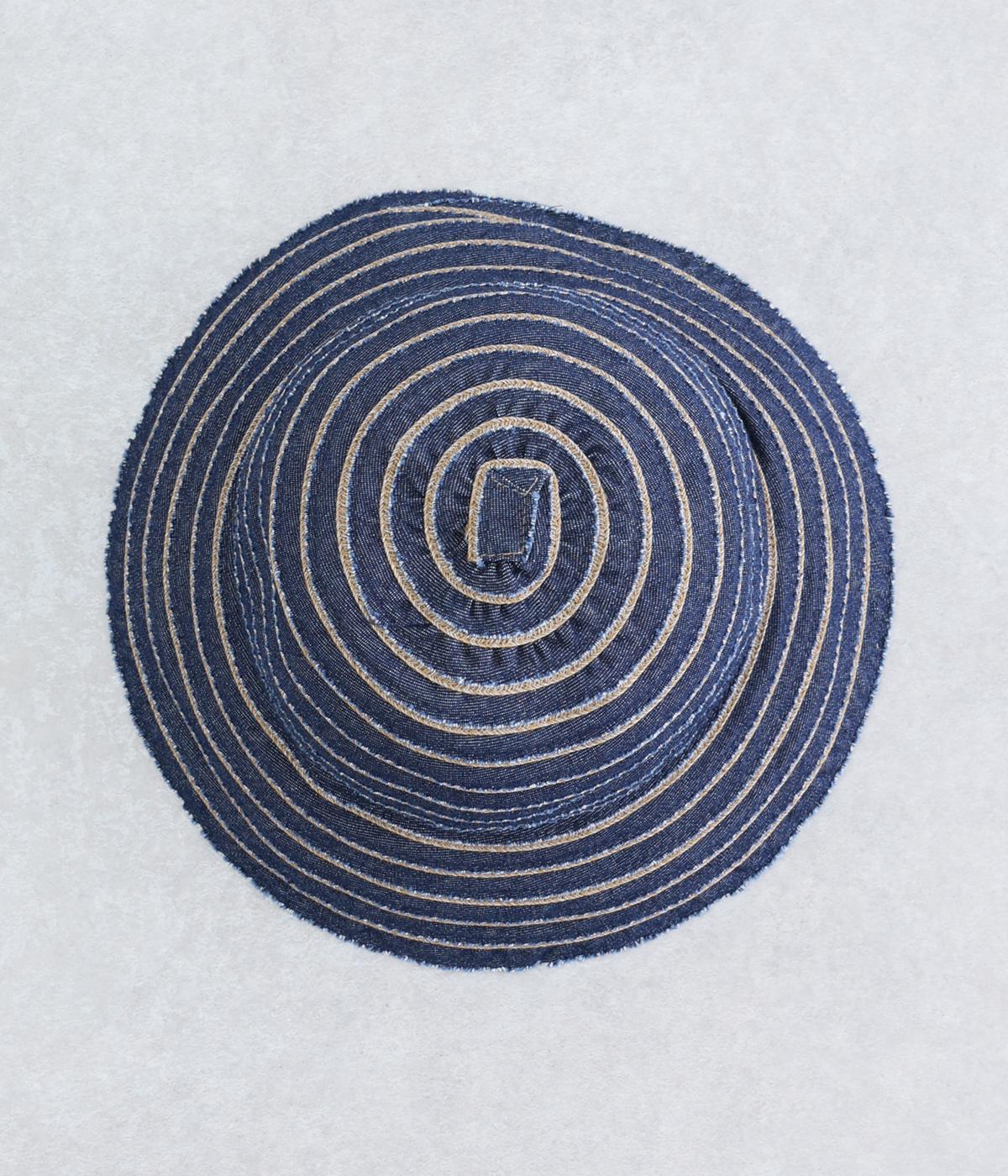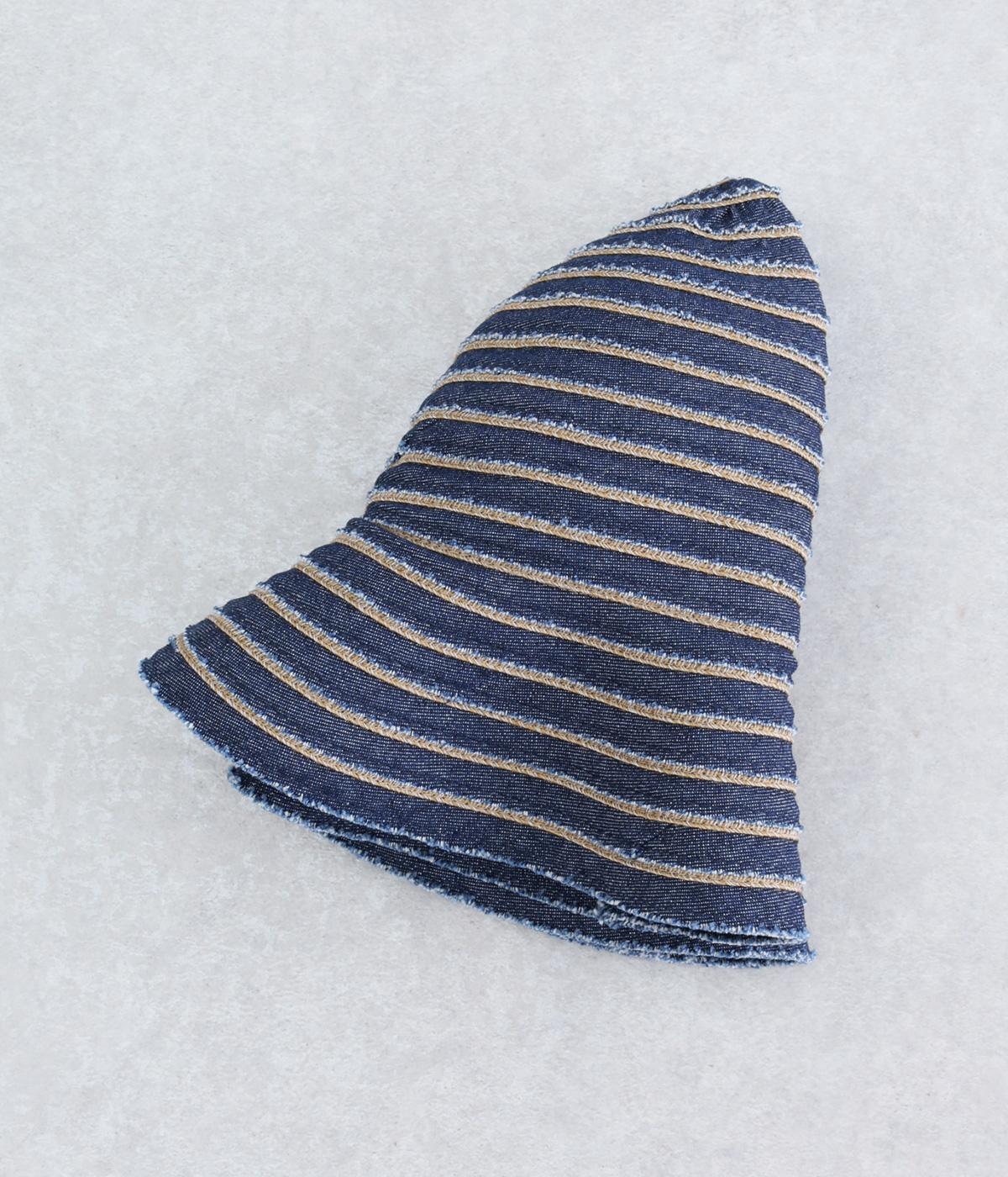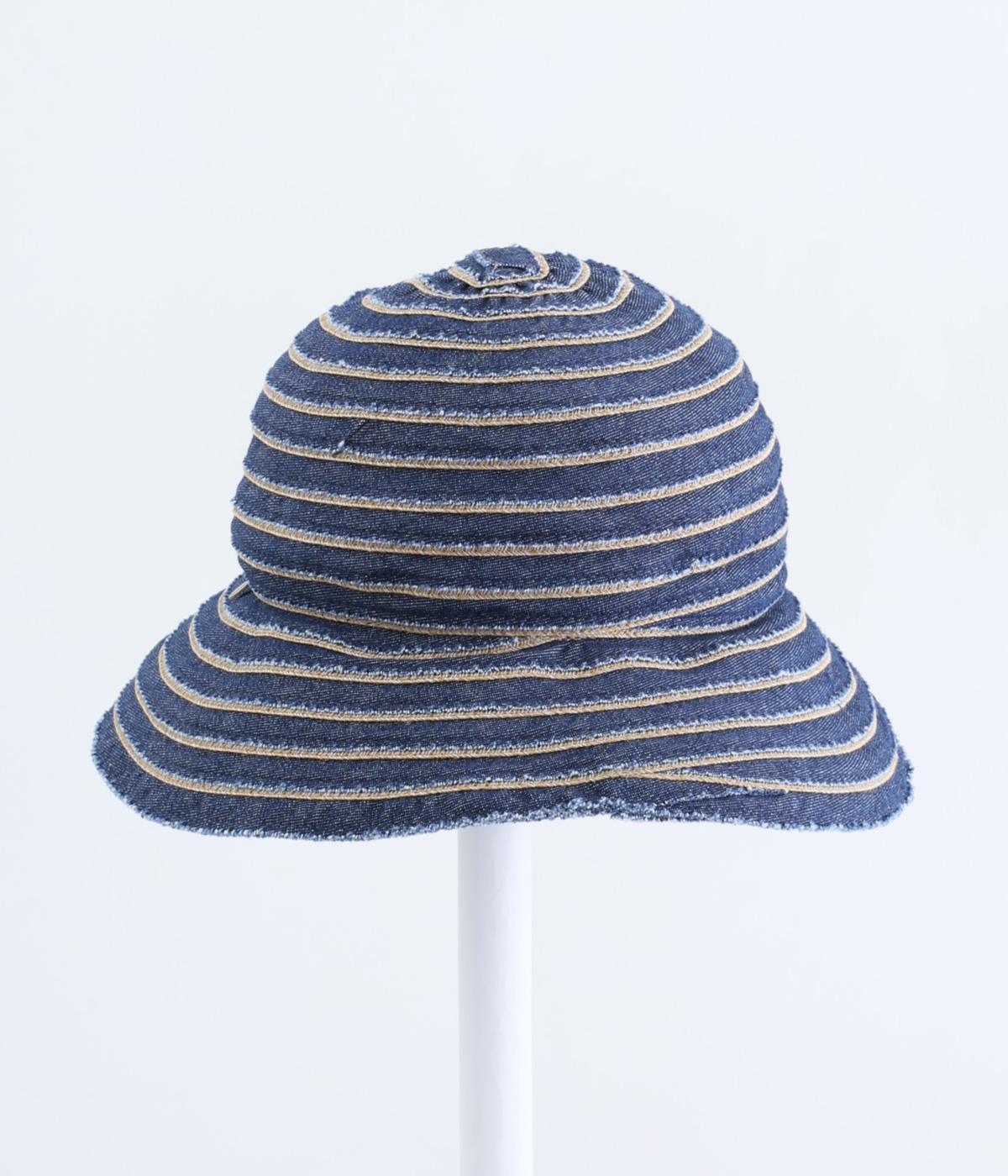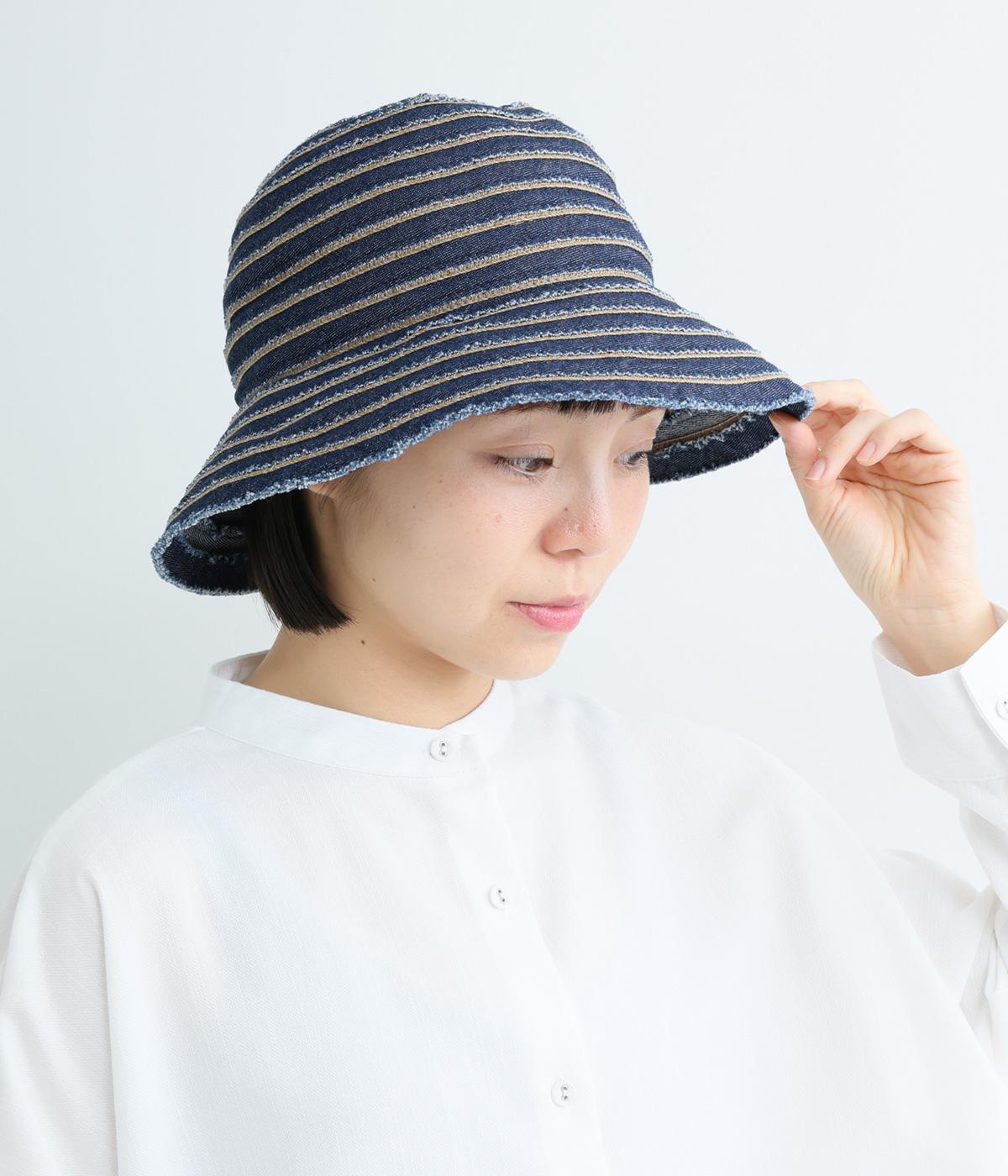 丸みのあるシルエットに、ブレードのボーダー柄がリズミカルな表情を添えるデザインです。端を切りっぱなしにしたラフな仕上がりが、ほどよい抜け感を演出。やや短めのツバはかぶりやすく、デイリー使いに最適です。内側の面ファスナーでサイズ調節ができるのもうれしいポイント。