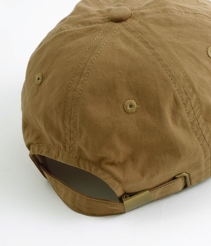 スタイリングに取り入れやすい、ほどよいボーイッシュさが魅力のキャップ。クラウン部分はとてもやわらかな素材なので、折りたたんでの持ち歩きにも便利です。頭部のフォルムにフィットする、ベーシックな六枚接ぎも◎。後ろにはアジャスターをセットしているため、頭のサイズに合わせた微調整が可能です。大人の装いにもなじみやすいよう、フロントにあしらったステッチの主張はおさえめにしています。