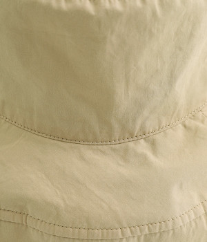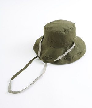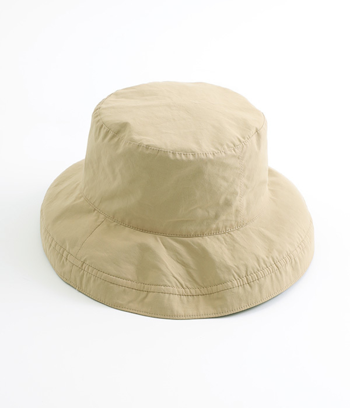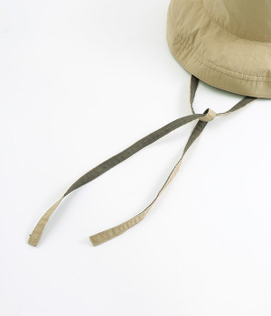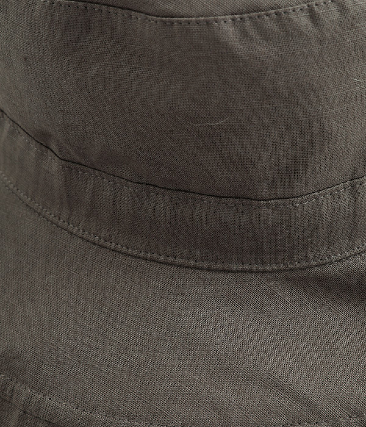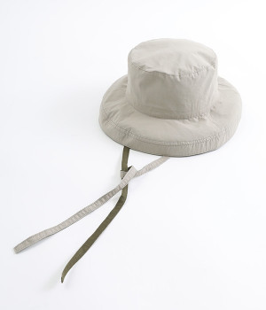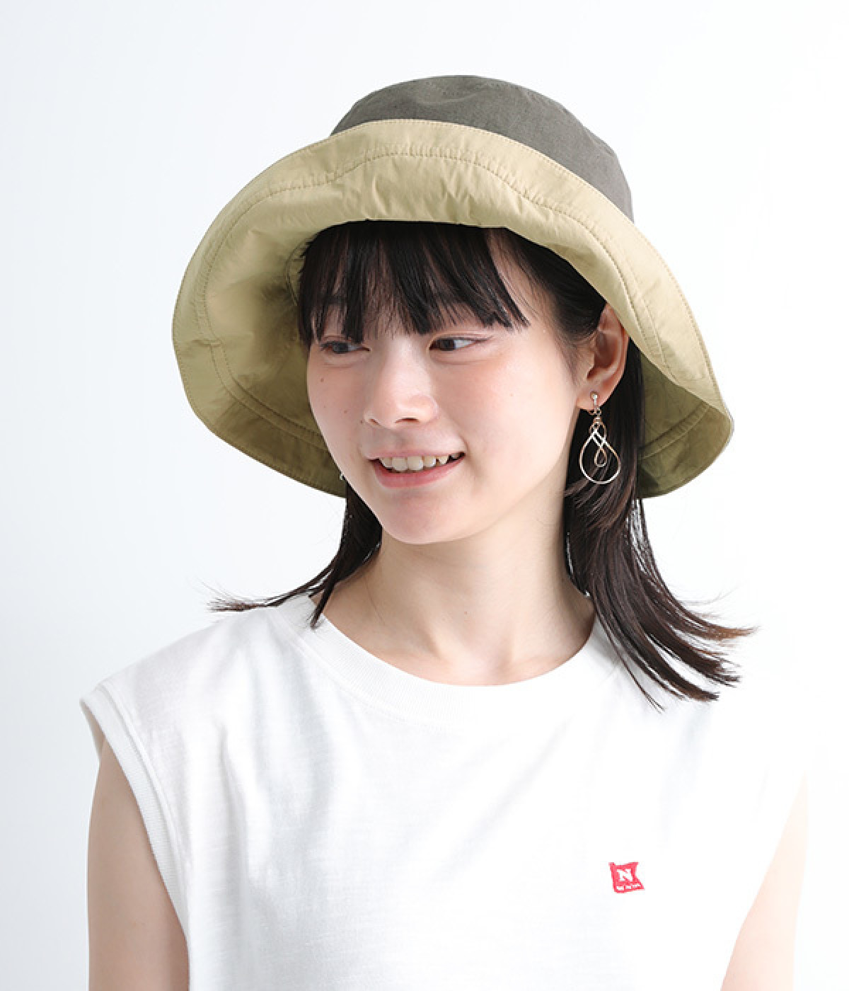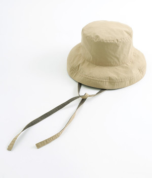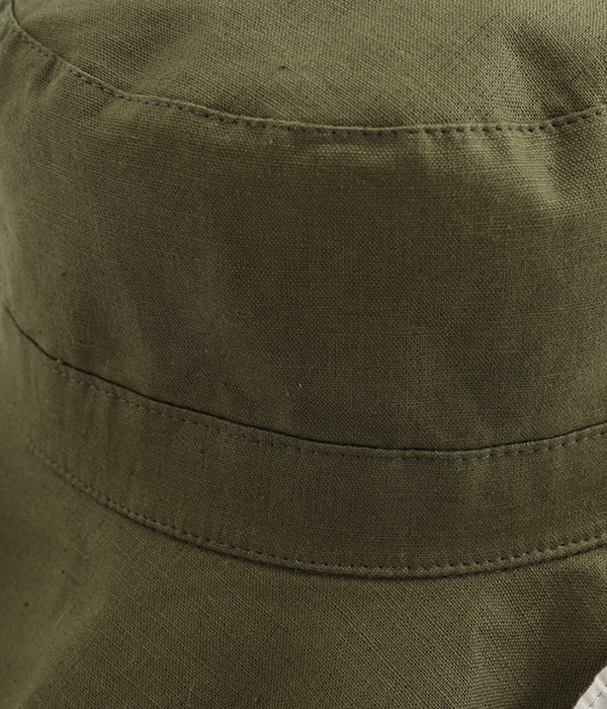 通気性の良いコットン&リネンを使用したリバーシブルタイプのハット。風の強い日や自転車に乗るときは首元でヒモを結んだり、ヒモを後ろで結んでかわいらしいワンポイントにしたりと裏表で使い分けが可能です。幅広のつばは折り返しもでき、日よけしたいときや視界を確保したいときは形を変えることも◎。普段の装いに合わせやすいよう、両面とも落ち着いたカラーをセレクトしています。