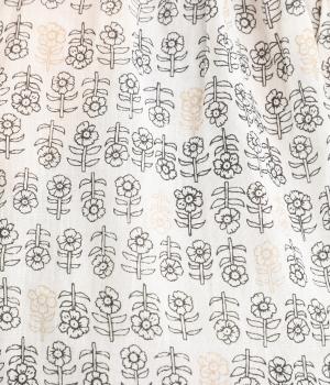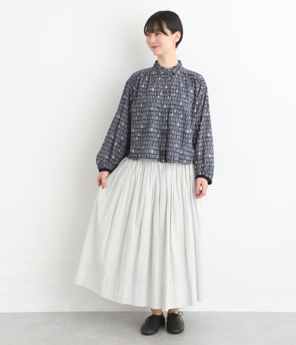 薄手ながらほどよいコシを備えたコットンボイル生地を使用しています。手しごとならではの温かみのある風合いが魅力で、さらりと肌離れよく心地よい素材感です。