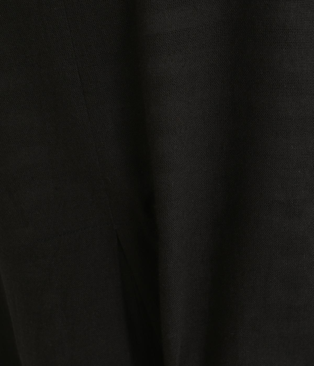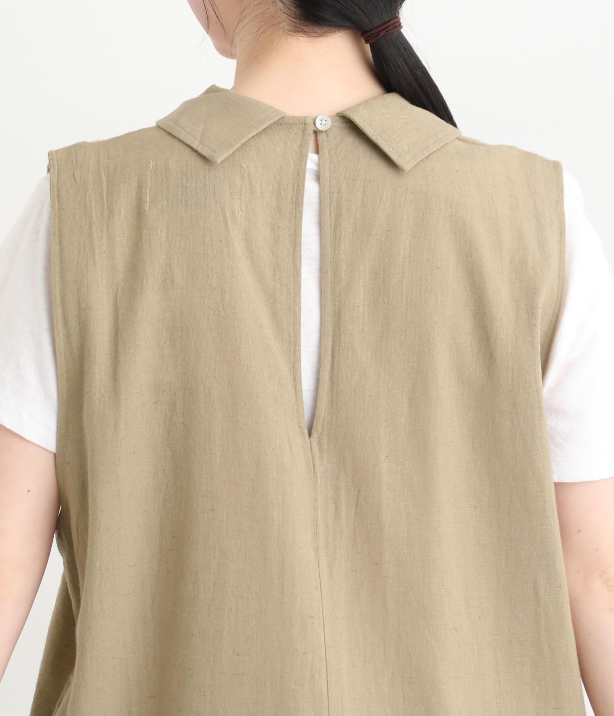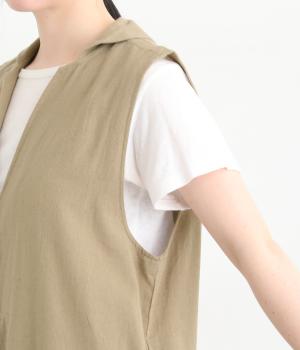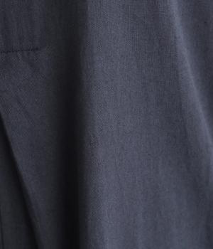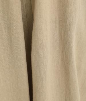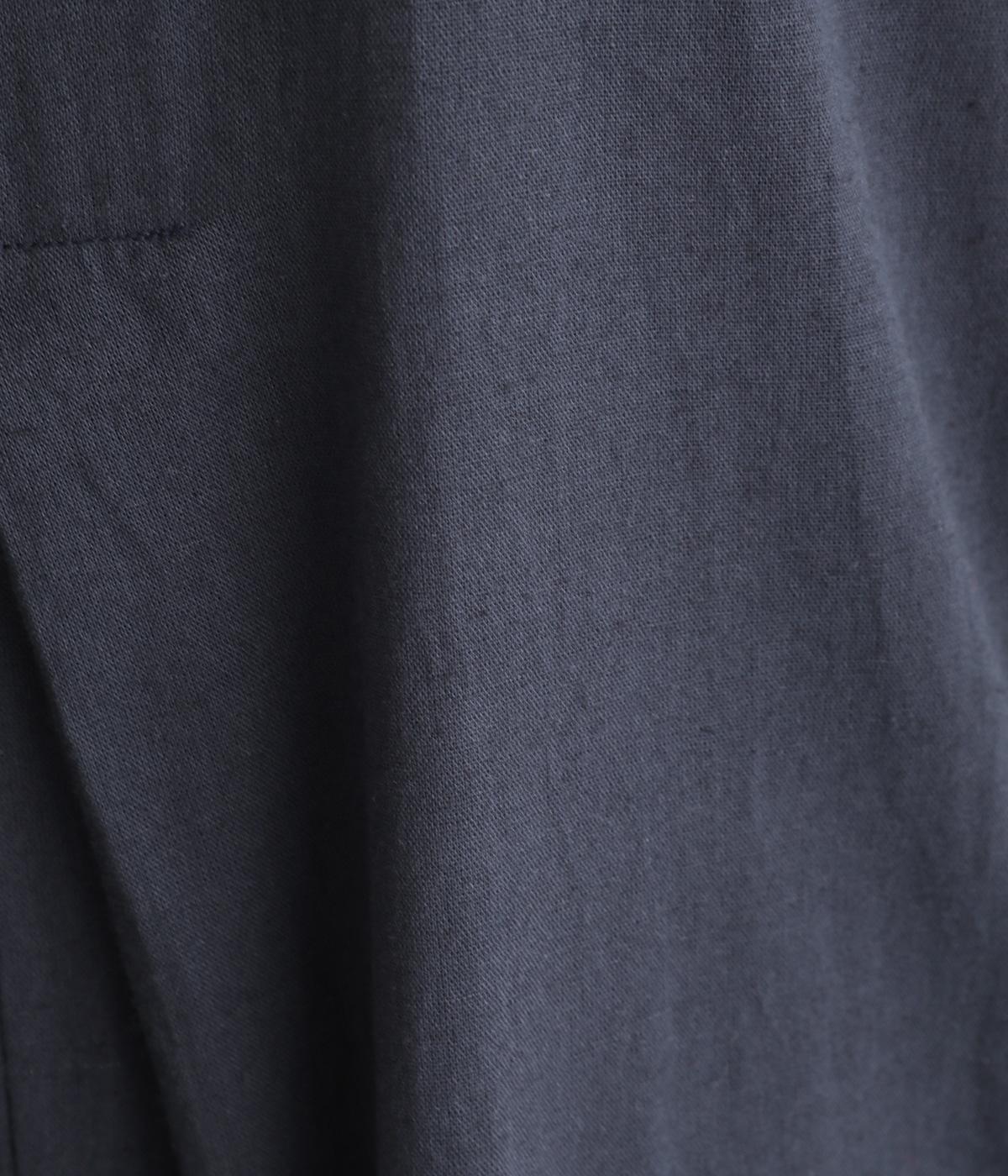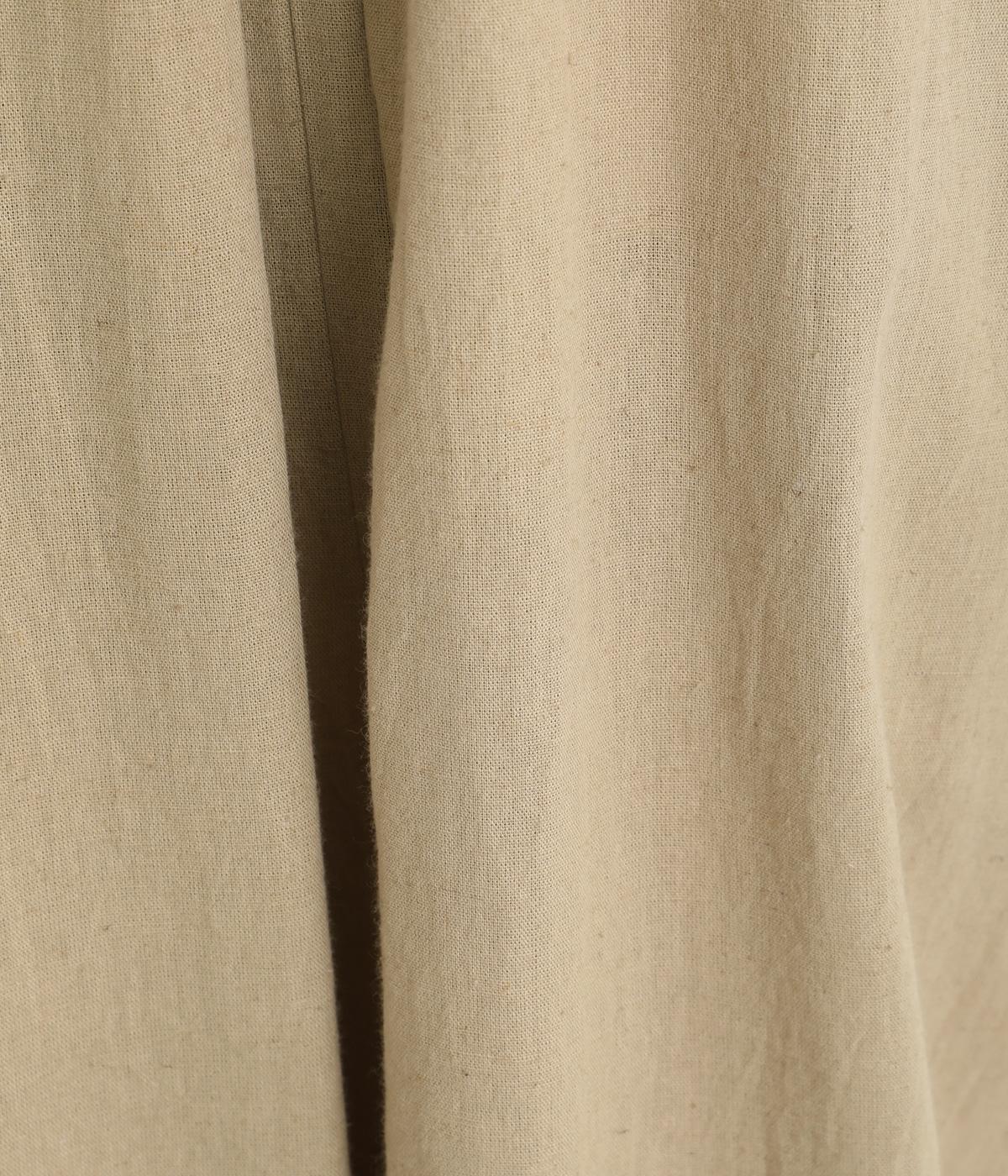 やや薄手のコットンリネン生地です。さらりとしたドライタッチで肌離れがよく、心地よい素材感です。ネップのあるナチュラルな表情が魅力で、着るほどに味わいを増す風合いが楽しめます。