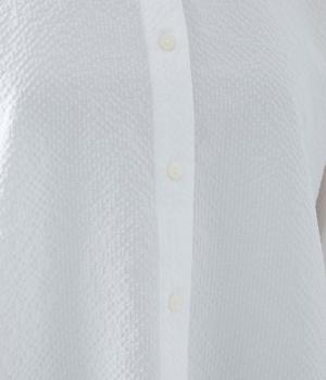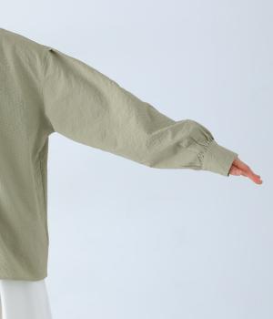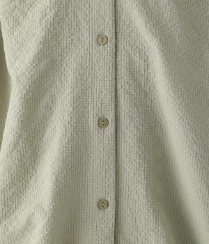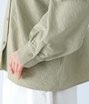 軽くてやわらかなポリエステル素材を使用。表面の立体的な凹凸が「ポコポコ」とした手ざわりを生み出しています。シャリ感のあるさらりとした肌ざわりで、暑い季節でも涼やかに着用できます。