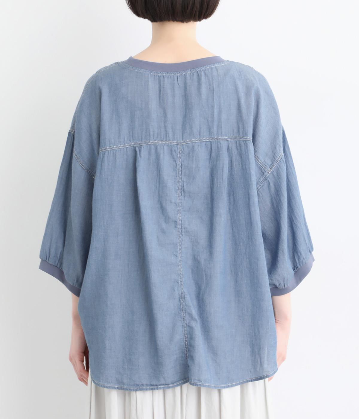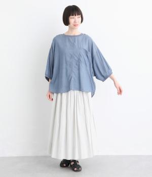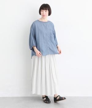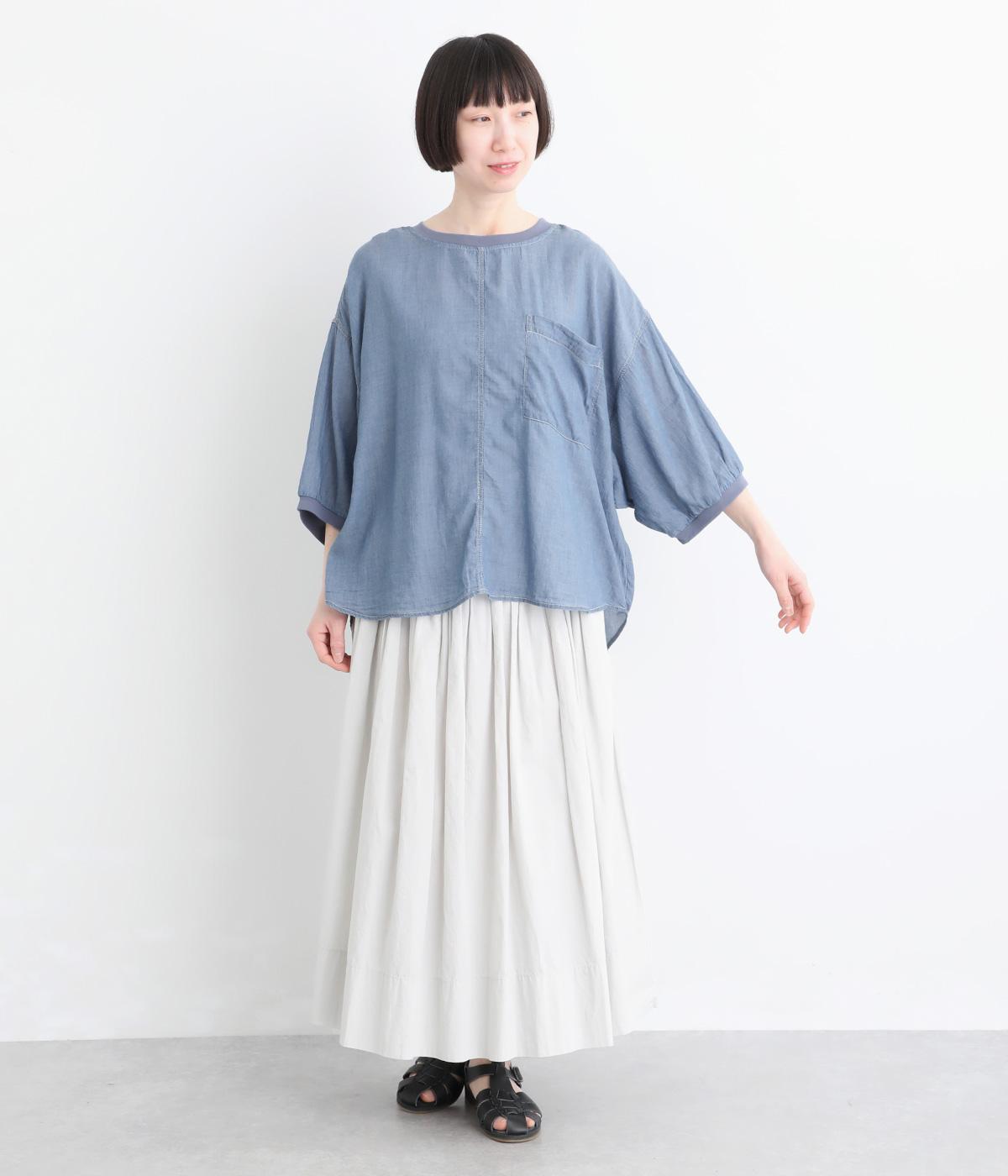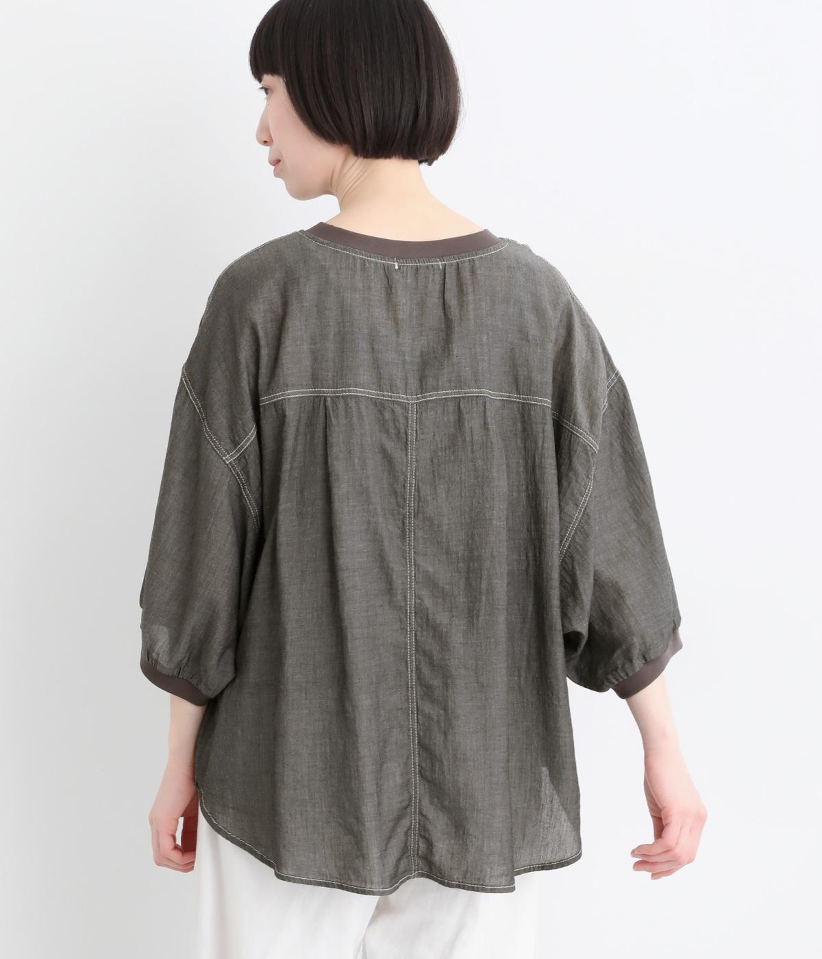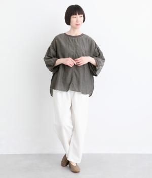 丸みのあるドルマンシルエットが、やさしい印象をつくるプルオーバーです。リラックス感がありながら、前後差のある裾で軽やかなバランスに。襟ぐりと袖口にあしらったリブが、さりげないアクセントを添えます。生地の透け感をいかしたレイヤードスタイルもたのしめる一枚です。