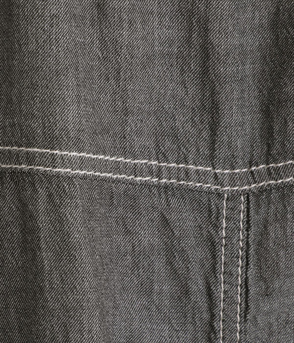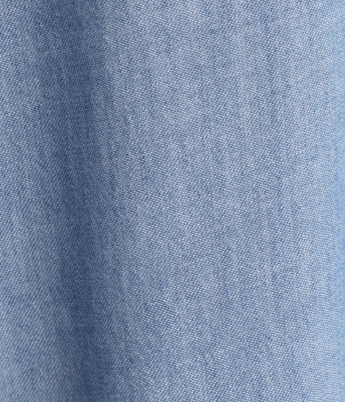 おどろくほど軽やかな、コットン素材のシアーデニム生地です。空気をふくんだようにしなやかで、さらりとした肌ざわりが魅力。通気性にも優れ、汗ばむ季節も快適に着用できます。ケミカルウォッシュ加工による繊細な色落ちが、ヴィンテージライクな奥行き演出。