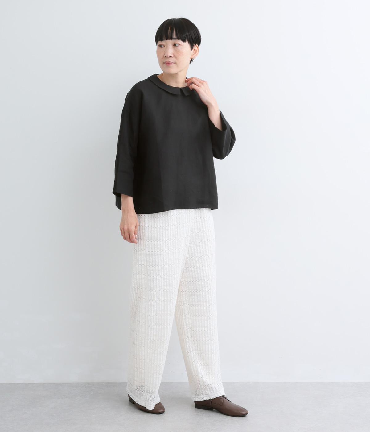 リネンらしいほどよいコシや落ち感を存分にあじわえる一枚。通気性がいいので快適に着られ、肌になじんでいく経年変化もたのしみのひとつ。