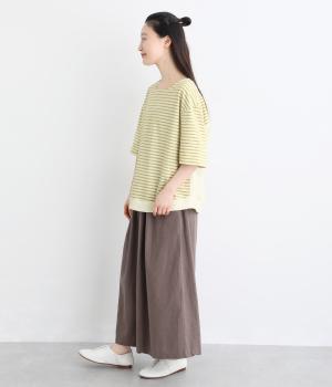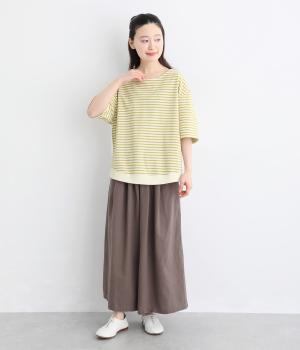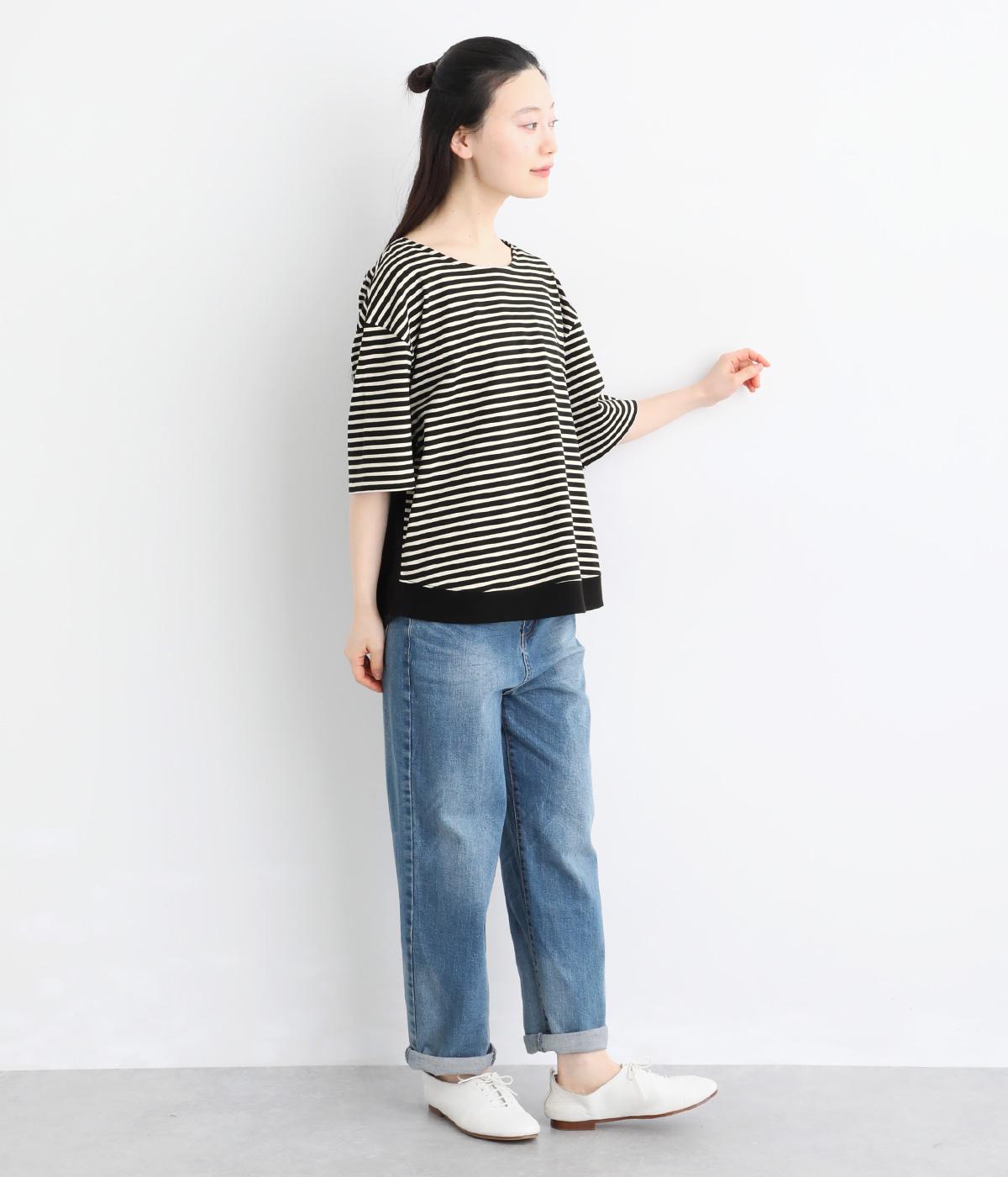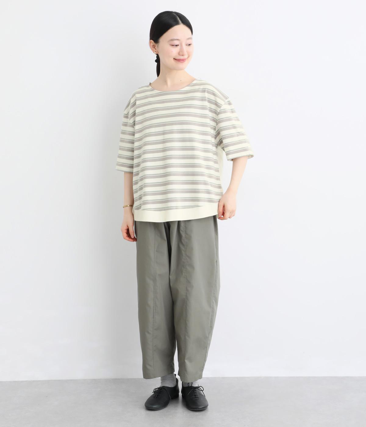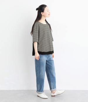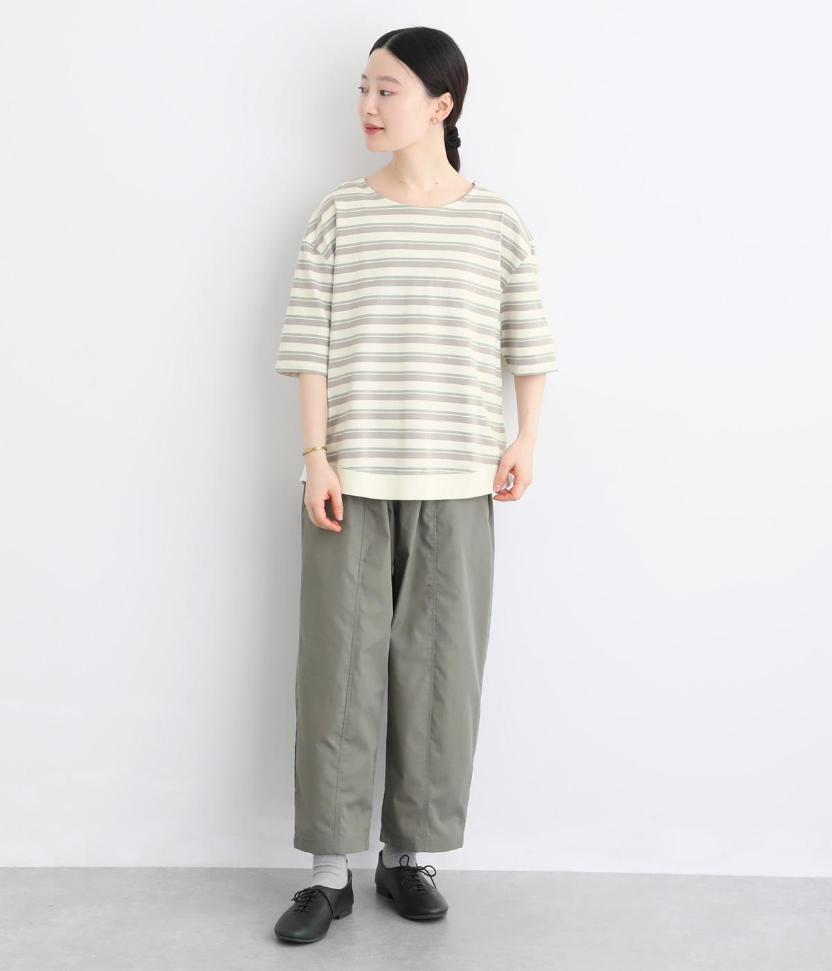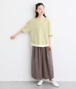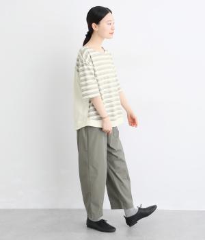 なめらかな肌ざわりが心地よい天竺素材を使用。しなやかになじみ、自然な落ち感をつくります。吸湿性にも優れ、汗ばむ季節もさらりと快適な着心地に。ほどよい厚みで、デイリー使いにも頼れる生地感です。