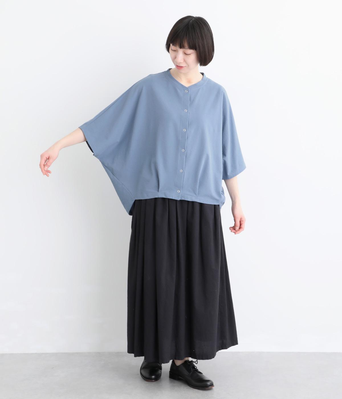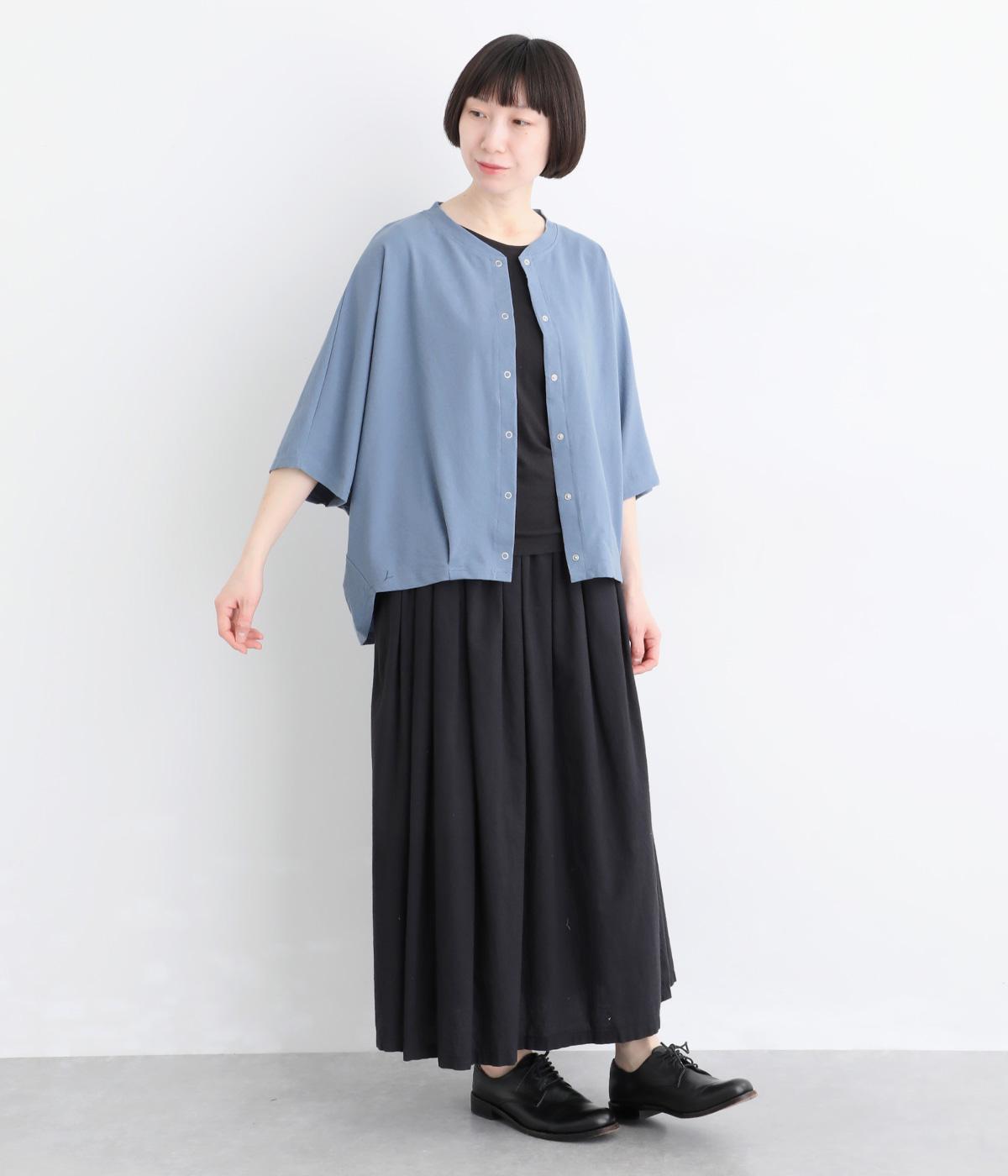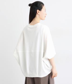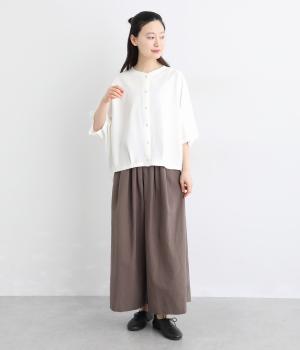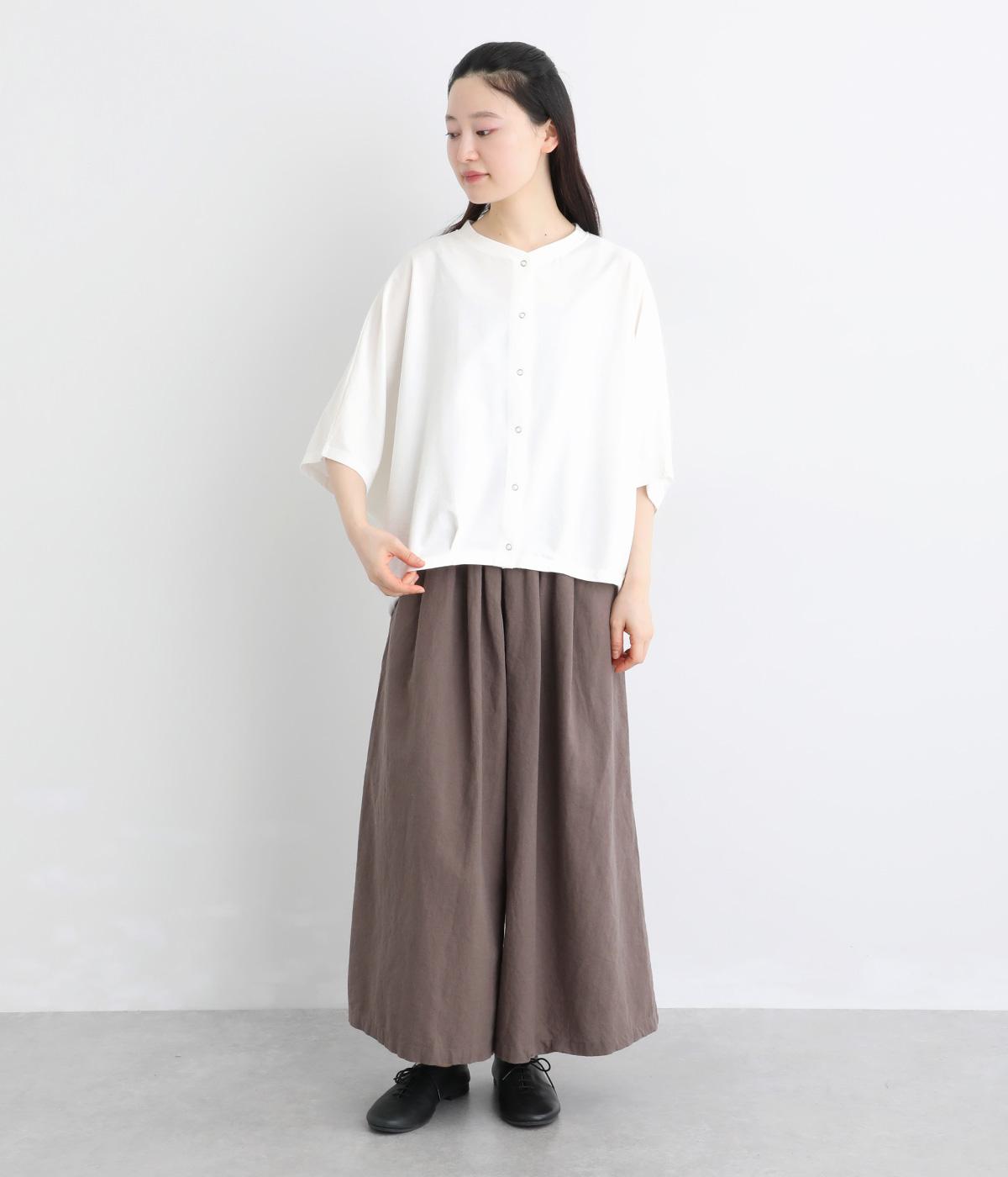 リネンのようなシャリ感と軽やかさを持つカットソー素材です。さらりとドライな肌ざわりで通気性に優れ、汗ばむ季節も快適に過ごせます。ほどよい伸縮性もあり、動きに寄り添う着心地に。シワになりにくい、お手入れのしやすさも魅力です。