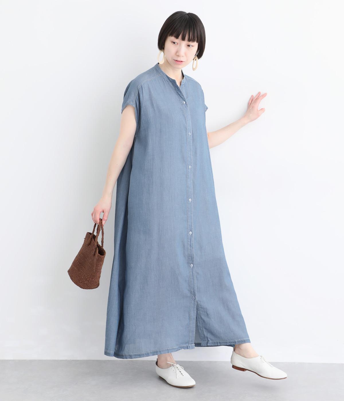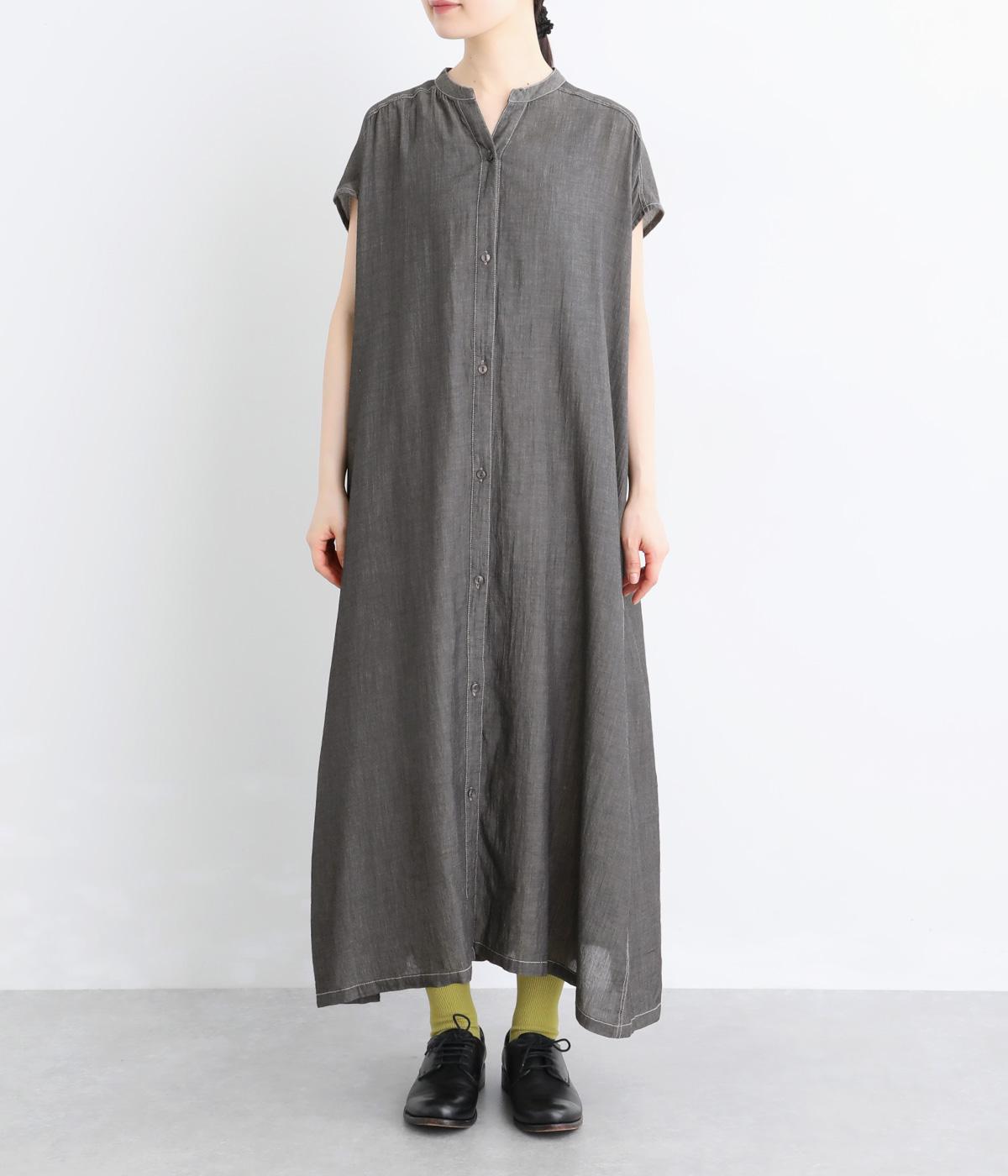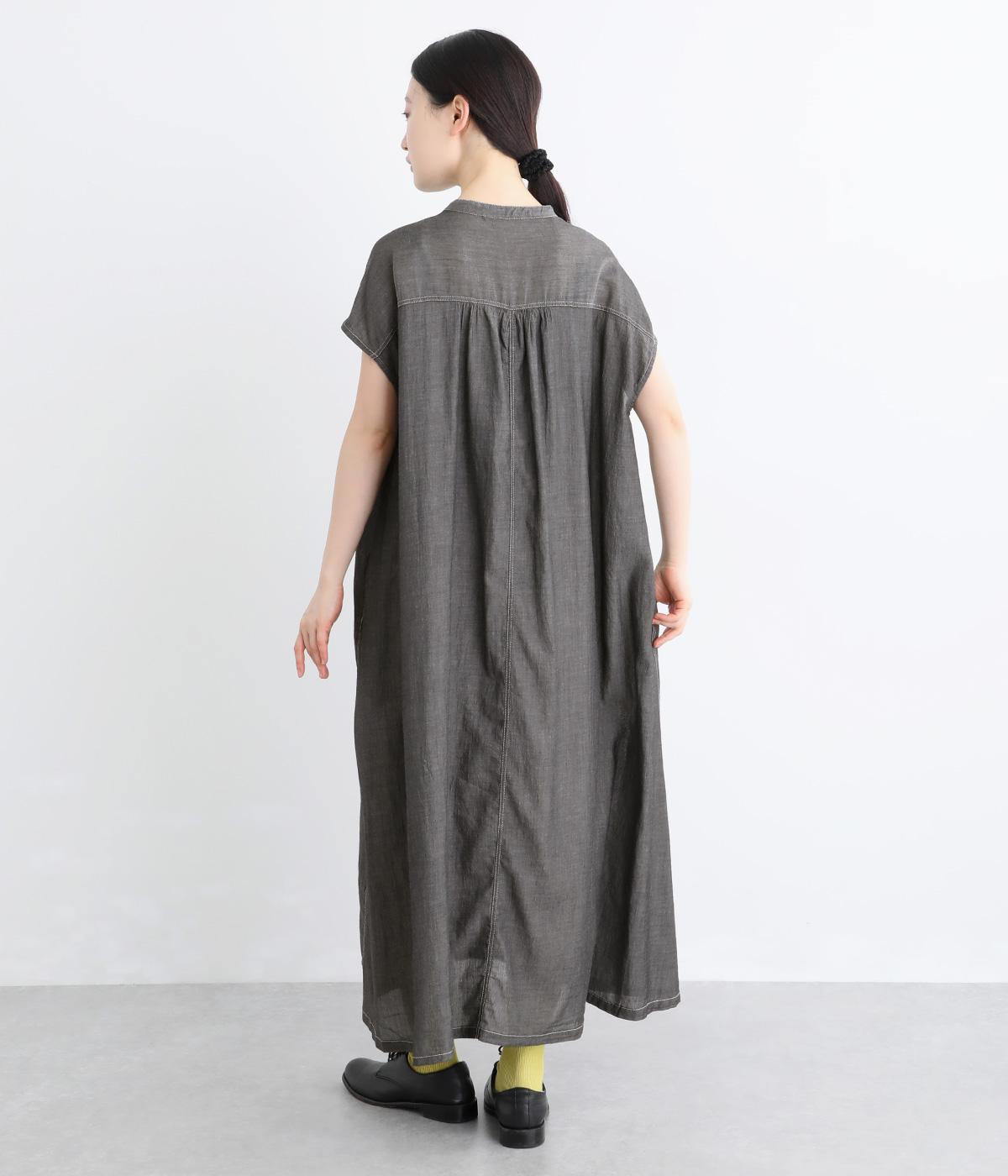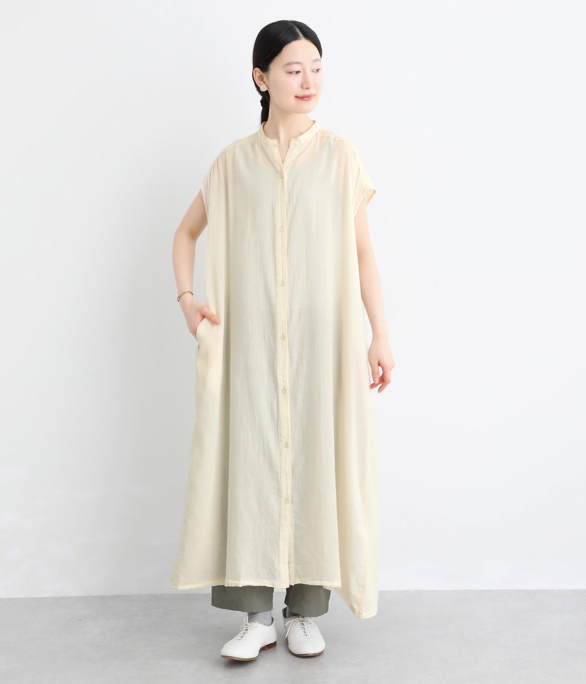 首元に抜け感をつくるスキッパーネックと、女性らしい上品なフレンチスリーブが魅力のワンピースです。身頃にたっぷり施したギャザーと落ち感のある素材が、美しいAラインのドレープシルエットを描きます。一枚でさらりとまとうだけでもサマになり、大人のリラックスムードを品よく引き立てる一着です。