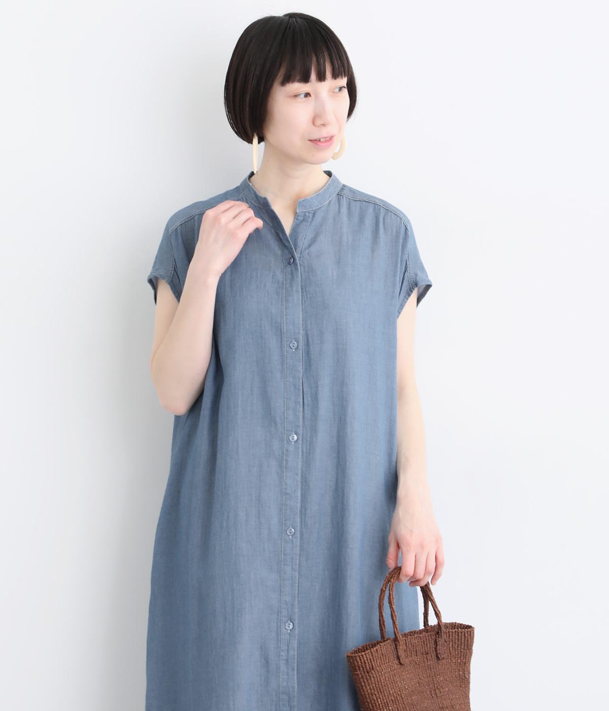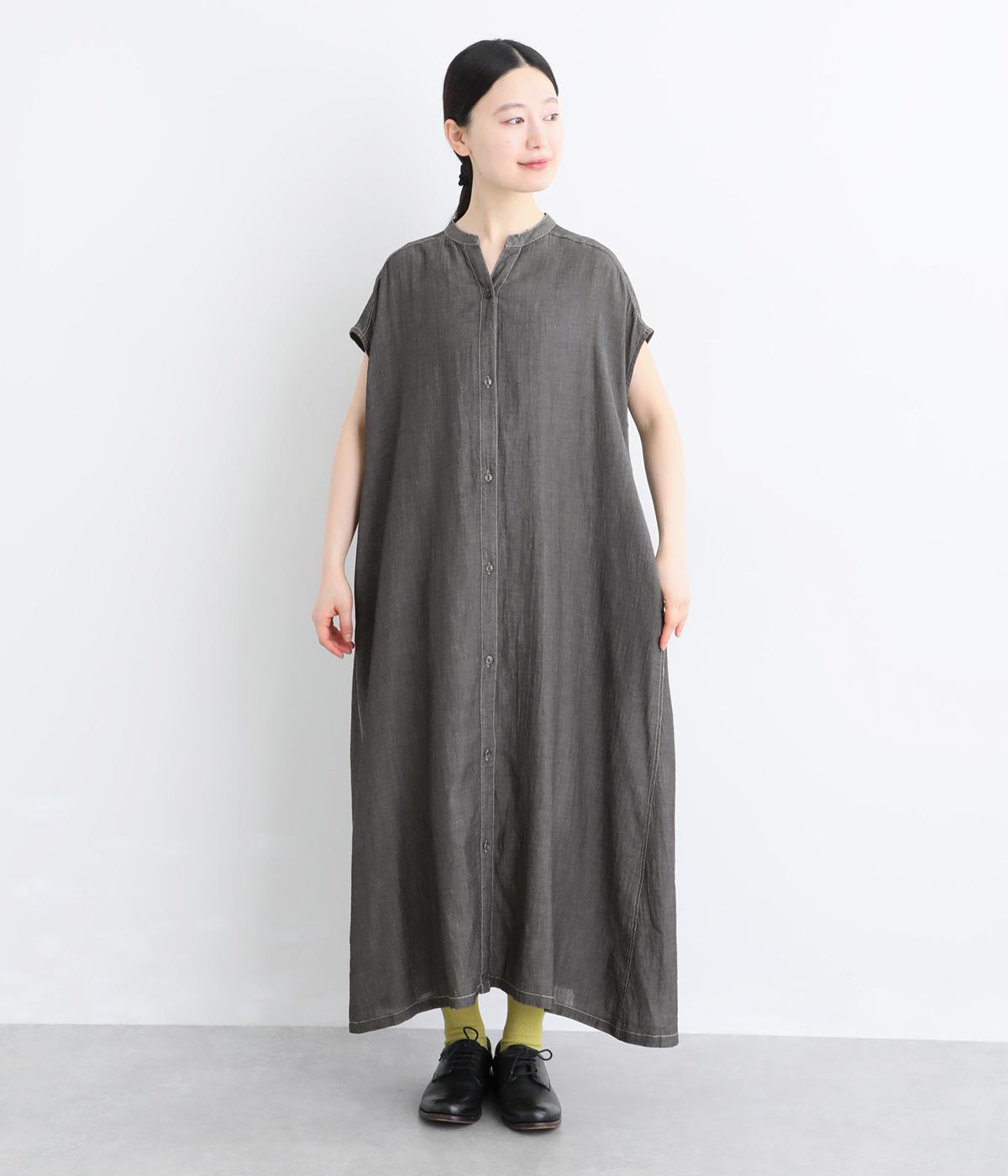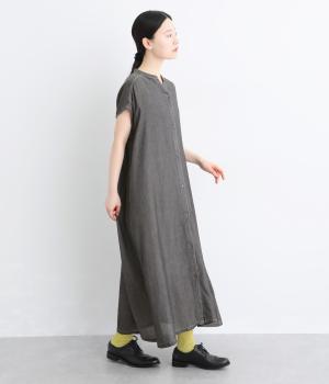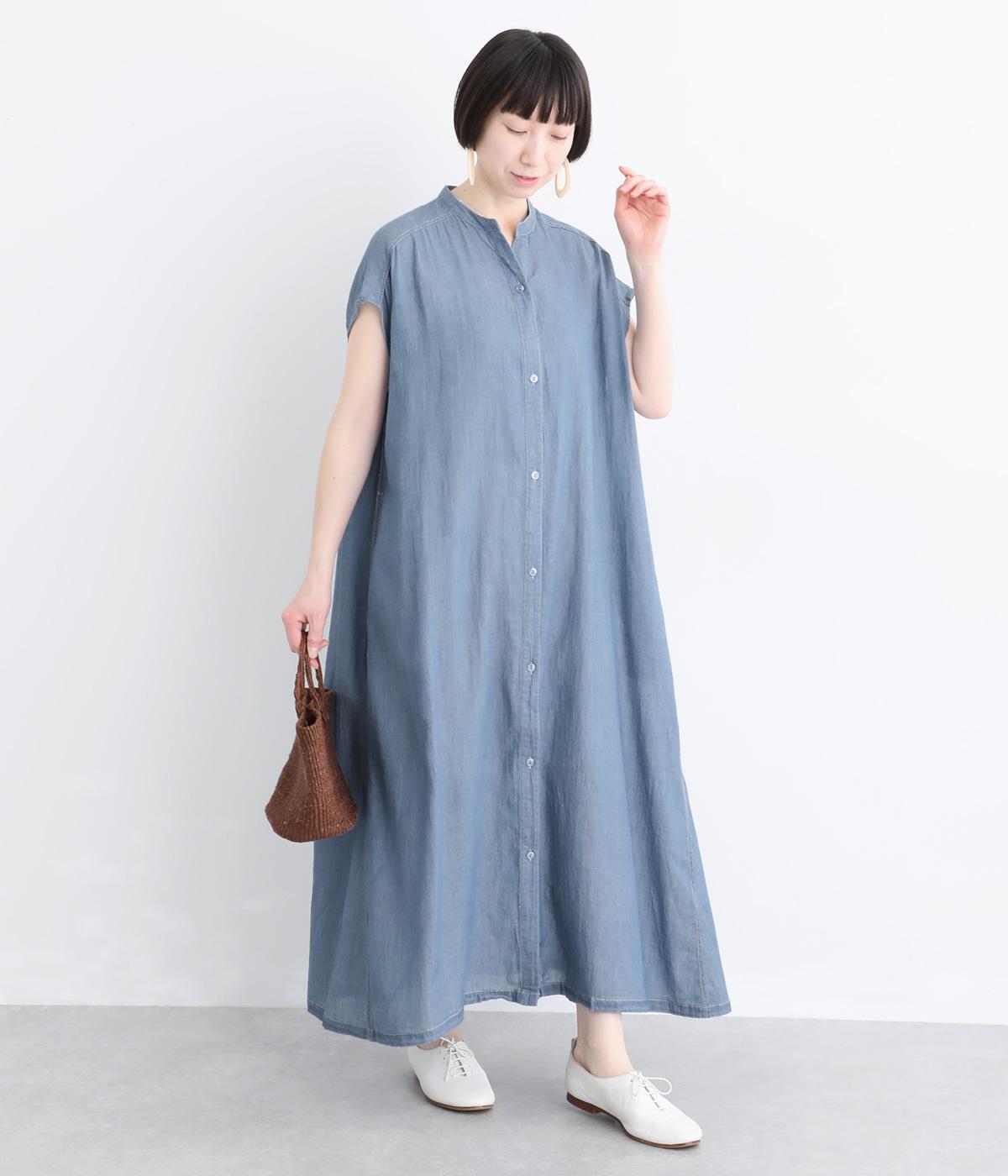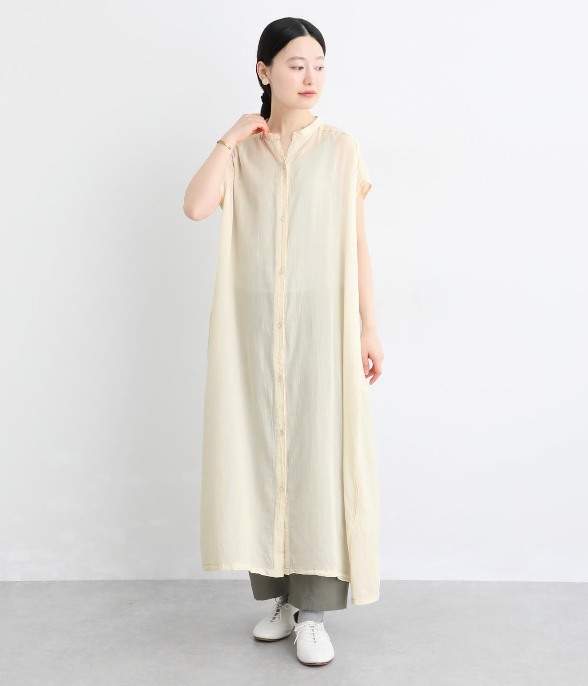 首元に抜け感をつくるスキッパーネックと、女性らしい上品なフレンチスリーブが魅力のワンピースです。身頃にたっぷり施したギャザーと落ち感のある素材が、美しいAラインのドレープシルエットを描きます。一枚でさらりとまとうだけでもサマになり、大人のリラックスムードを品よく引き立てる一着です。