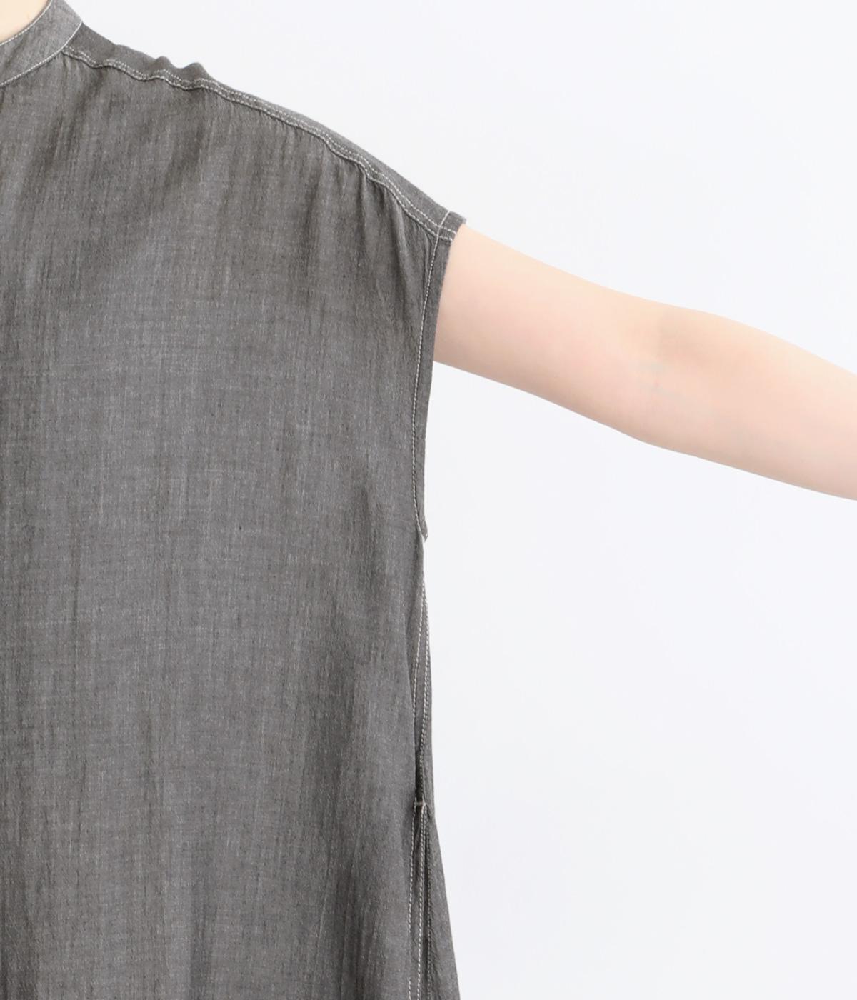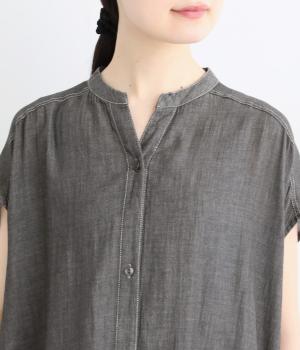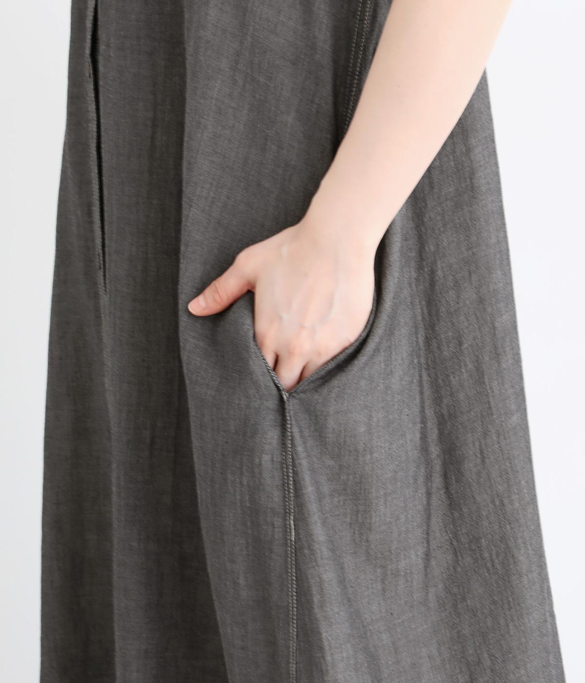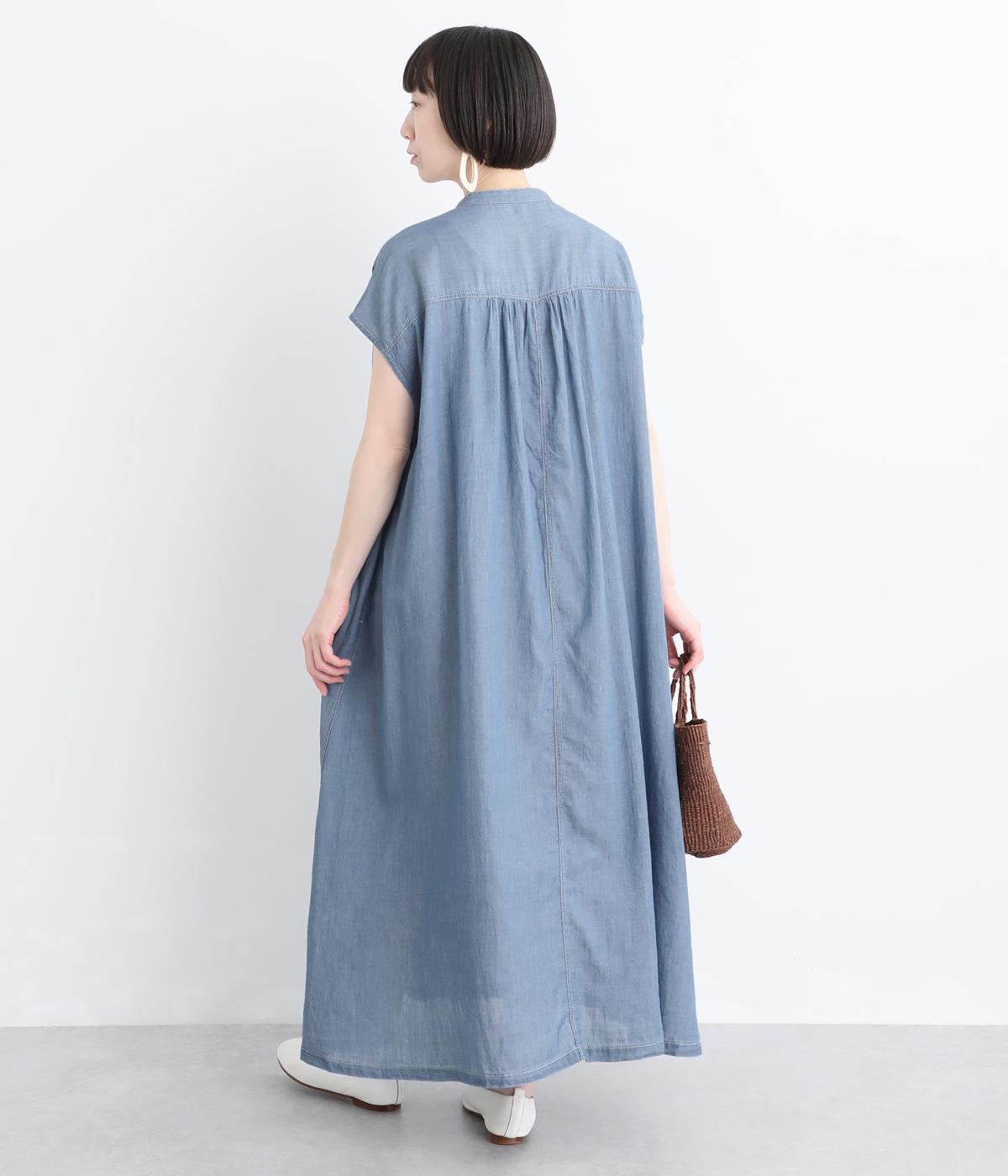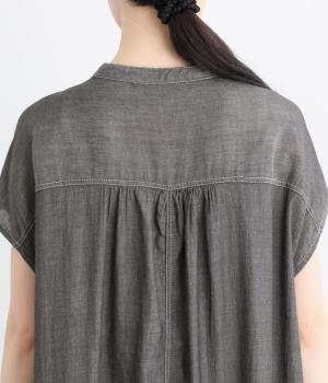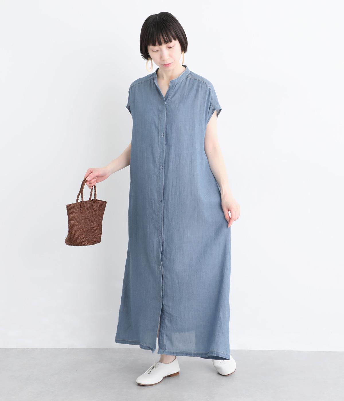首元に抜け感をつくるスキッパーネックと、女性らしい上品なフレンチスリーブが魅力のワンピースです。身頃にたっぷり施したギャザーと落ち感のある素材が、美しいAラインのドレープシルエットを描きます。一枚でさらりとまとうだけでもサマになり、大人のリラックスムードを品よく引き立てる一着です。