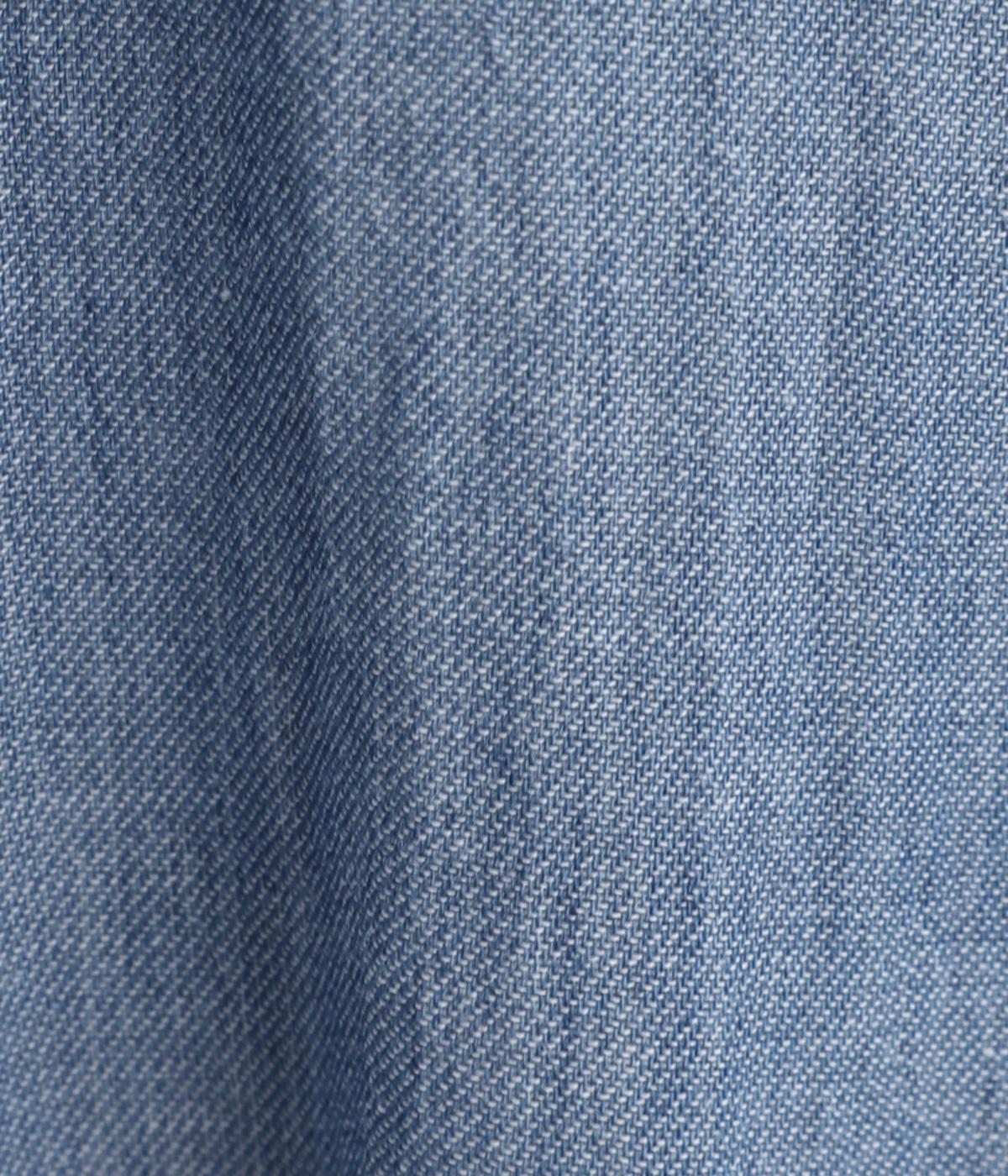おどろくほど軽やかな、コットン素材のシアーデニム生地です。空気をふくんだようにしなやかで、さらりとした肌ざわりが魅力。通気性にも優れ、汗ばむ季節も快適に着用できます。ケミカルウォッシュ加工による繊細な色落ちが、ヴィンテージライクな奥行き演出。