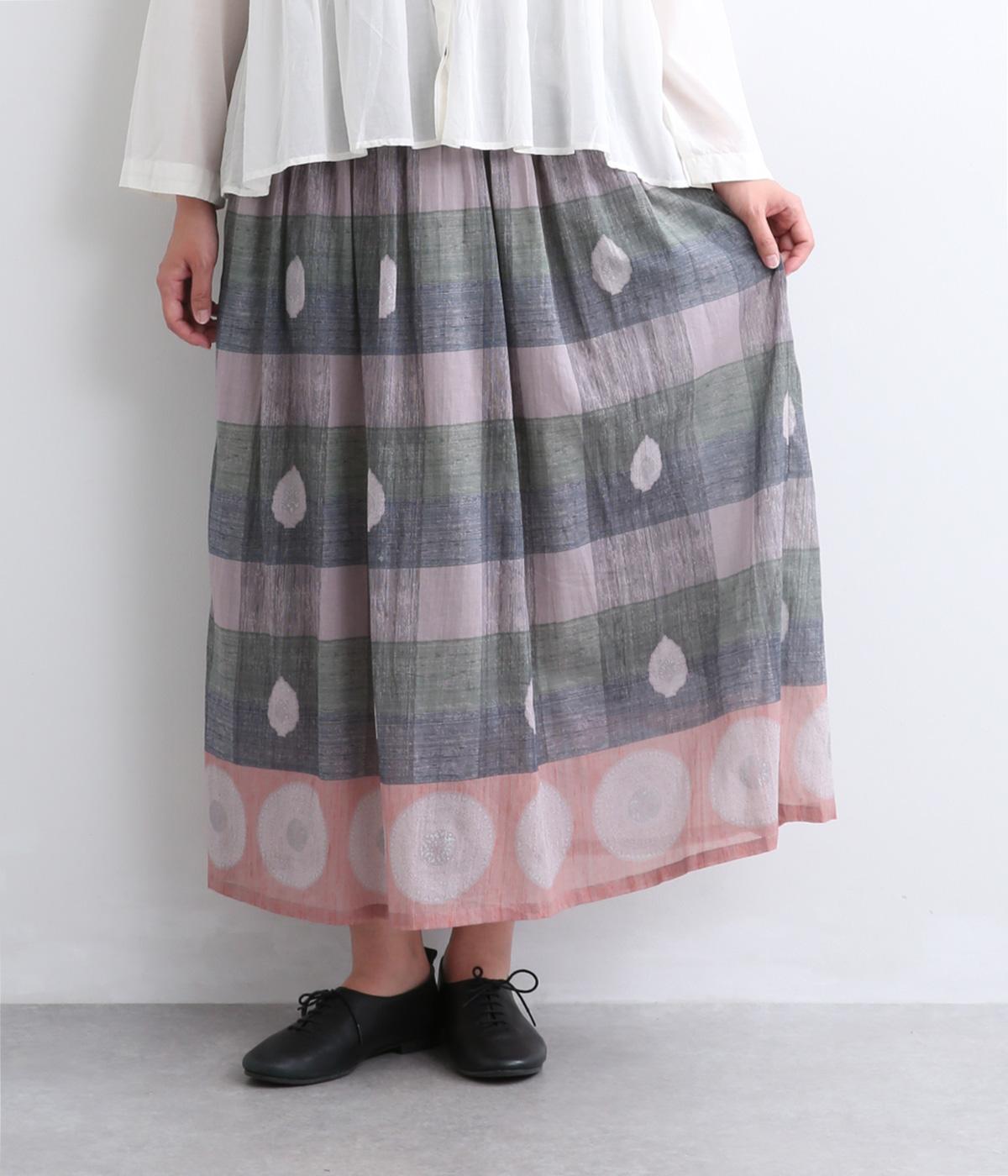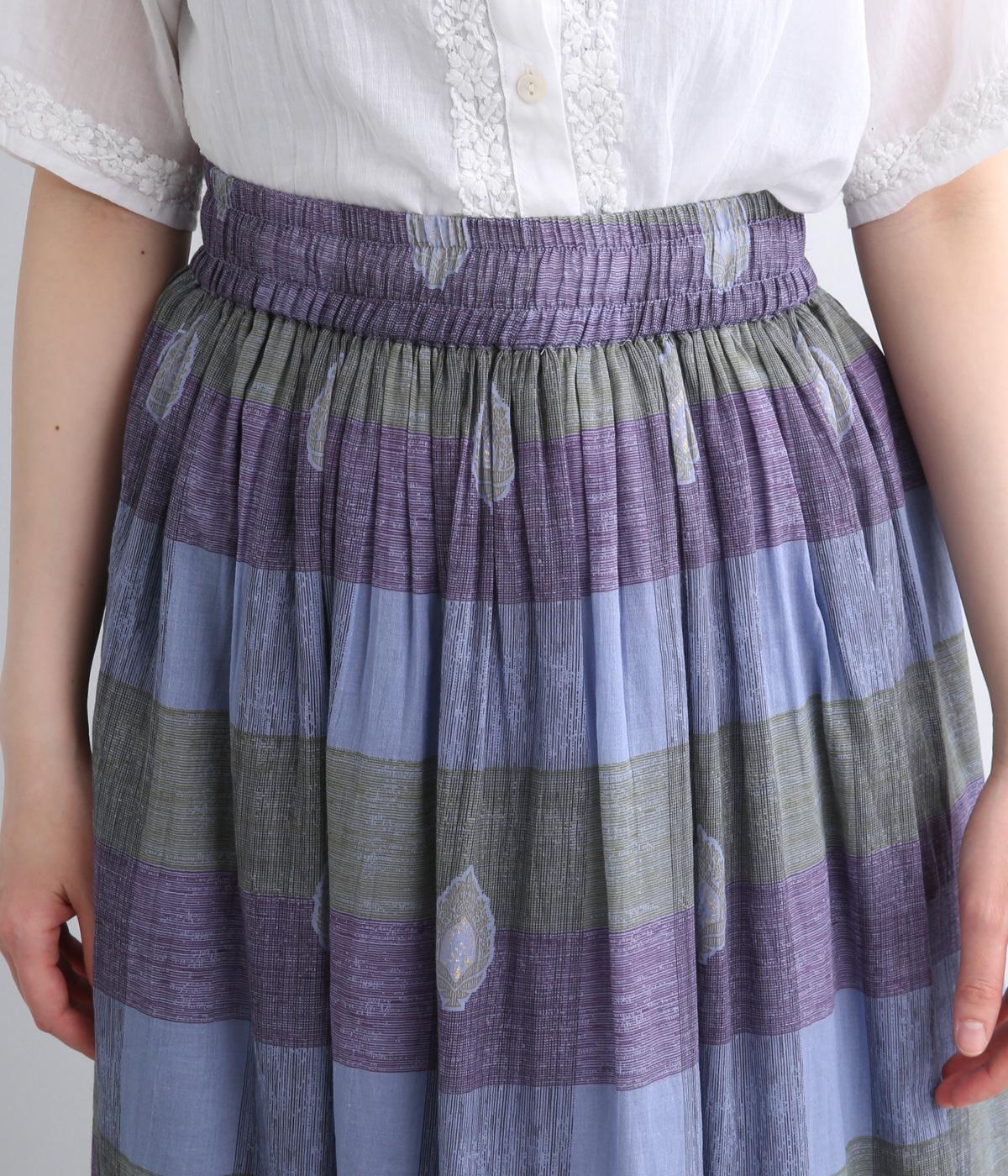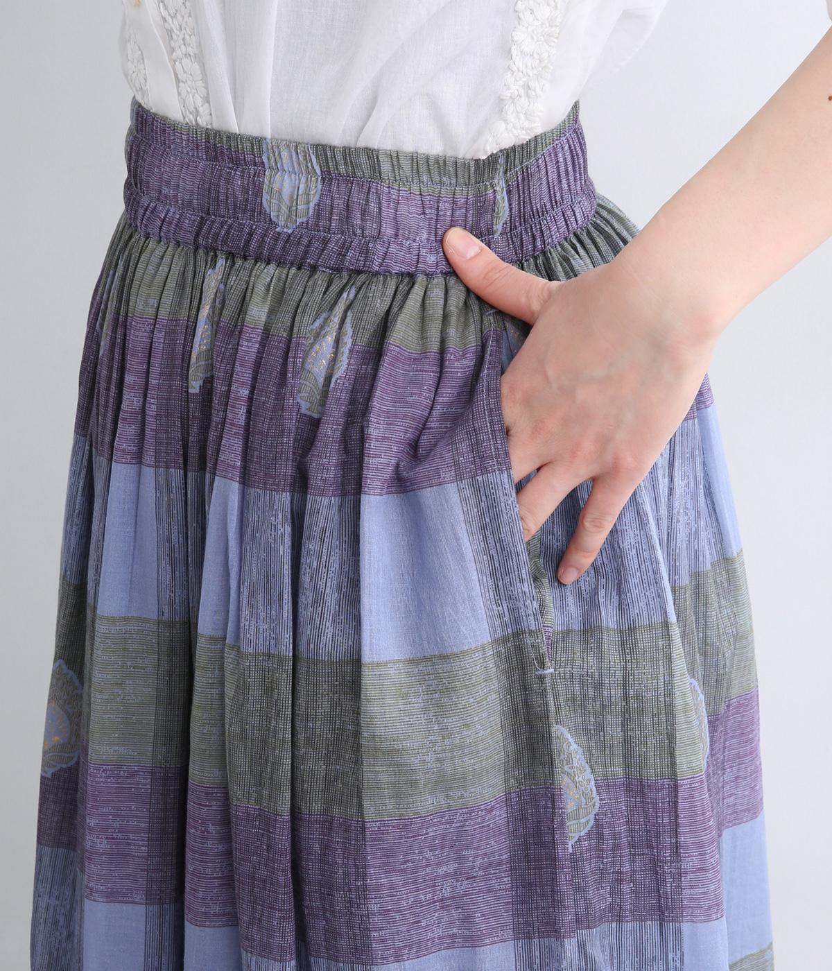 Light Voile 箔ロータスプリント ギャザースカート
