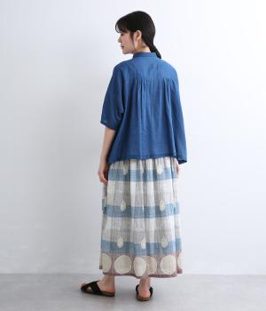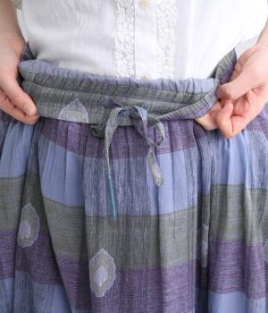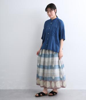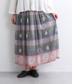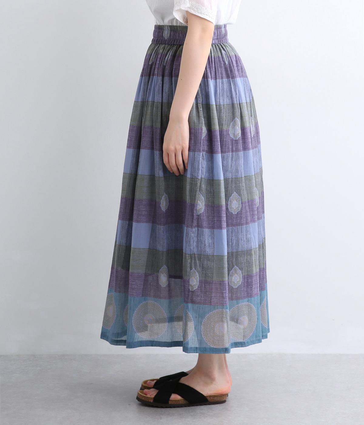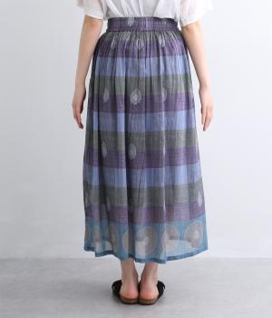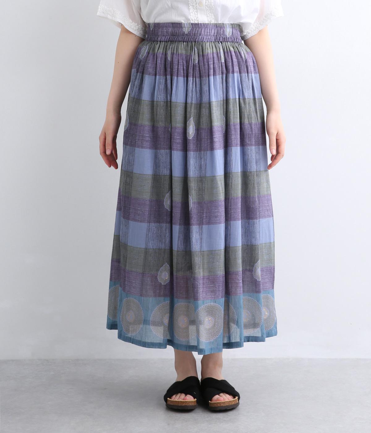 Light Voile 箔ロータスプリント ギャザースカート