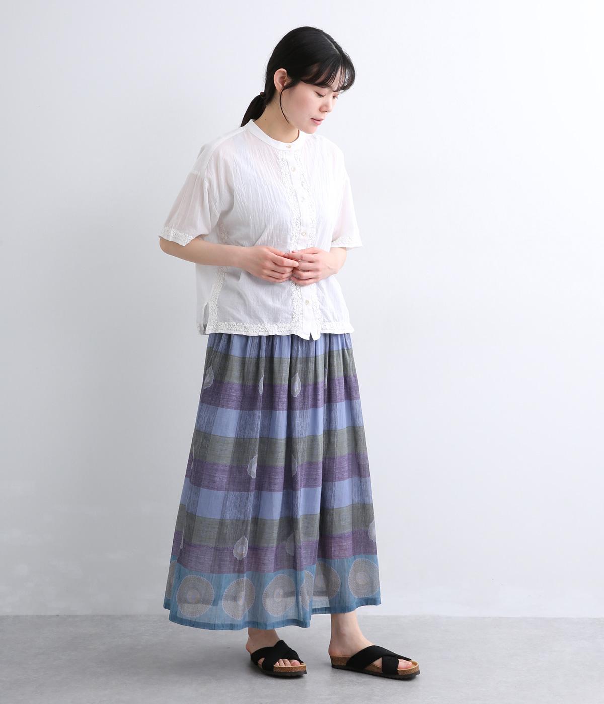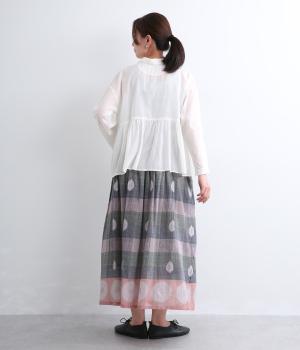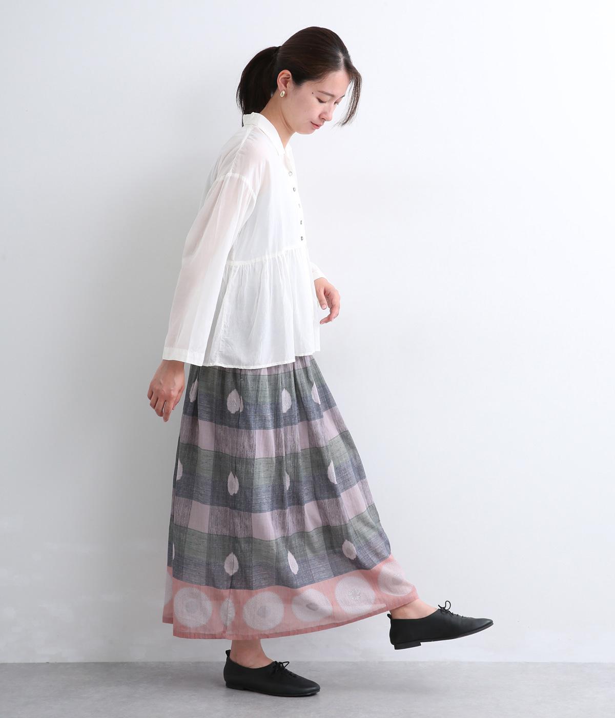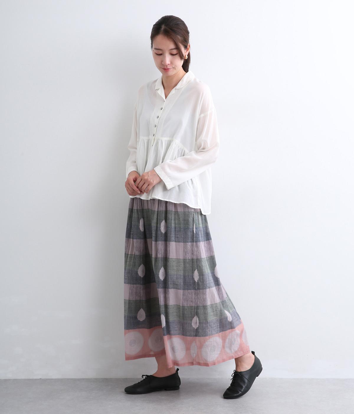 Light Voile 箔ロータスプリント ギャザースカート(オフホワイト-F)