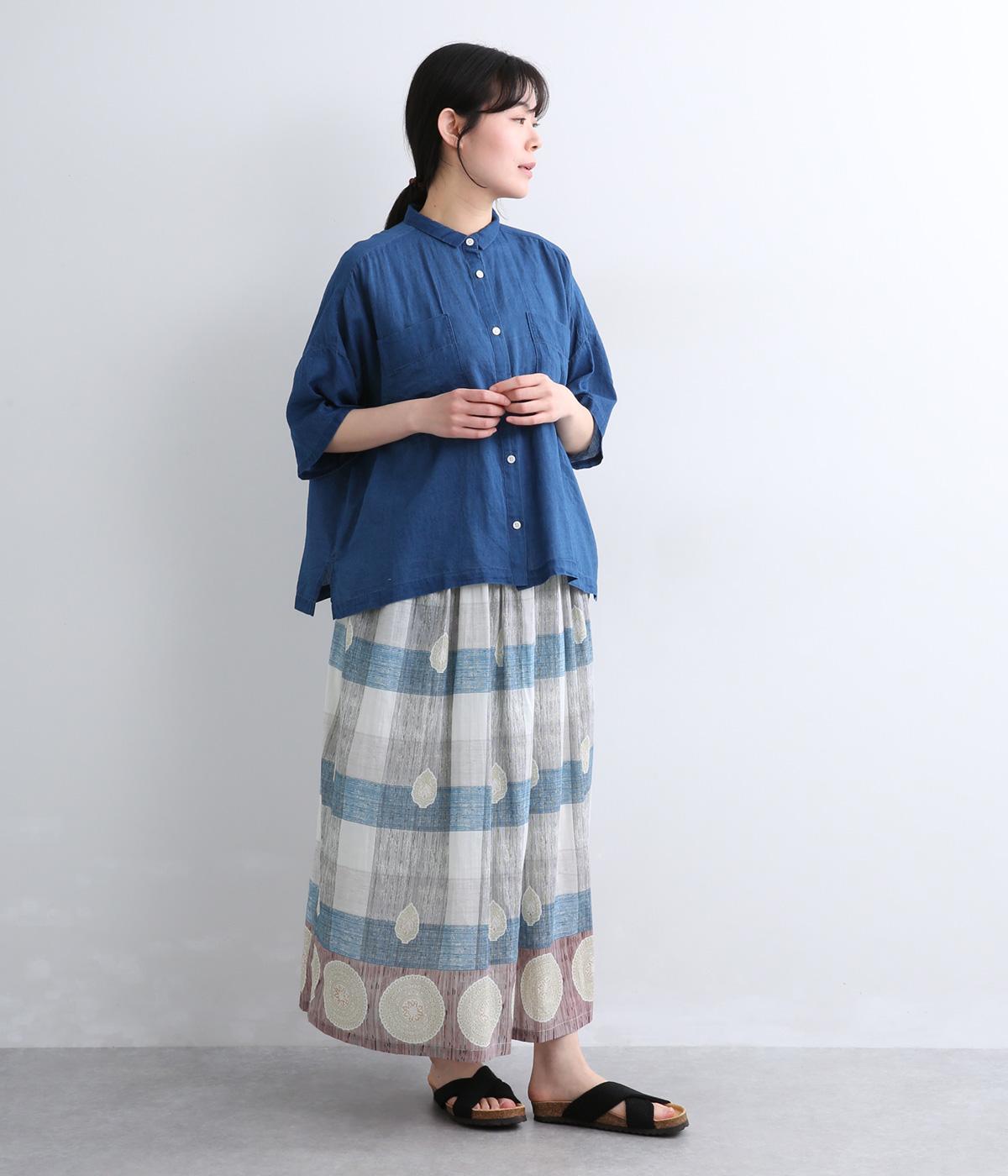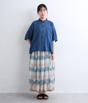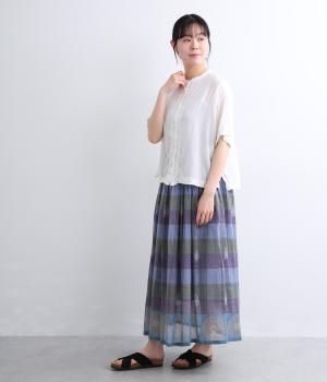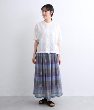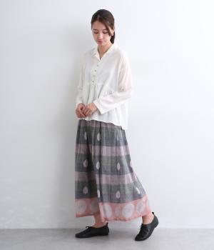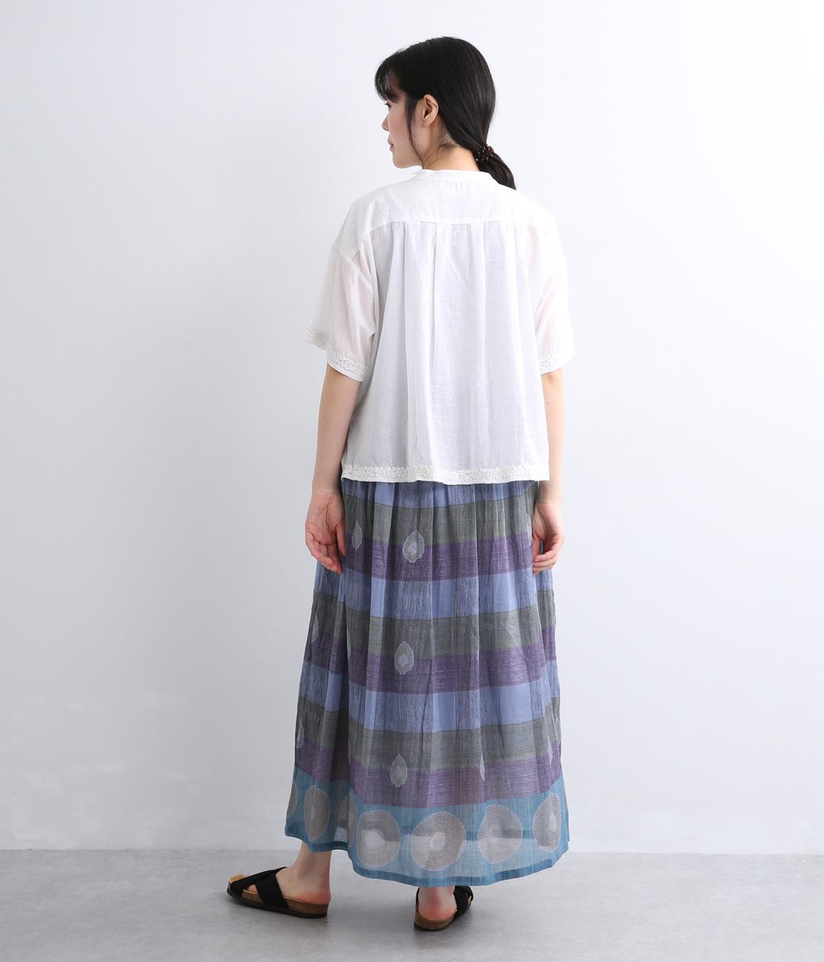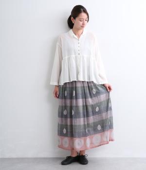 Light Voile 箔ロータスプリント ギャザースカート(オフホワイト-F)