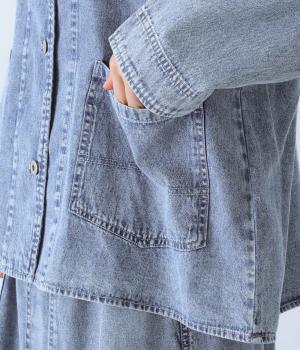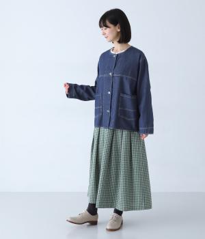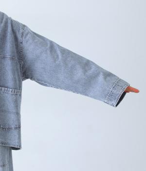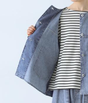 やわらかなコットンデニム素材を使用しています。デニムの風合いはそのままに、とても軽くて薄手の生地なのでストレスなく羽織れます。