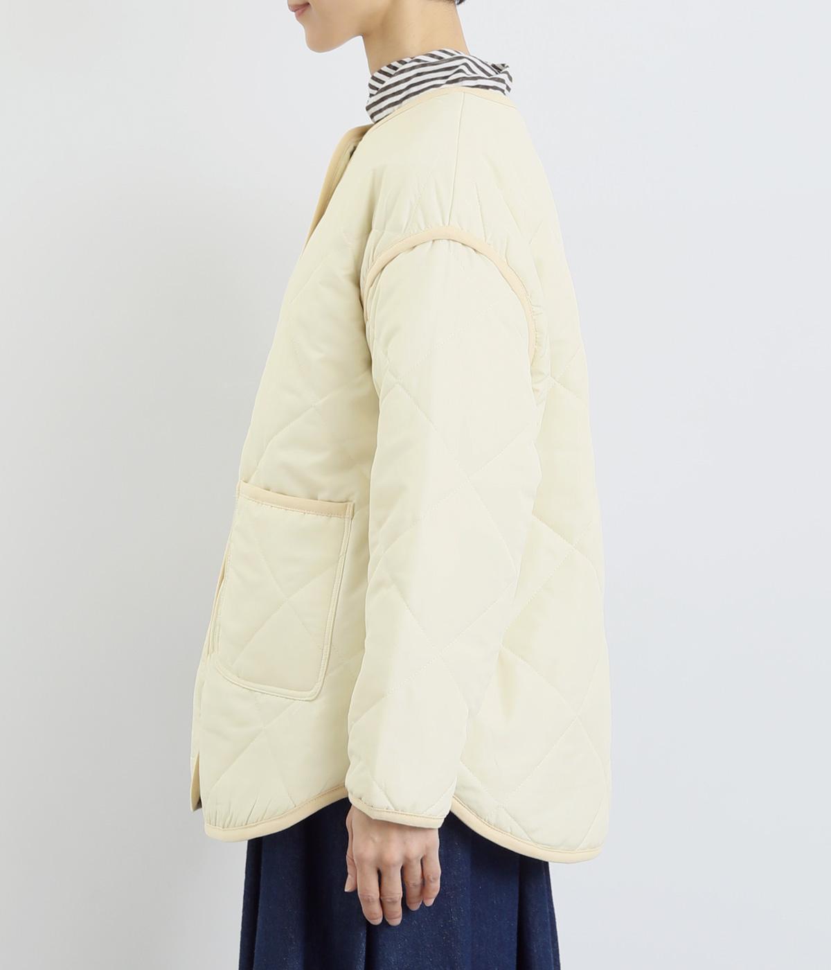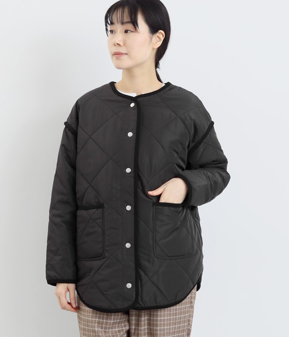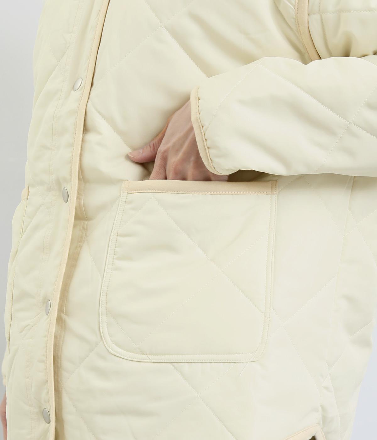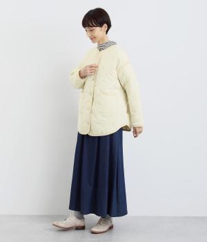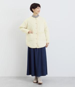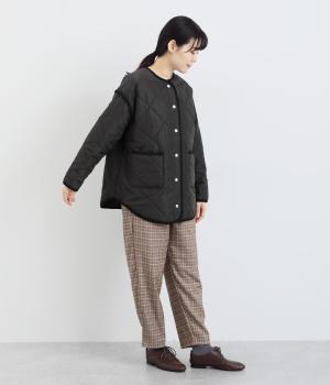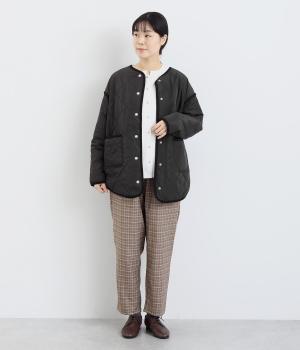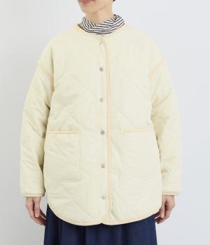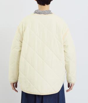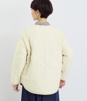 ほどよい厚みのダイヤキルトとフェイクウールをあしらったクラシカルな一着。キルト生地の丈夫さとフワッとした肌触り、そして軽やかさはとても魅力的です。しっかりとした裏地はポリエステル素材。ごわつきにくく、インナーを選びません。