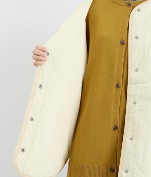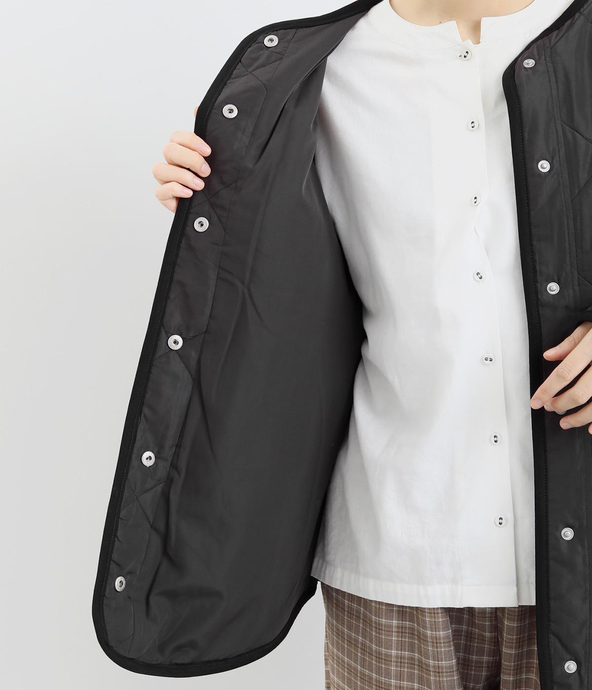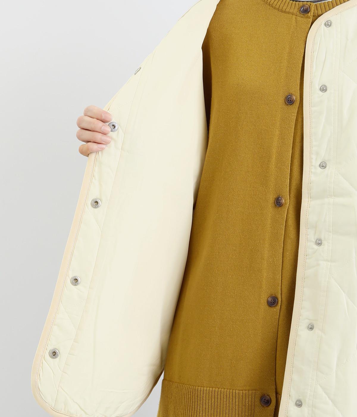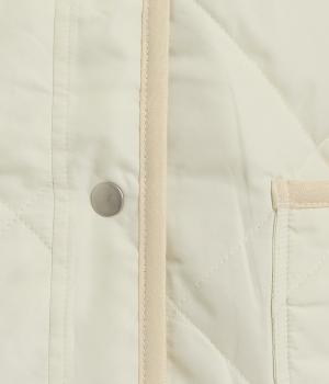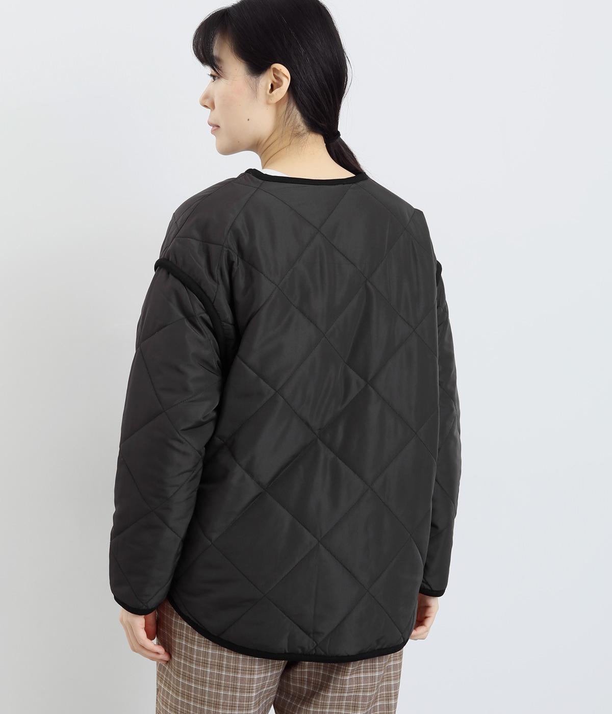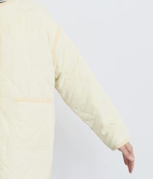 ほどよい厚みのダイヤキルトとフェイクウールをあしらったクラシカルな一着。キルト生地の丈夫さとフワッとした肌触り、そして軽やかさはとても魅力的です。しっかりとした裏地はポリエステル素材。ごわつきにくく、インナーを選びません。