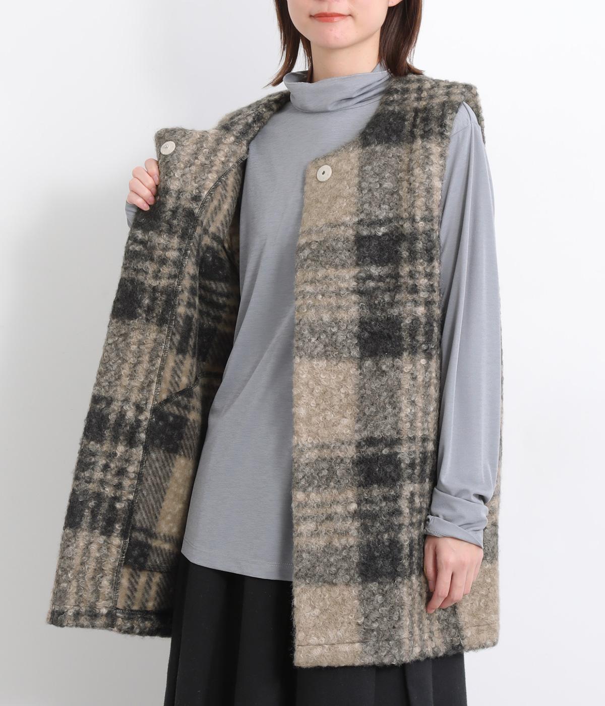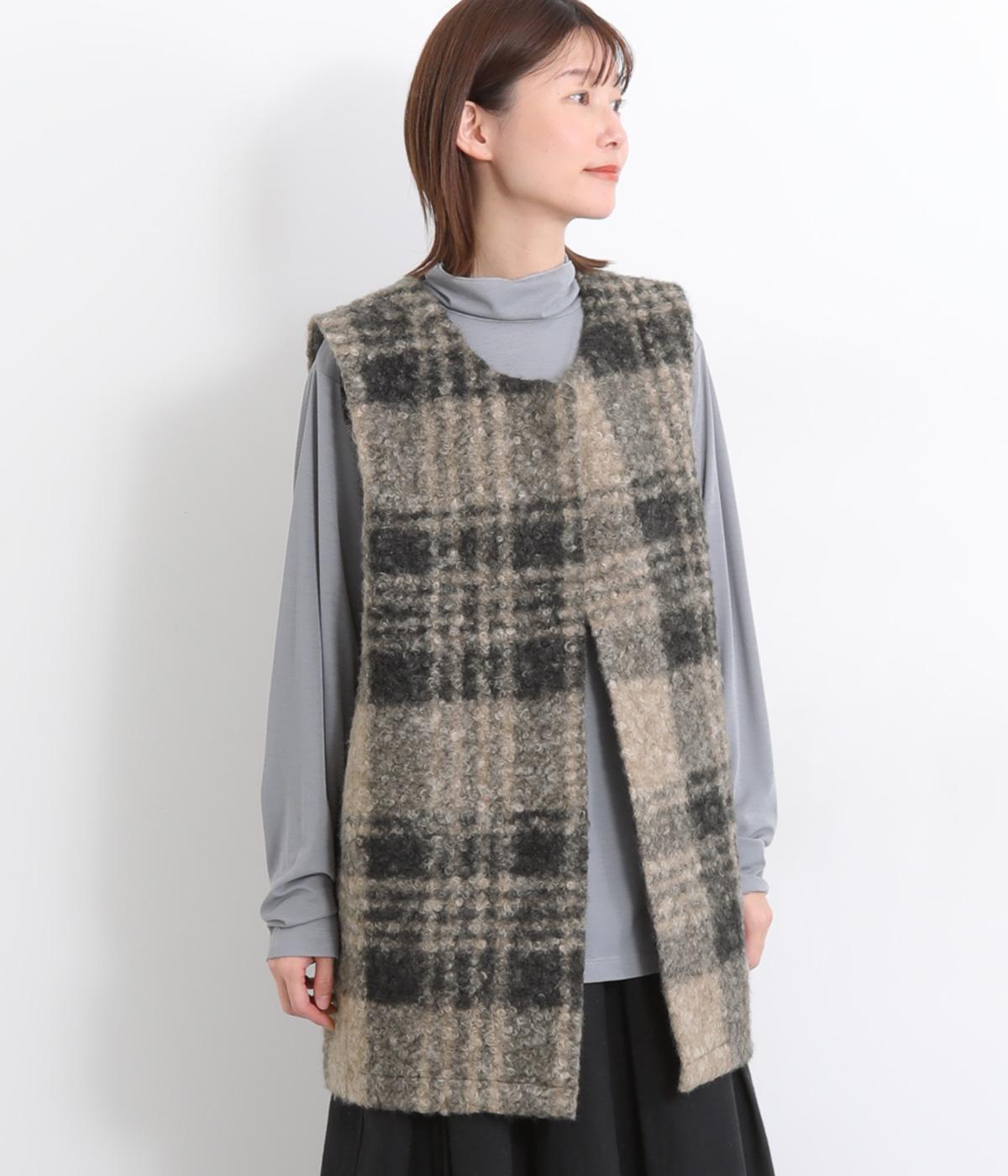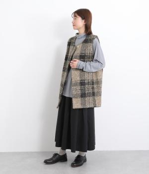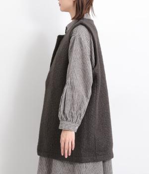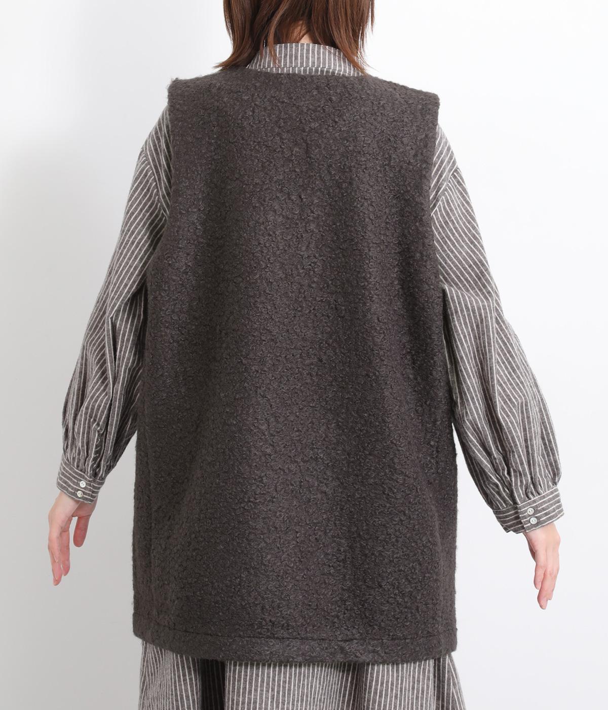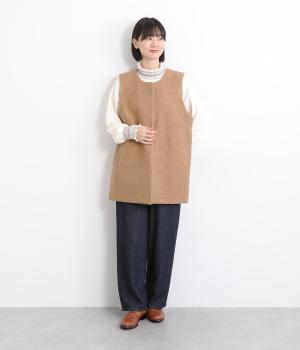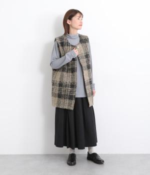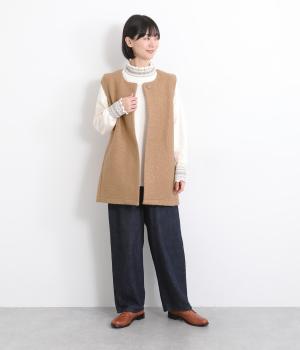 さっと羽織るだけでこなれた装いになるロングベストです。広々としたアームホールは窮屈さを感じにくく、様々なレイヤードスタイルが楽しめます。やや長めの着丈が、自然にヒップまわりをカバーします。