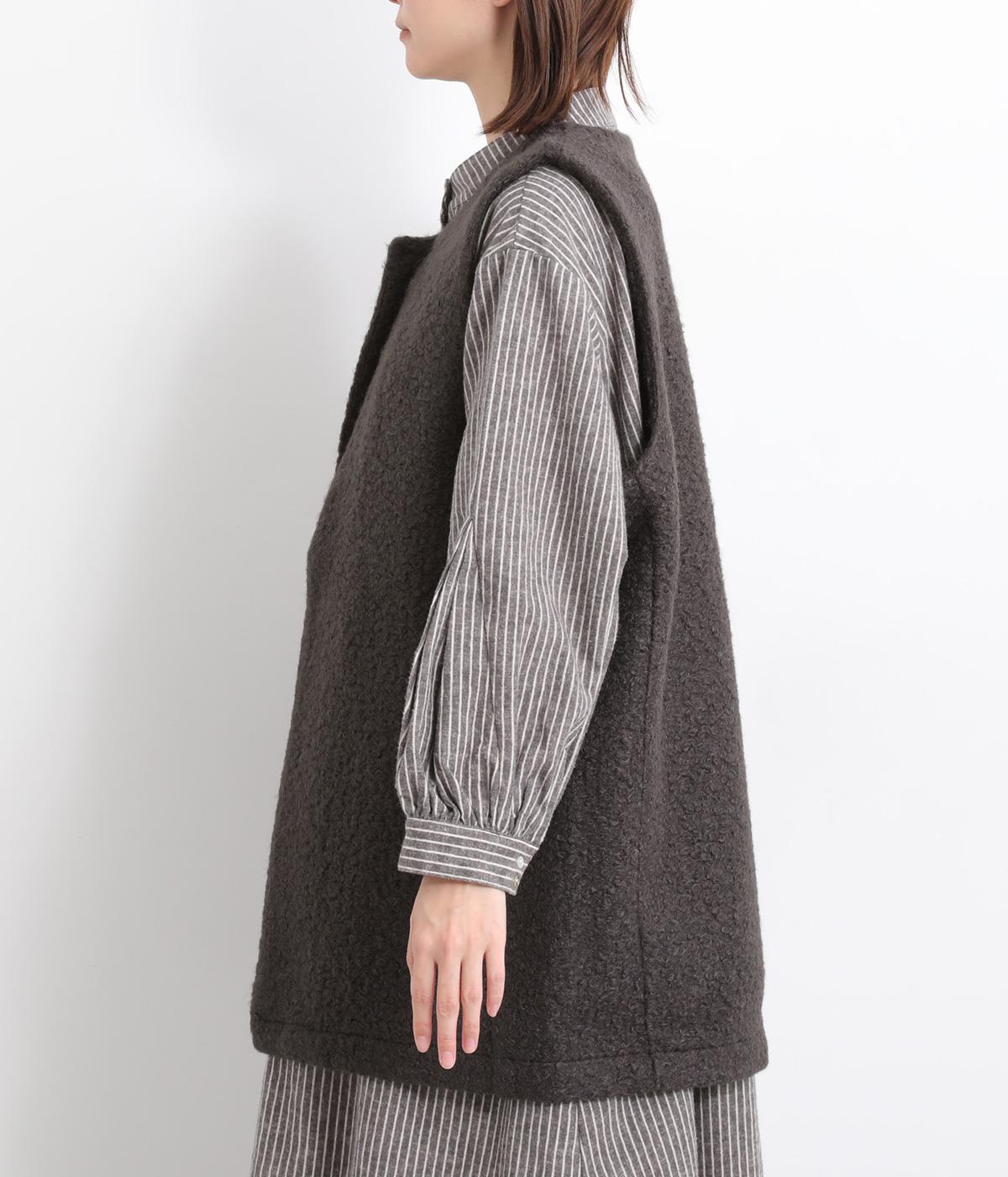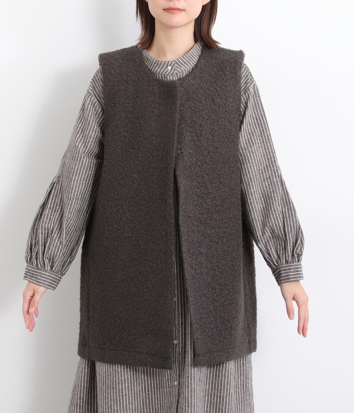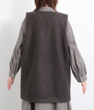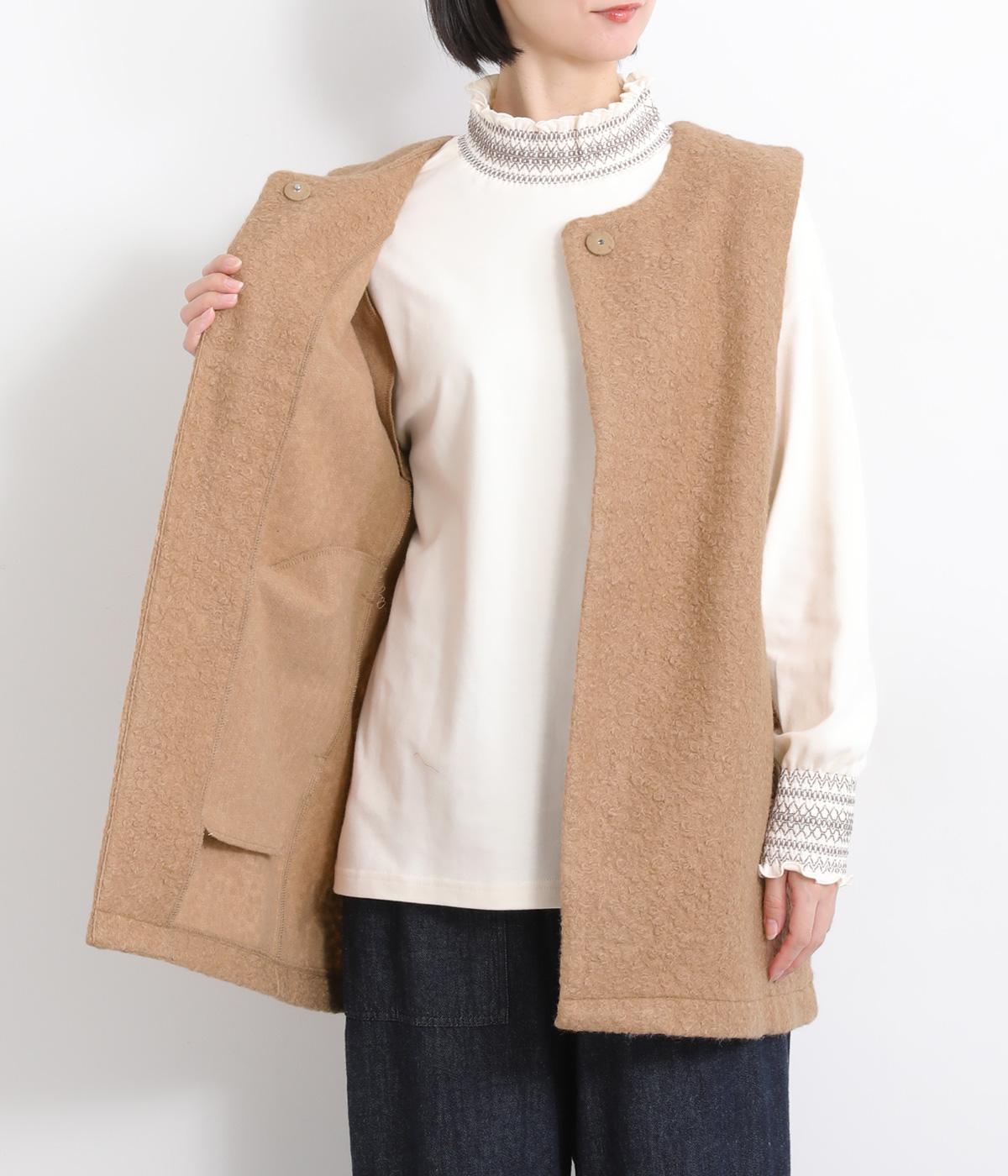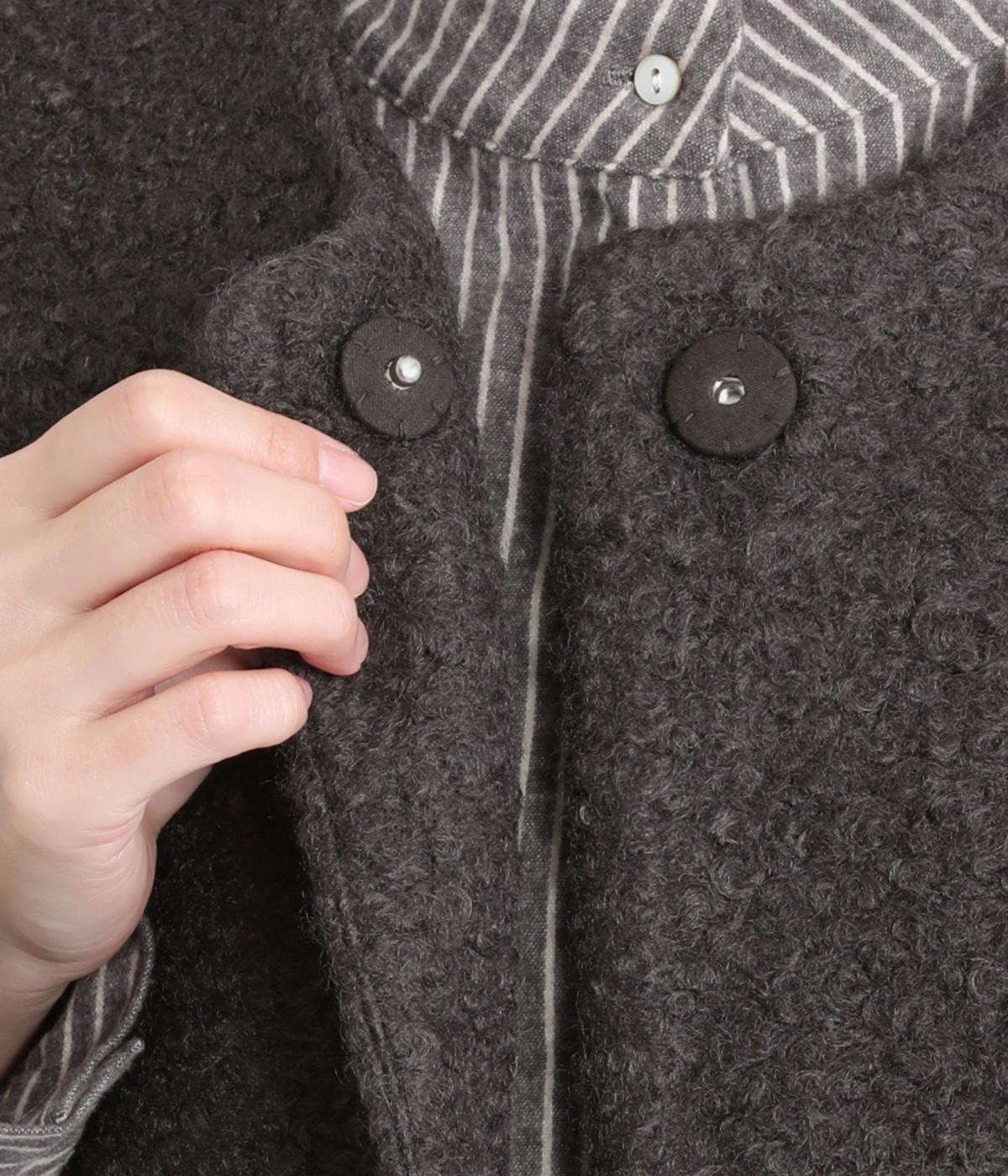 見た目も着心地もあたたかなブークレー素材で仕立てました。ふんわりとやわらかく、もこもことした表情が魅力的な素材です。