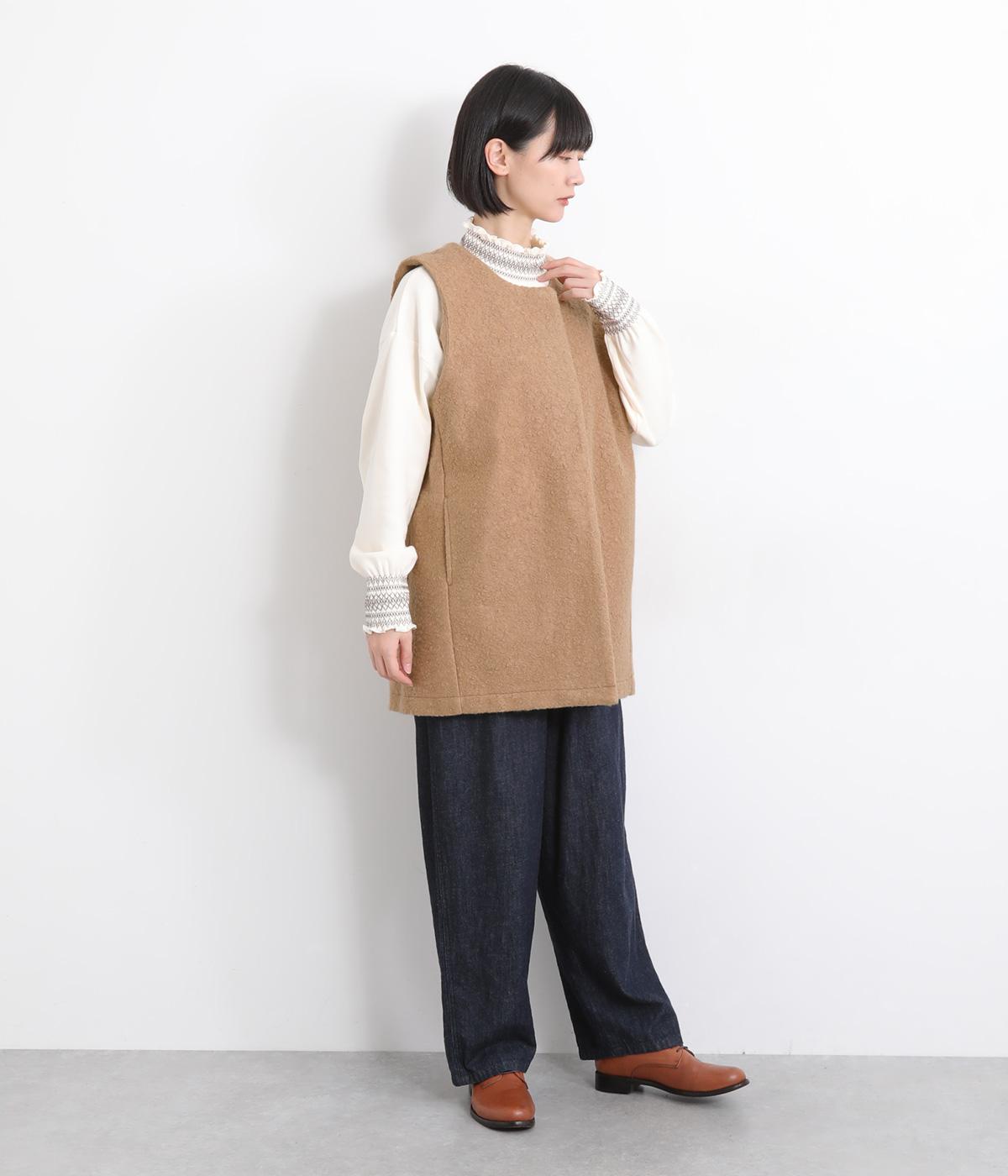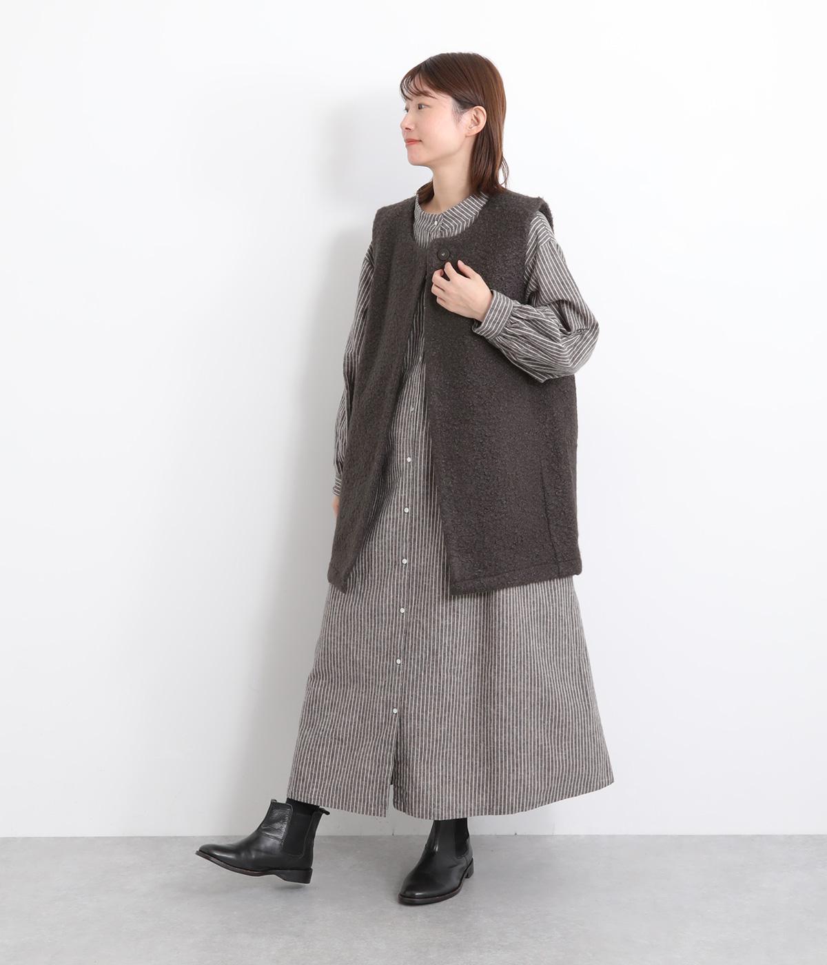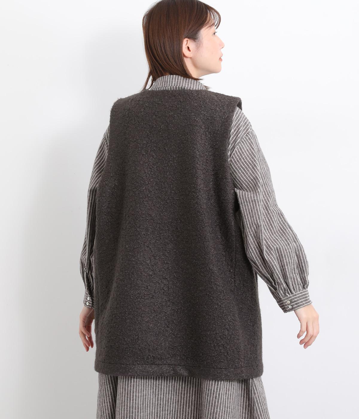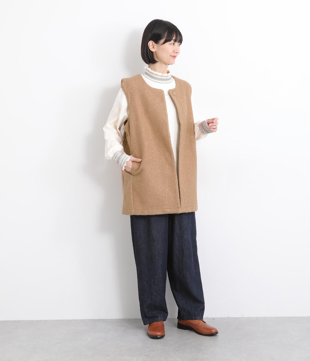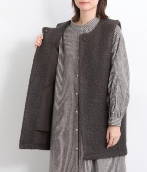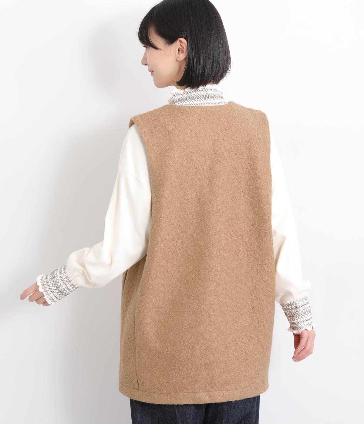 見た目も着心地もあたたかなブークレー素材で仕立てました。ふんわりとやわらかく、もこもことした表情が魅力的な素材です。